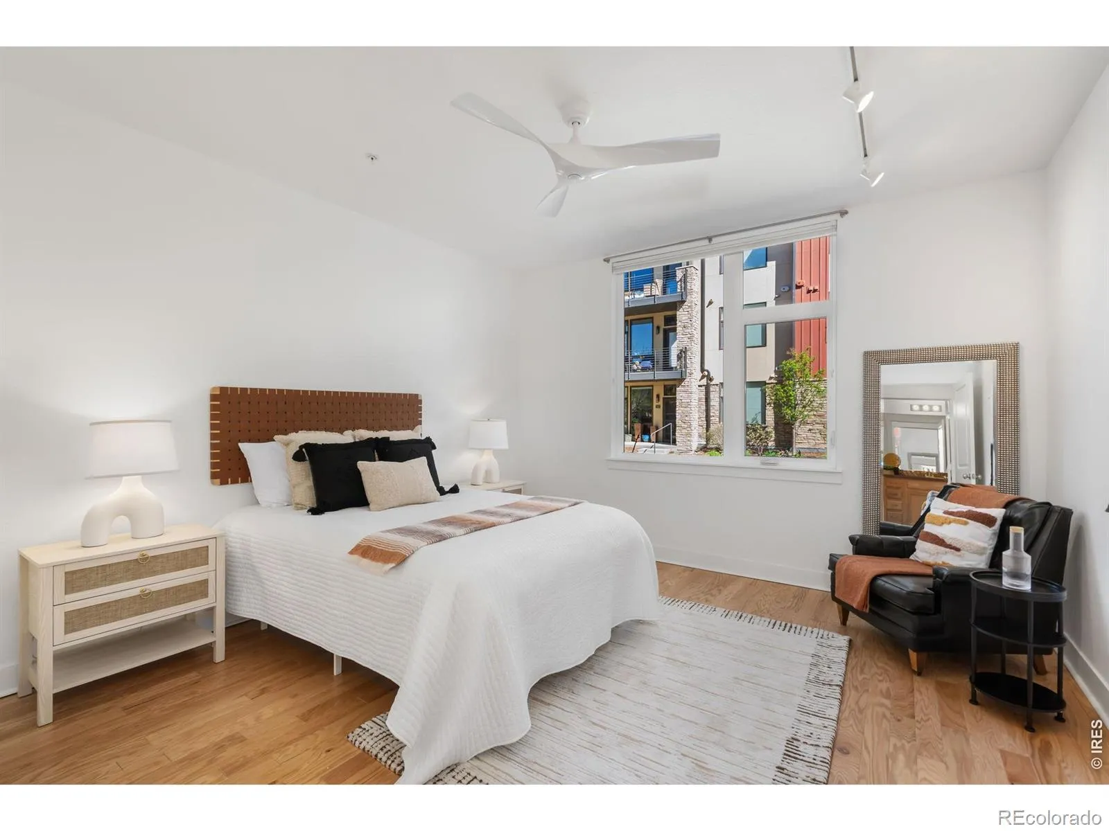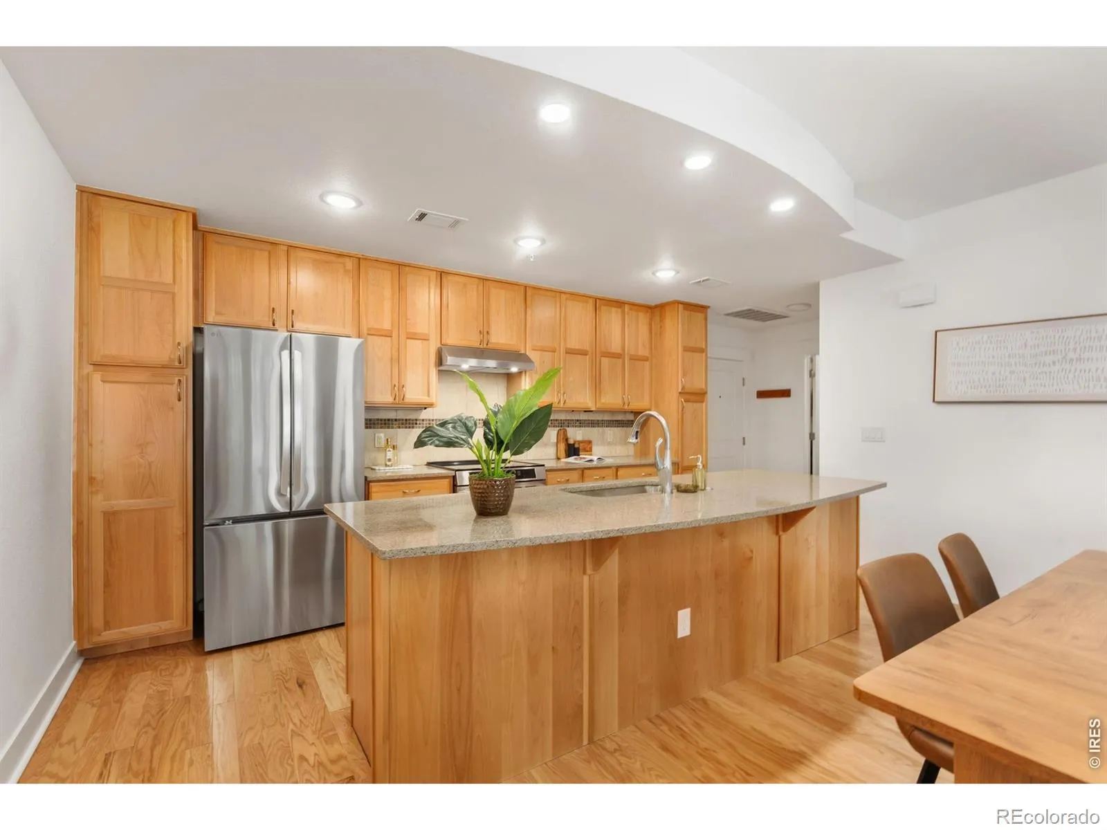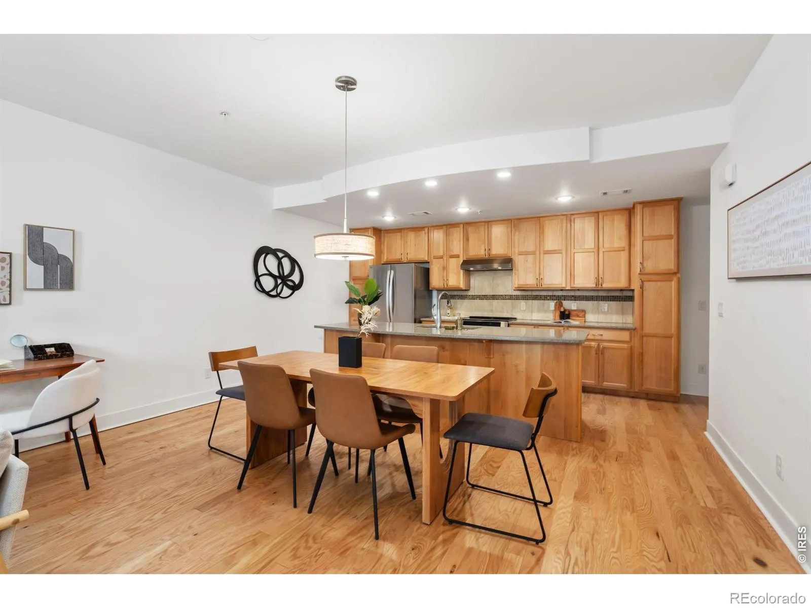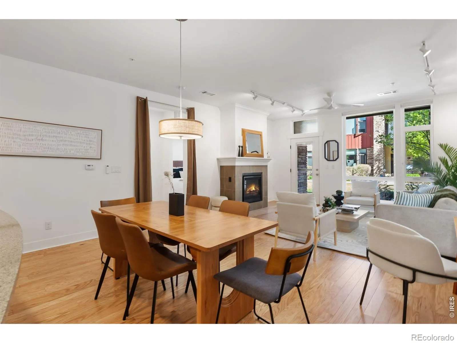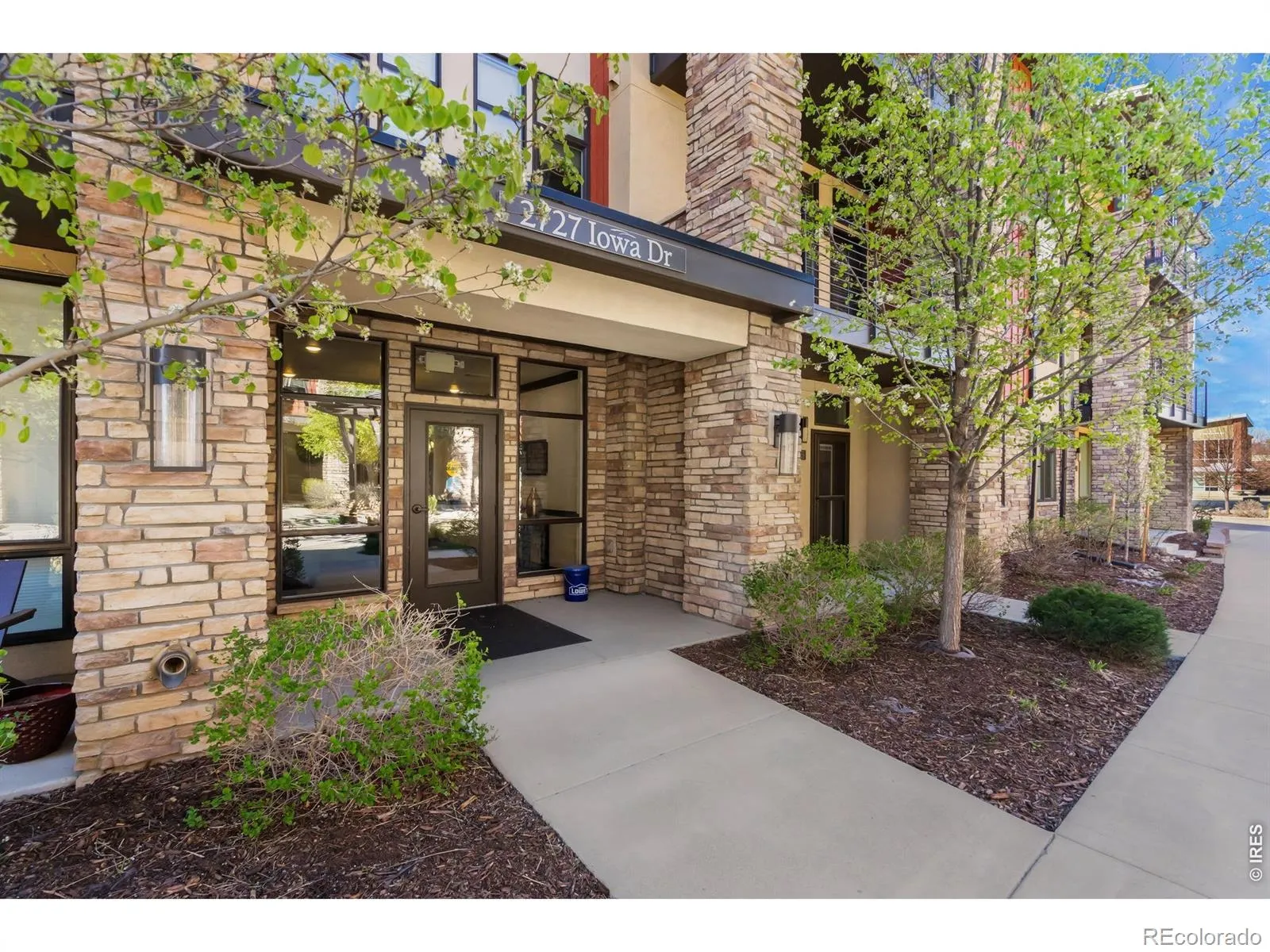 Enter this tastefully appointed one bedroom condo through a private outside entrance located off a lovely landscaped courtyard with gazebo. With no stairs into or within this ground level unit, one-level living is yours to enjoy. In excellent condition.Open floorplan with comfortable great room adjacent to expansive kitchen island. Beautiful hardwood floors throughout are nearly brand new, with ceramic tile in bathroom and laundry. In the winter, cozy up to the great room gas fireplace. And when summer arrives, stay cool with central air conditioning. All appliances stay including brand new refrigerator, lightly used dishwasher, induction range, and front-loading clothes washer and dryer. Energy conscious tankless water heater and high efficiency furnace.The extra length 1-car garage is accessed through the secure building and accommodates both a car and generous work/storage space. This excellent location is near King Soopers and within walking distance to coffee, restaurants, adult beverages, and paved multiuse trails.No metro district. HOA pays for water and sewer, Xfinity internet and cable TV, exterior insurance, exterior maintenance, common areas including dog park, monitored fire alarms, trash and snow removal. Per HOA rules, two pets allowed.Quick possession possible.You’re invited to visit this delightful condo. Please schedule a showing today.