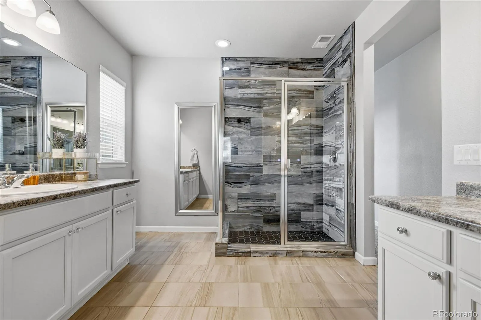 The upper level boasts a sophisticated mix of hardwood floors and brand-new carpeting, featuring a secluded primary suite wing for maximum privacy and a versatile loft perfect for a secondary lounge. Two additional bedrooms share a well-appointed bath, while a separate guest suite enjoys its own private en-suite bathroom. Practicality meets efficiency with a convenient upstairs laundry room, a split-bay three-car garage, and a massive full basement with nine-foot ceilings and a bathroom rough-in ready for custom finishing. Sustainability is built-in with solar panels and dual HVAC systems ensuring year-round comfort. Set within a premier community, residents enjoy access to exceptional amenities including six parks, two swim and fitness clubs, and the conveniently located Three Creeks K-8 school. This home offers a rare combination of architectural beauty, modern efficiency, and an unparalleled lifestyle.