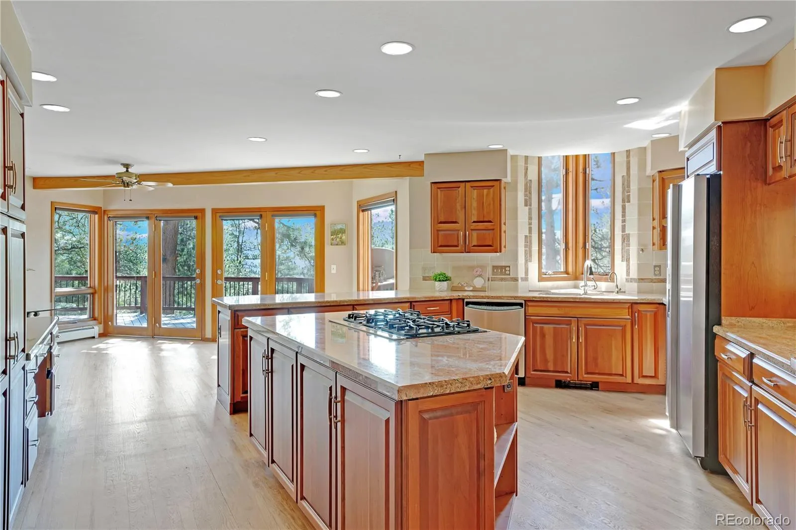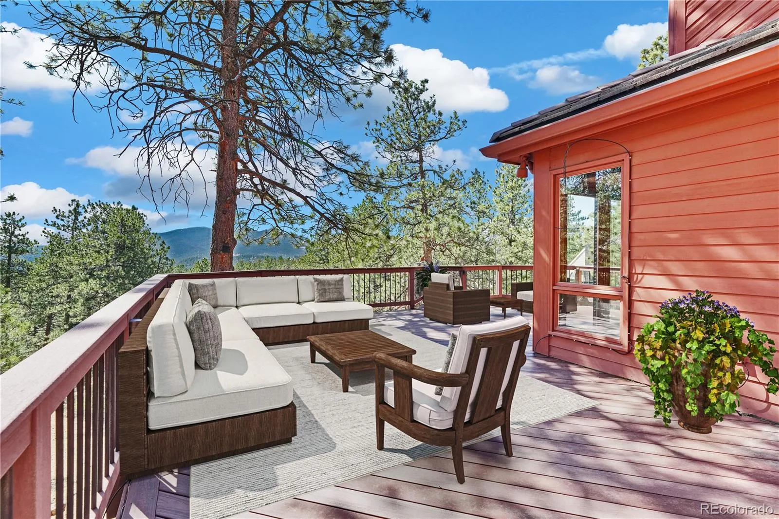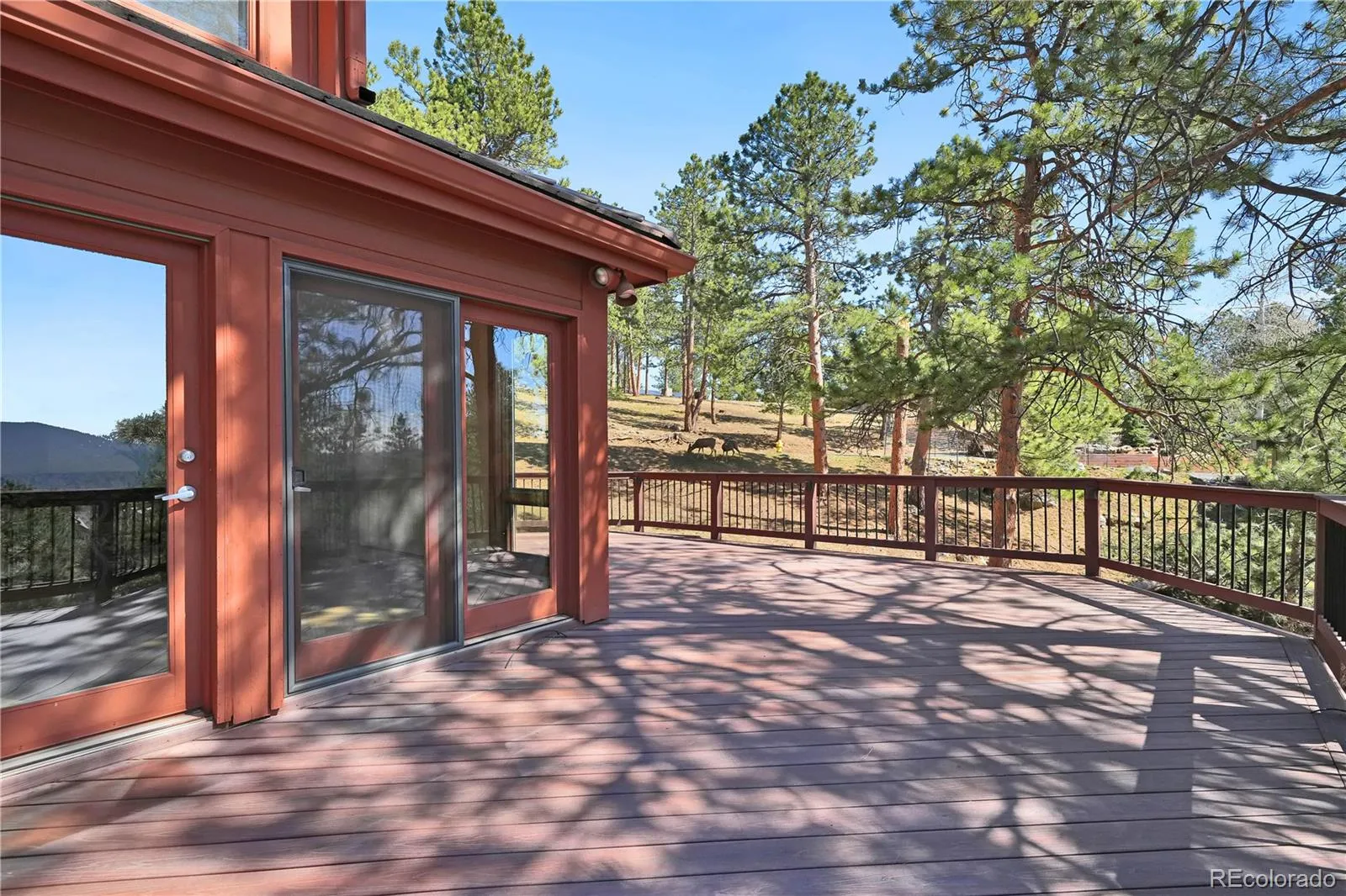 Genesee – Where everyday living feels like a getaway! A grand entry sets the tone, leading into a stunning living room with vaulted ceilings, floor-to-ceiling windows, a striking ledgestone fireplace, ceiling fan and seamless access to expansive decks that frame the mountain views. The dining room is ideal for both intimate dinners and entertaining, highlighted by a wall of windows that brings in natural light and captures the surrounding scenery. The kitchen is both functional and inviting, featuring natural cherry cabinetry, generous counter space, a center island with seating, and built-in office nook, all opening to a dining and gathering area designed for connection and ease. Upstairs, a floating staircase leads to a serene primary suite with vaulted ceilings, ceiling fan, sitting area, beautifully updated bath with an oversized slate shower, dual vanities, abundant storage and a spacious custom walk-in closet. Two additional bedrooms, a full bath and a reading nook overlooking the living room complete the upper level. The walk-out lower level offers a warm, versatile space with a family room, built-in shelving, wet bar, guest bedroom, bath, and flexible storage or play space. Oversized three-car garage with 220 line for electric car charging plus one off-street parking space. Outdoor living shines with expansive composite decks accessible from multiple levels, creating the perfect setting for relaxing, entertaining, and taking in the surrounding scenery. Also includes a small dog run and high-quality redwood siding. Genesee offers 12 miles of scenic hiking trails, 1200 acres of open space, two pools, tennis courts, pickleball courts, award-winning schools, a fitness center, a playground, and an array of organized social groups. Wildlife thrives in this picturesque setting, further enhancing the appeal of this remarkable location, all within a convenient 30-minute drive to downtown Denver.