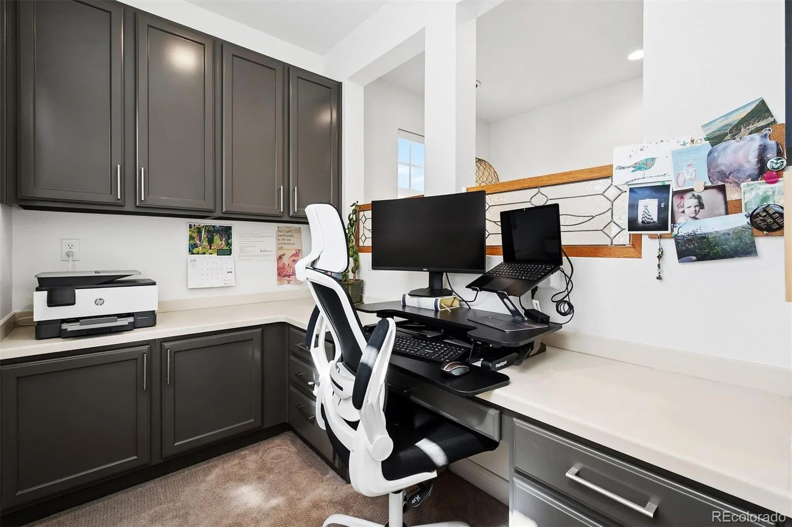 Thoughtfully updated and ideally located in Denver’s Central Park neighborhood, this John Laing paired home offers a refined, low-maintenance lifestyle with access to some of the area’s most sought-after amenities. Positioned on a quiet courtyard with mature perennial gardens, the home balances privacy with convenience to 29th Avenue Town Center, Central Park recreation facilities, and nearby dining and retail.The interior has been recently updated with a cohesive, modern aesthetic. The kitchen features quartz countertops, a center island, Spanish tile backsplash, and new cabinetry, opening to comfortable dining space and living space anchored by a gorgeous marble tile fireplace. Upstairs, the primary suite offers generous proportions and a remodeled, spa-like bath with soaking tub, walk-in double head shower, and walk-in closet. An additional en-suite bedroom, lofted living area suitable for office or media use, and laundry complete the upper level. The finished basement expands flexibility with a third bedroom, full bath, and an additional room well-suited for a gym, workspace, or guest overflow. Additional features include a two-car attached garage with EV charger and low-maintenance outdoor living within a private courtyard setting. With convenient access to Stanley Marketplace, Eastbridge, Central Park Rec Center and 29th Avenue Town Center, bike trails, light rail to Union Station and Denver International Airport, and a short commute to Anschutz Medical Campus, this home is well-positioned for both daily living and travel. Designed for ease, comfort, and connection, this is Central Park living at its most practical and polished.