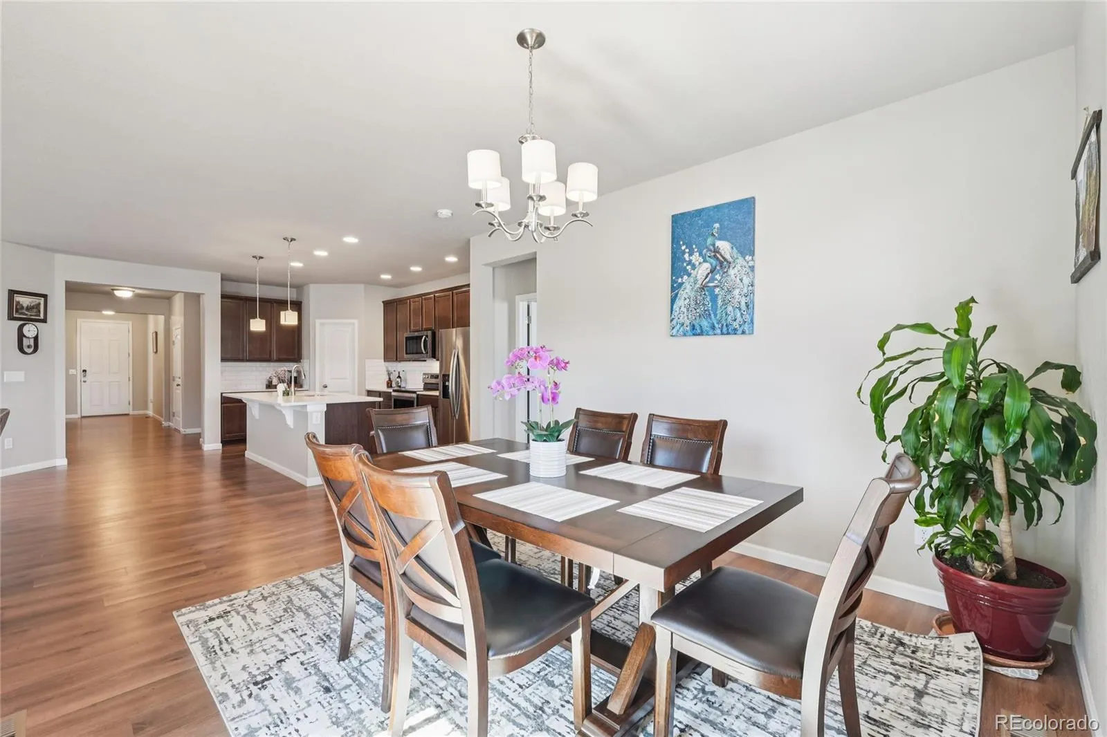 Experience effortless single-floor living in this Immaculate Ranch-Style Home, perfectly situated in the highly sought-after Morgan Hill community of Erie. This residence offers a premier location for active lifestyles, sitting directly next to a scenic green belt and a neighborhood walking path that leads you straight to the community pool—just one block away. The home’s beautiful exterior welcomes you into a thoughtful, split-bedroom floor plan. At the front of the home, two bright secondary bedrooms are separated by a full bathroom, creating a private wing for guests or a home office. Moving down the hall, the home opens into a spectacular main living space designed for connection. The chef’s kitchen is a standout, featuring sleek quartz countertops, stainless steel appliances, a pantry, and a large central island with a breakfast bar. The adjacent dining area features sliding glass doors that open to the patio, offering a seamless transition for indoor-outdoor dining. The primary suite serves as a quiet sanctuary, tucked away for ultimate privacy and boasting a spacious en-suite bath and an expansive walk-in closet. The main-floor laundry room is perfectly positioned on the main floor, along with access to the attached 3-car garage. This Move-In Ready home also features a massive unfinished basement, providing incredible storage or the perfect canvas for future expansion. This quiet, park-side location offers the best of both worlds: a peaceful neighborhood feel with easy commuting access to both Boulder and Longmont. Modern luxury, functional design, and an unbeatable Erie location—this home truly has it all!