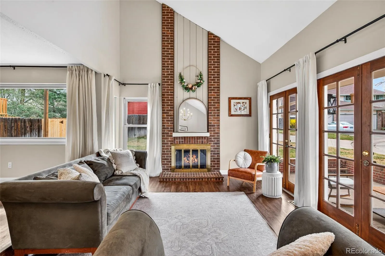 Upon entry, you’re welcomed by a large living room with vaulted ceilings and abundant natural light. The completely remodeled kitchen features quartz countertops, custom cabinetry, and extensive storage with a pantry, and opens seamlessly to a spacious family room —perfect for everyday living and entertaining.