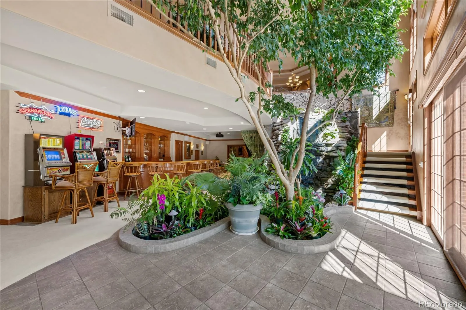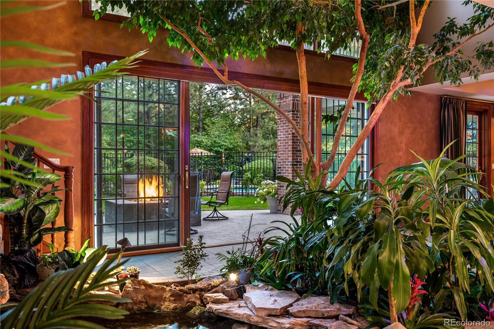 This is more than a home-it’s a private resort! An exceptionally rare offering in one of Greenwood Village’s most sought after neighborhoods. This 6 bed, 7 bath, 10,000 total sq ft residence sits on a premium lot that provides privacy most lots in this neighborhood lack. This property has been thoughtfully maintained by the same owners for nearly 30 years, offering exceptional balance of openness, entertainment and privacy. From the moment you enter, the home unfolds with warm wood finishes, soaring 30ft ceilings, and sweeping natural light. At it’s center, a living Ficus tree and tranquil cascading rock waterfall create a one-of-a-kind, resort like atmosphere. The main level features scenic outdoor views, multiple fireplaces, a chef’s kitchen anchoring the living space, walk in pantry, formal dining room, private office with balcony, guest room and a 3car garage. Upstairs, the primary suite offers a peaceful retreat with it’s own private deck, spacious walk-in closet, and spa inspired bath. A thoughtfully designed landing provides shared workspace ,while three additional bedrooms with ensuite baths offer flexibility for family and guests. The lower level transforms into a true escape. A tropical-inspired oasis greets you with ambient lighting, lush foliage, and the calming peace of the water feature. A grand bar and fully surround-sound theater create an immersive entertainment experience, complemented by space for games, fitness, guest accommodations additional storage. Step outside to a beautifully landscaped backyard designed for year round enjoyment. An inground pool and rolling landscape surrounded by mature trees, stone fireplace, provide both privacy and exceptional setting for gatherings. Ideally located near top rated schools, trails, tennis, golf, dining, Denver Tech Center. This home offers both convenience and private retreat experience.