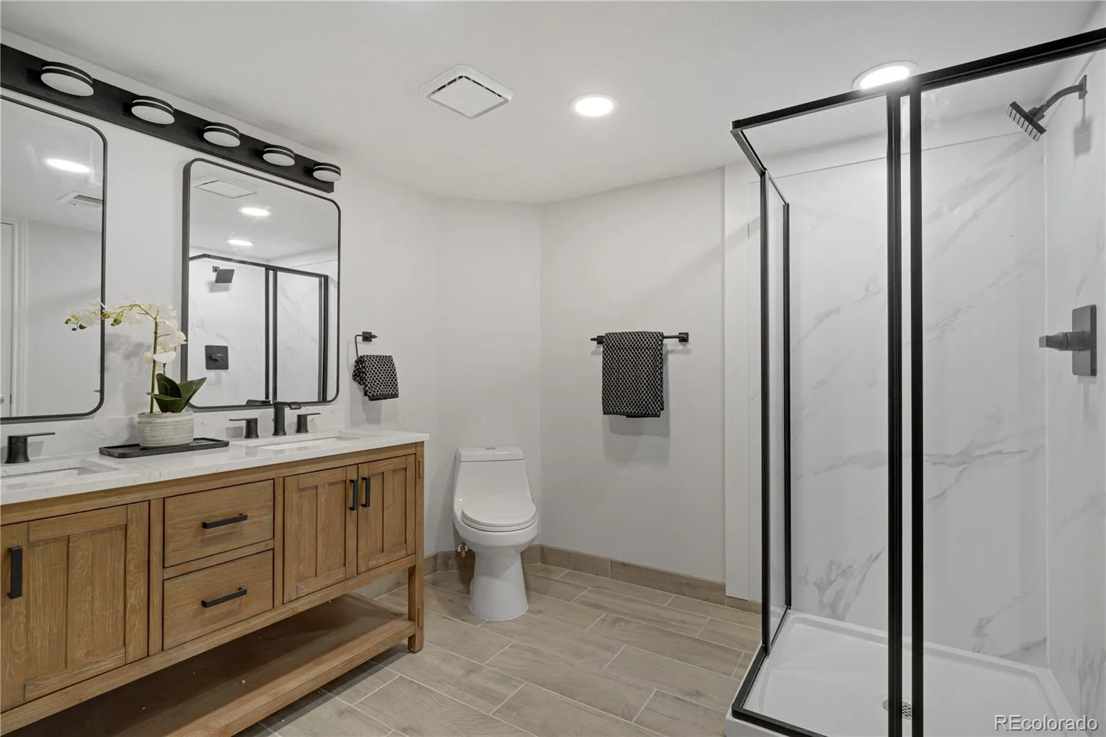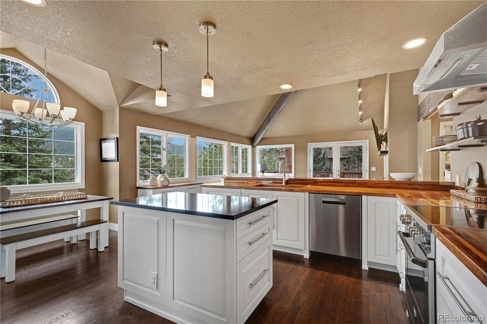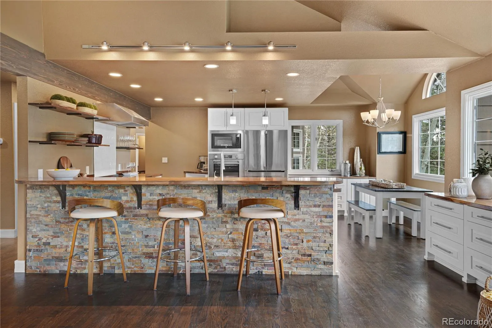 Beautiful Mountain Views | Chef’s Kitchen | Versatile Living Spaces | A grand entry welcomes you into the main level, where soaring vaulted ceilings and rich wood floors create an immediate sense of warmth and architectural character. The living room is anchored by a fireplace and dramatic floor-to-ceiling windows that frame the surrounding landscape. The dining room offers an inviting setting for gatherings with seamless access to the patio. Just off the main living area, a private office with vaulted ceilings provides an inspiring work-from-home retreat. The chef’s kitchen is designed for daily living and entertaining featuring butcher block counters, open shelving, a spacious island, and designer appliances. Dine casually at the bar or breakfast area while enjoying the views. The family room invites you to unwind with a second fireplace and direct access to the deck—an ideal place to relax, entertain, and enjoy Colorado sunsets. The primary suite is a true retreat, offering deck access and a beautifully appointed en-suite bath with a standalone soaking tub, walk-in shower, dual sinks, extensive cabinetry, and a custom walk-in closet. Upstairs, two bedrooms are connected by a Jack-and-Jill full bath. The lower level offers flexibility to suit a variety of lifestyles. The main space is currently set up as a home gym but easily transitions into a secondary family room. Also on this level is a private in-law suite, ideal for multigenerational living or simply giving everyone a little extra space and privacy. This spacious retreat features its own private entrance and offers a sitting area with a gas fireplace, a dining space, and a private en-suite bath. Nestled in The Ridge at Hiwan, this location makes it easy to embrace the Colorado lifestyle, with abundant wildlife and quick access to hiking, while still being just minutes from grocery stores, restaurants, and coffee shops. It is a seamless blend of natural beauty and everyday convenience.