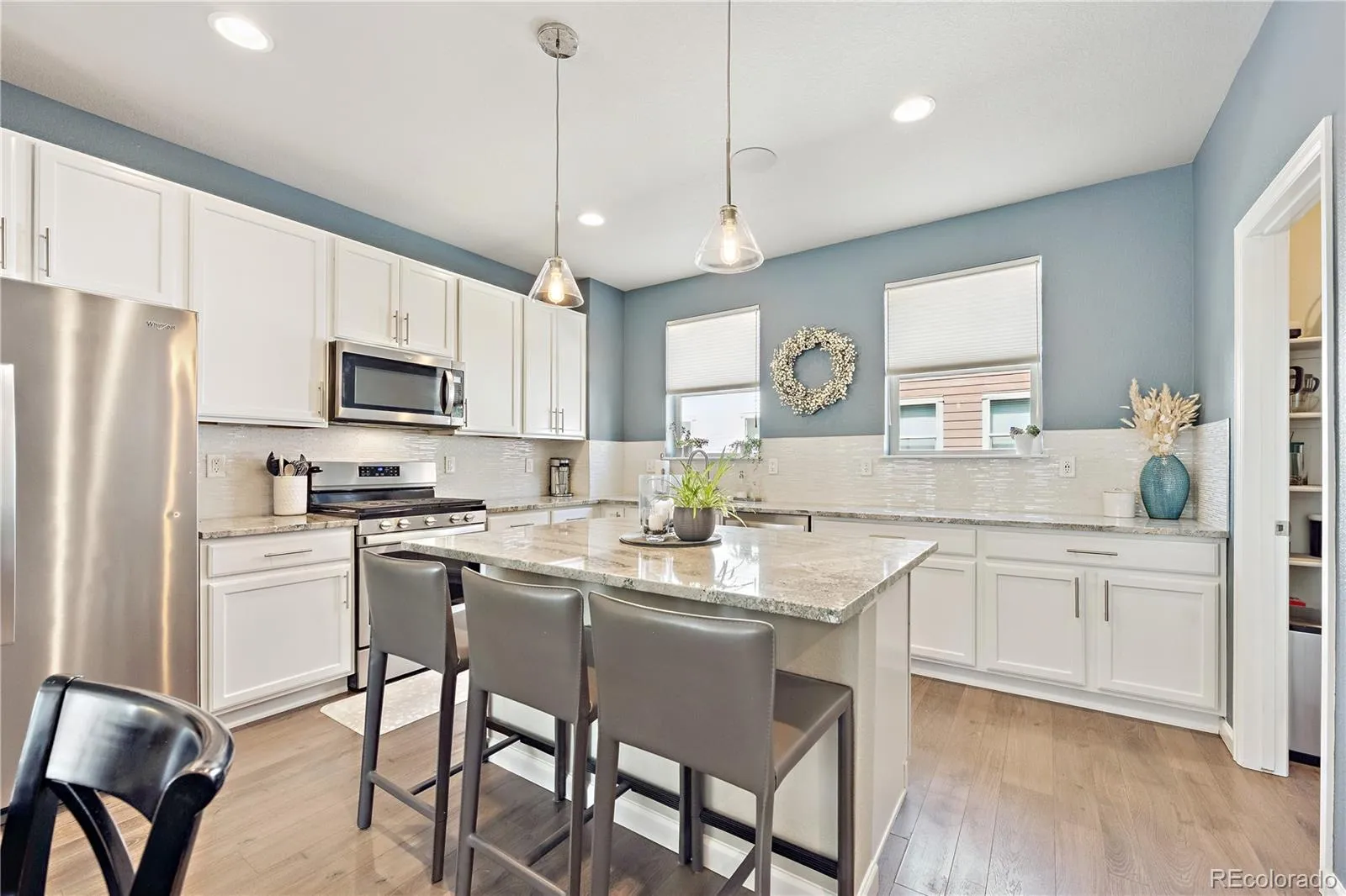Priced to sell, this move-in ready contemporary townhome offers stylish finishes, dual en-suite bedrooms, attached 2-car garage, and is located in the highly sought after, unbeatable Observatory Heights neighborhood just steps from light rail, dining, and entertainment. This beautifully maintained, owner-occupied 2-bedroom, 4-bathroom home features an attached 2-car garage, an open-concept multi-level floor plan, and quality finishes throughout, including upgraded LVP flooring and custom cellular shades with blackout shades in the primary suite. The extended kitchen is a standout with a large center island, walk-in pantry, granite countertops, stainless steel appliances, and abundant cabinetry, flowing seamlessly into the bright and spacious great room pre-wired for surround sound. A covered patio and porch create the perfect outdoor extension for relaxing or entertaining. Upstairs, both spacious bedrooms offer private en-suite baths and walk-in closets, including a beautifully appointed primary suite with a spa-like bath featuring marble flooring, a white tiled shower, and a stunning storm-blue glass tile accent wall. Upper-level laundry adds everyday ease and functionality. Close to University Park Elementary, Denver Academy, and the future Bethesda Park, this turnkey property also benefits from brand-new exterior paint and community landscape improvements. Stylish, low-maintenance, low HOA, turn-key and an incredible opportunity in one of Denver’s most convenient and fast-growing locations.
