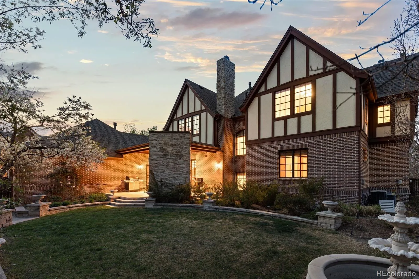 LUXURY LIVING IN LOWRY! TIMELESS ENGLISH TUDOR | RARE EXPANSIVE LOT ON 6TH AVENUE PARKWAY! This custom-built English Tudor sits on one of the largest homesites along 6th Avenue Parkway in a coveted Lowry location. A striking exterior with mature trees and architectural detailing sets the tone. Inside, natural light, quality construction, and high-end finishes define the well-designed living spaces. Grand main-level rooms, including the dining room and living room, are ideal for entertaining. A gas fireplace anchors the formal living room, while a stone fireplace highlights the family room. Doors from the family room open to the backyard for seamless indoor-outdoor living. Four fireplaces throughout the home add warmth and character. The main level also includes a custom library, secondary primary suite with en-suite bath, and two powder baths. The chef’s kitchen features a Sub-Zero refrigerator, premium appliances, high-end cabinetry, slab granite countertops, two dishwashers, two islands, an informal dining area, and a butler’s pantry. Two patios off the kitchen allow for easy outdoor dining. Upstairs offers five bedrooms and four bathrooms. The primary suite includes a sitting area with fireplace, desk space, five-piece bath with dual vanities, and a spacious walk-in closet. Updated and meticulously maintained, the finished basement by B&B Design Build includes a 1,000-bottle climate-controlled wine cellar, full bar, theater area and high-end sound system, plus an exercise area, game room, bedroom, ¾ bath, craft area, bonus space, climbing wall, play space, and storage. The private backyard features mature landscaping, a water feature, outdoor fireplace, and multiple seating areas. Close to Ulaanbaatar Park, Lowry Town Center, Boulevard One, Clark’s Market, Target, Wings Over the Rockies, Lowry Beer Garden, 13 parks, trails, Cherry Creek, and Downtown Denver. 4-car attached garage. A rare offering in Lowry!