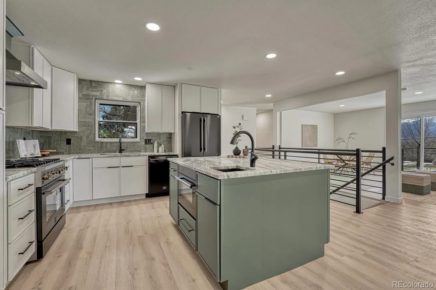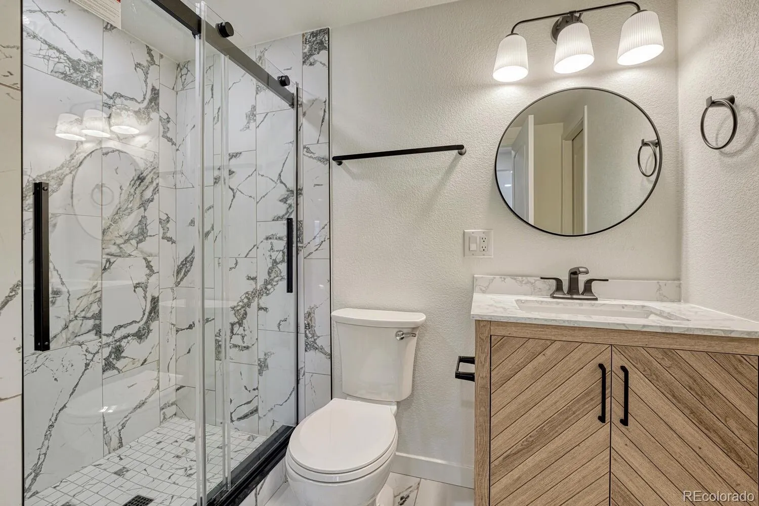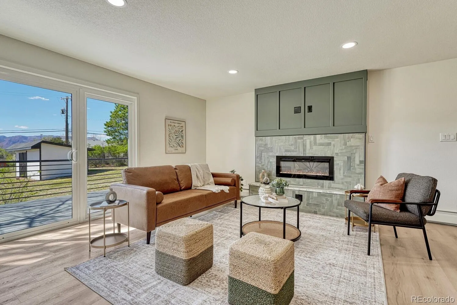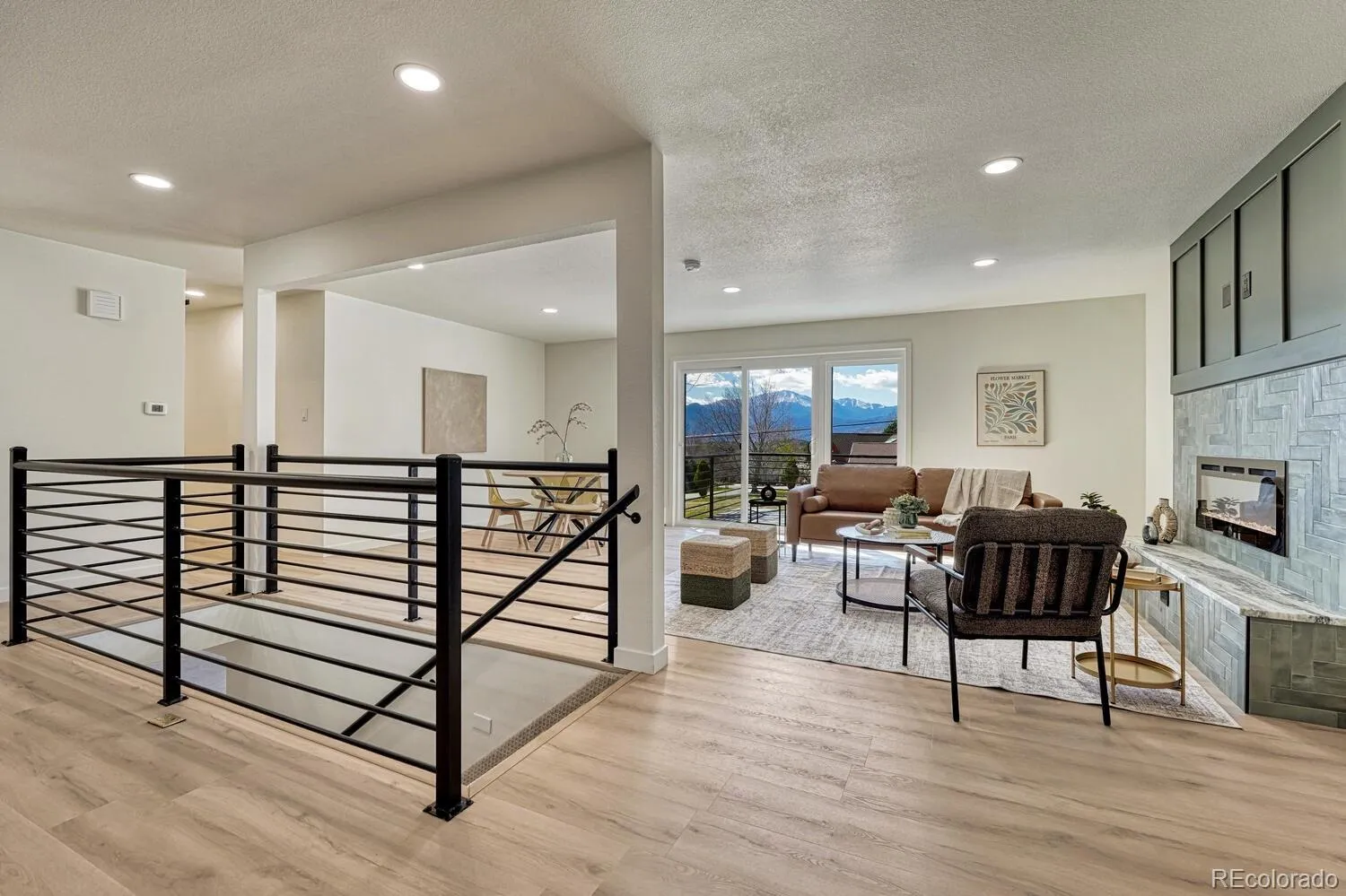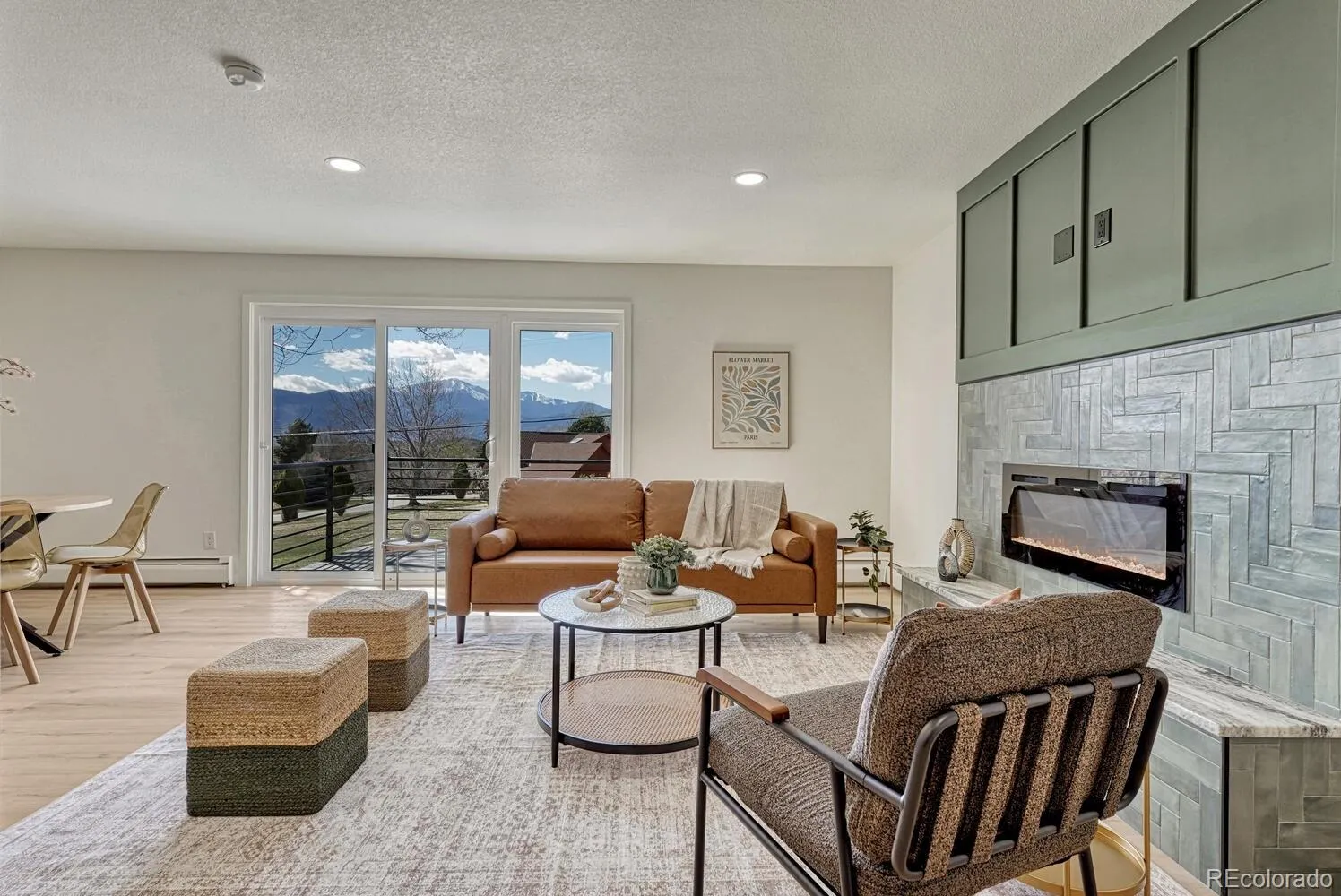 You are invited to explore a property that offers more than just a home. It delivers an elevated, private retreat with stunning views. This remarkable property is set on just over half an acre in the middle of the city! Fully reimagined this home showcases breathtaking updates throughout along with unobstructed views of Pikes Peak and the entire Front Range from every west facing window. Step inside to a bright and beautiful open concept main level designed to impress. The main level is an architectural standout, featuring a spacious living room with a show stopping fireplace, a formal dining area, and a chef’s dream kitchen. A sliding door off the living room leads to a large deck overlooking the expansive yard and sweeping mountain views. Picture yourself enjoying a glass of wine as the sun sets behind the mountains and fills the sky with color. The kitchen is designed to impress, with a large island, leathered granite countertops, a dramatic counter to ceiling backsplash, and a dedicated coffee and wine bar complete with a wine fridge. Just off the kitchen, a charming screened in porch provides a inviting space that is perfect for warm summer evenings. This home offers true main level living with a spacious primary suite and laundry room on the main level. The primary suite features a large walk in closet, a spa inspired bathroom, and mountain views through the window. A second bedroom, full bathroom, and laundry room complete the main level. Down the iron railed staircase, the expansive ground level basement opens up to a bright and inviting space. A striking floor to ceiling tile accent wall with a modern fireplace creates a dramatic focal point. The basement includes two additional bedrooms, each with its own ensuite three quarter bathroom. Nearly every detail of this home has been thoughtfully updated. This is more than a home. It is a lifestyle defined by space, privacy, and some of the best views Colorado has to offer. This one won’t last long!