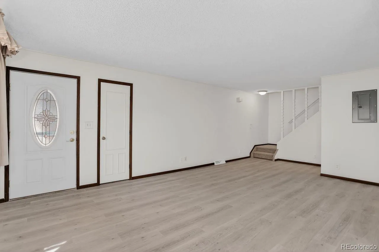 Spacious 2 bed/ 2 bath end-unit condo in desirable Hillcrest Homes. You’ll appreciate the attached, shared 1-car garage as it protects your car from Mother Nature. Step inside to the inviting living space with an open layout and new luxury plank vinyl flooring, designed for entertaining family and friends. Enjoy the cool, central A/C and community pool, with up to 6 guests, all summer long. The well-designed kitchen includes all appliances and is conveniently located off the dining area with ample cabinet space for storage. A powder bath with stackable washer/dryer unit completes the main level. Retreat upstairs to find 2 bedrooms, both featuring a walk-in closet, new carpet, and a shared full bath. Unit has been repainted and electrical panel has been updated to provide years of low maintenance. An enclosed outdoor patio off the dining area provides a shaded, private space to grill and entertain. Ideally located near shopping, I-25, hospitals, parks, and schools.