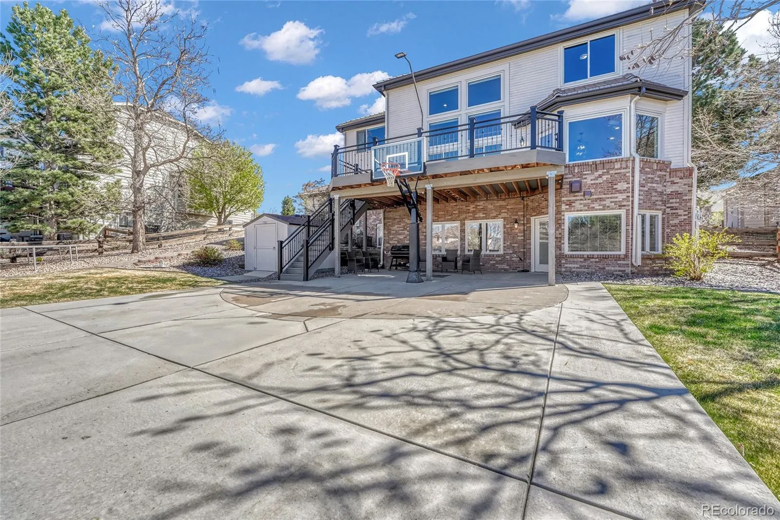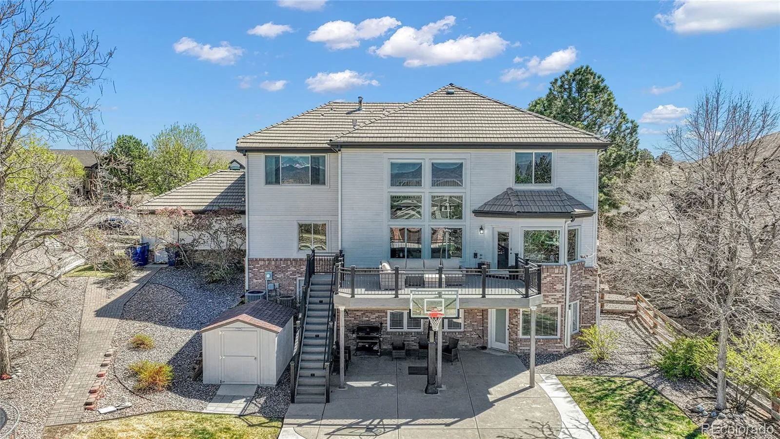 Welcome to this exceptional home in prestigious Mansion Hills, perfectly positioned on a quiet cul-de-sac on over 1/3 of an acre w/ breathtaking mountain views. Offering 5 bedrooms & 5 bathrooms across 5,278 SF, this beautifully updated home blends comfort, style, and functionality. Step inside to a grand foyer w/ soaring ceilings and stunning engineered hardwood throughout the main level. The thoughtfully designed open floor plan is ideal for both everyday living and entertaining, featuring a spacious family room with a gas fireplace and large picture windows perfectly framing the Mountains. The fully renovated chef’s kitchen (2024) comes w/ quartz countertops, custom cabinetry, all new premium appliances, pantry, large island, and designer finishes. The main level also includes a formal dining room, study, additional flex space, laundry room, and mudroom off the garage for added convenience. Upstairs, the luxurious primary suite is a true retreat w/ vaulted ceilings, spectacular mountain views, a 5-piece bath w/ soaking tub, double vanity, and dual walk-in closets. Three additional bedrooms upstairs include 1 w/ an en-suite bath and 2 connected by a Jack-and-Jill bathroom. The finished walk-out basement is an entertainer’s dream, featuring a large family and game room, wet bar, 5th bedroom, bathroom, and flexible space perfect for a gym. Outdoor living is just as impressive, w/ an expansive Trex deck, covered patio w/ TV, basketball court, garden, shed, and a beautifully landscaped backyard perfect for gatherings or relaxing evenings. Recent upgrades include fully remodeled kitchen, updated engineered hardwood, new interior & exterior paint, lighting, new oversized gutters, soffits, garage doors, and permanent LED lighting. Complete w/ a spacious 3-car garage with plenty of storage racks. The community of Mansion Hills is known for its family-friendly atmosphere and proximity to parks and recreational facilities. This home offers the very best of Colorado living!
