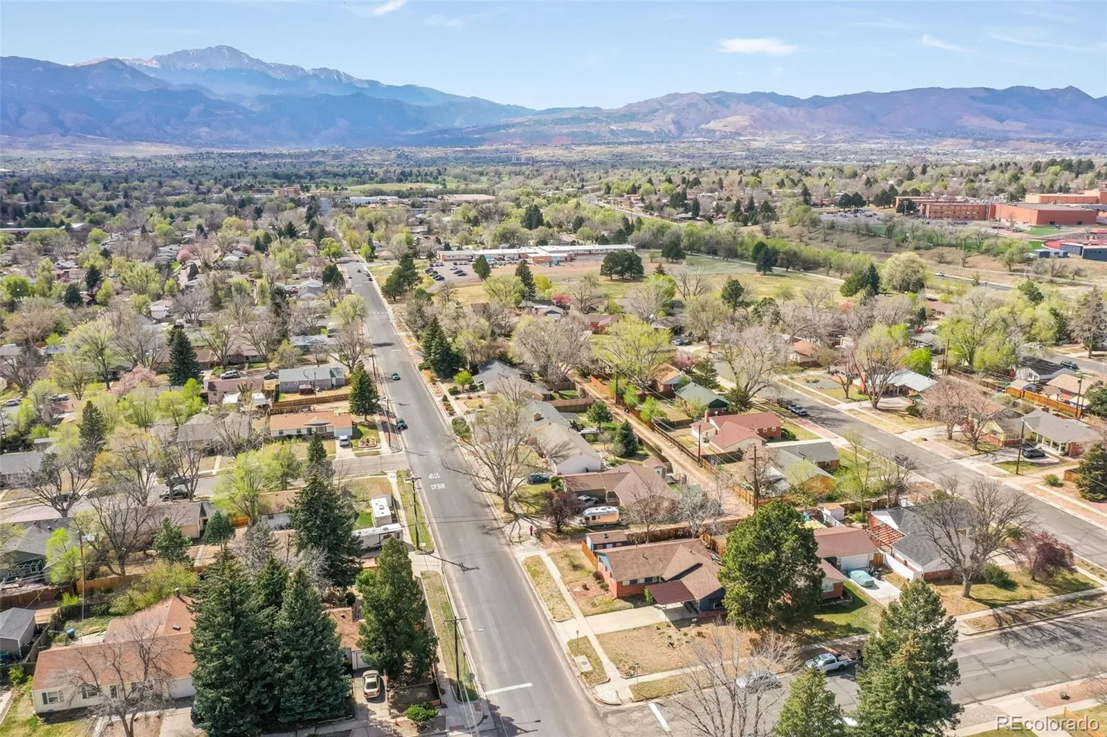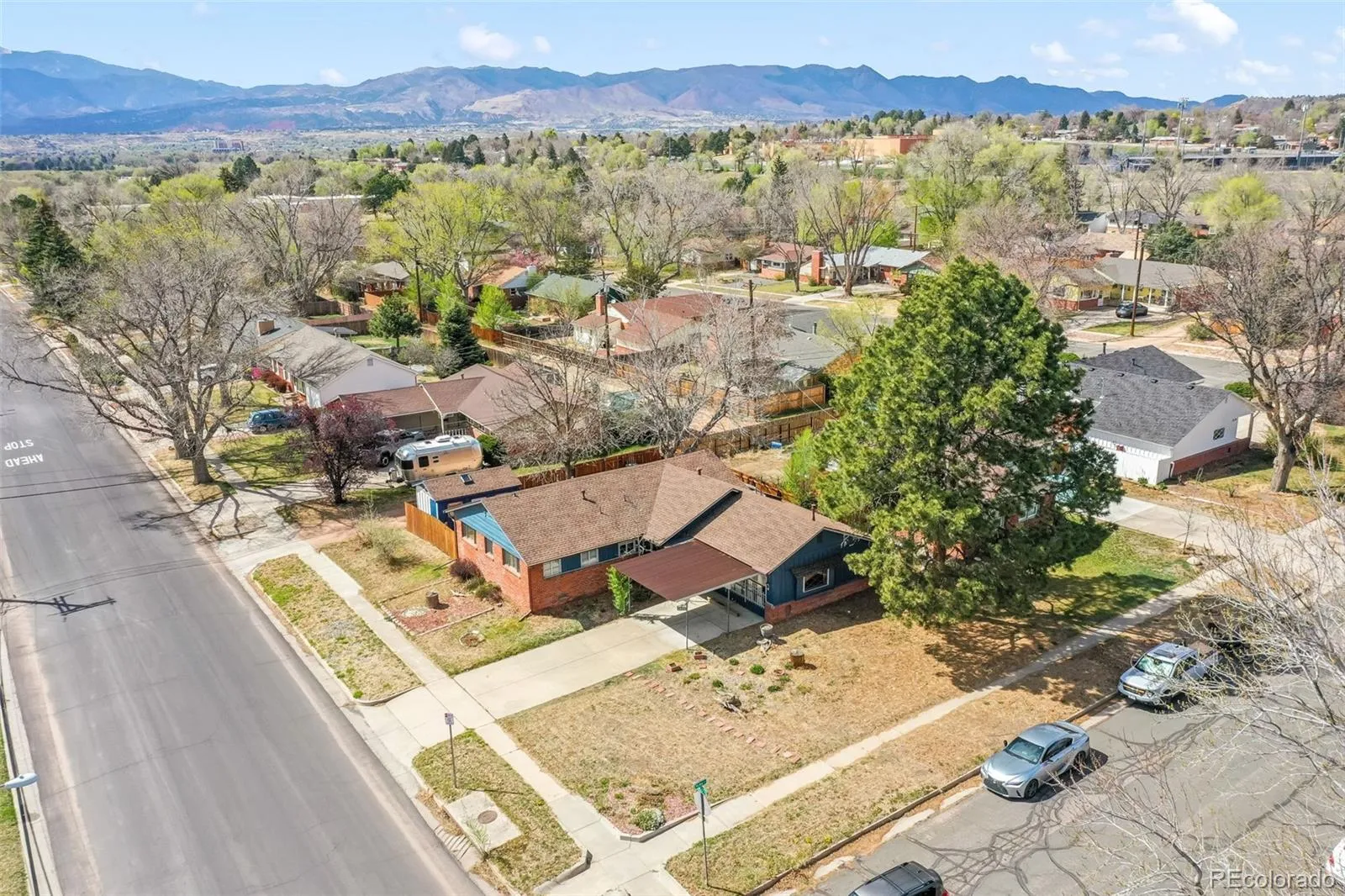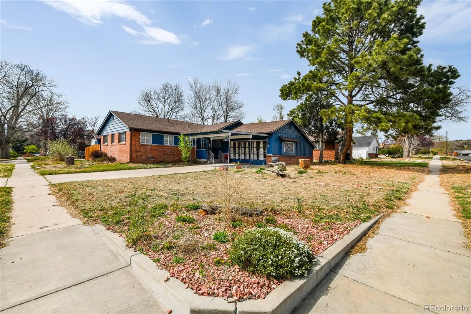 This charming mid-century rancher in the heart of Colorado Springs offers timeless character, thoughtful updates, and an unbeatable central location just moments from Patty Jewett Golf Course, local cafés, shopping, and everyday conveniences. Situated on a spacious corner lot with alley access and Pikes Peak views. From the moment you step inside, you’ll appreciate the warmth of newly re-finished original hardwood floors, detailed wood trim, and the natural light that fills the home. The oversized living room features a large picture window perfectly framing the Front Range, flowing seamlessly into the dining area and kitchen. The kitchen offers white cabinetry, included appliances, a breakfast bar, and new to be installed granite countertops. Just off the kitchen, a spacious secondary living area or flex room opens up endless possibilities, complete with floor-to-ceiling windows, dedicated laundry space, and access to the enclosed sunroom for year-round enjoyment. The main level features three bedrooms, including a primary suite with dual closets and an attached newly remodeled half bath, along with a full bathroom that serves the additional bedrooms. Step outside to your private backyard retreat, where mature trees, established landscaping, and garden beds surround a brick patio. A storage shed or workshop, dual gate access, and fully fenced yard add plenty of privacy. This home has an A/C unit, radon mitigation and a new hot water heater. This home offers incredible potential to live, invest, or create something truly special.
