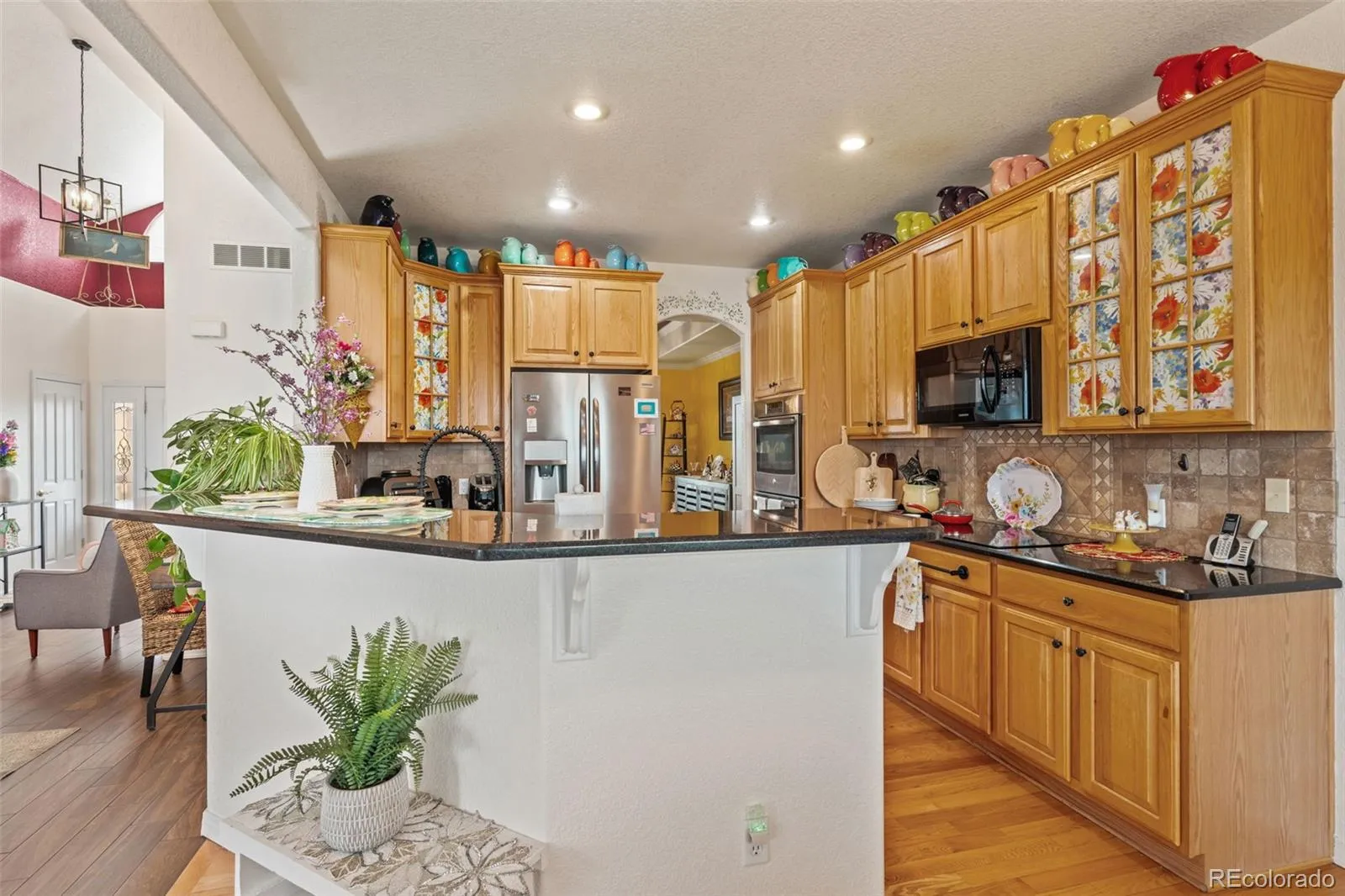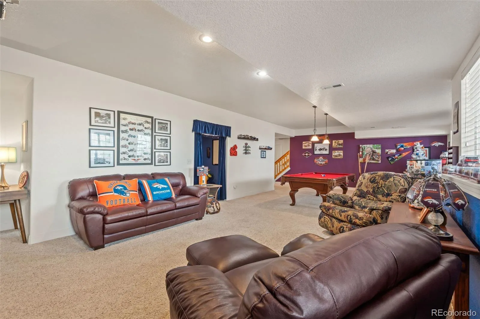 Welcome to this exceptional 5-bedroom, 4-bath ranch-style home situated on a full acre in the Antelope Hills community of Bennett, CO. Step inside from the inviting covered front porch to a bright and open main level featuring soaring cathedral ceilings and thoughtfully designed living spaces. The formal dining room showcases an elegant coffered ceiling, while the living room offers a cozy fireplace, abundant natural light from a striking sunburst window, and walk-out access to the deck. The eat-in kitchen is both functional and stylish, complete with a counter bar, double oven, stainless steel appliances, and plenty of space for everyday living and entertaining. The primary suite is a private retreat, highlighted by a beautiful bay window, a 5-piece en suite bath, and direct access to the deck. Two additional bedrooms, a convenient laundry room, a 3/4 bath, and a half bath complete the main level. Just above, a versatile loft provides the perfect flex space—ideal for a home office, reading nook, play area, or additional lounge. Downstairs, the garden-level basement expands your living space with a large family room featuring a pool table, plus a dedicated theater/media room with projector—perfect for movie nights or hosting guests. This level also includes two additional bedrooms, a 3/4 bath, and a generous storage room. Enjoy outdoor living on the covered deck overlooking wide-open prairie views—ideal for relaxing or entertaining year-round. Additional highlights include a 3-car attached garage, a 1-car detached garage, a charming she-shed, and ample space to spread out and enjoy country-style living. Conveniently located just 30 minutes from Denver and Parker, this home offers the perfect balance of peaceful surroundings and easy access to city amenities. Don’t miss this incredible opportunity—take a look at the linked walk-through video tour and schedule your showing today!