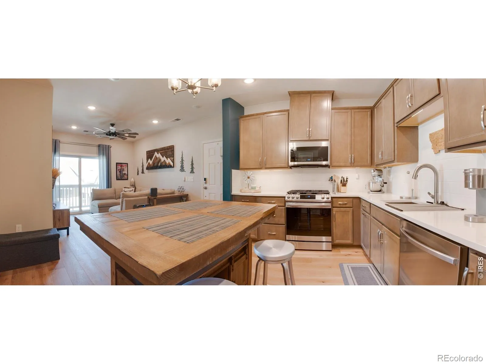 Beautifully maintained 2 bedroom/2 bath condo offering low maintenance living in desirable location close to Buckley AFB and Anschutz Medical Campus. Bright, open floor plan offers seamless flow between the living area and kitchen featuring engineered hardwood. Kitchen features quartz countertops, stainless steel appliances, ample cabinetry and island/table included. Spacious primary suite includes walk in closet and private bath separated by sliding door for privacy. Additional bedroom is ideal for guests, office or flex space. In unit laundry for added convenience. Enjoy your own private balcony with two storage closets (one heated). Top floor and sound mat between floors allows for quiet enjoyment. This unit comes with its’ own reserved parking place as well as a one car detached garage offering additional storage. Community amenities include pool and fitness center as well as nearby parks. Move in ready and perfect for full time living or lock and leave lifestyle.