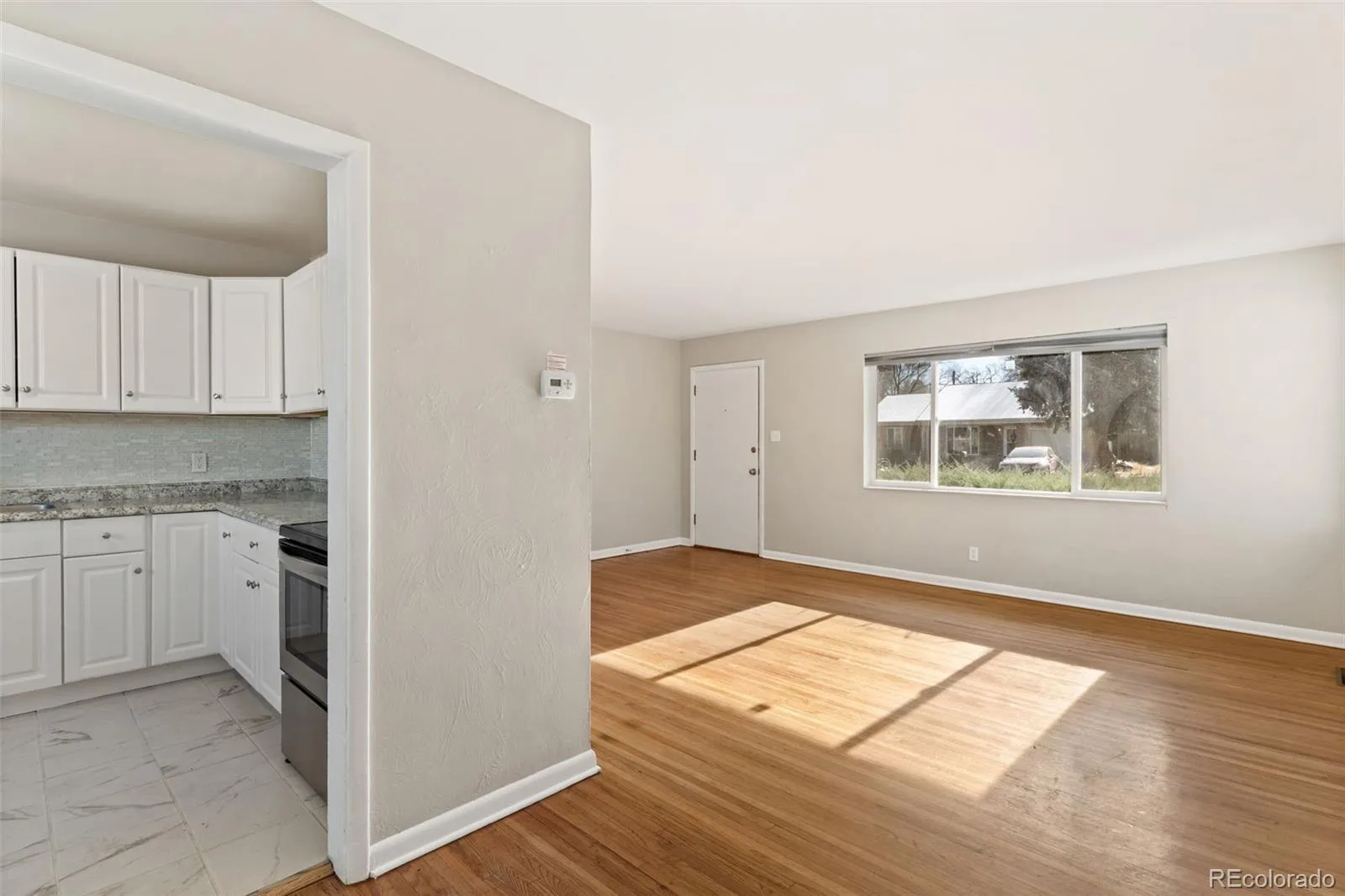 floors flow through the living room, dining room, hallway, and bedrooms, creating warmth and elegance. The large fenced