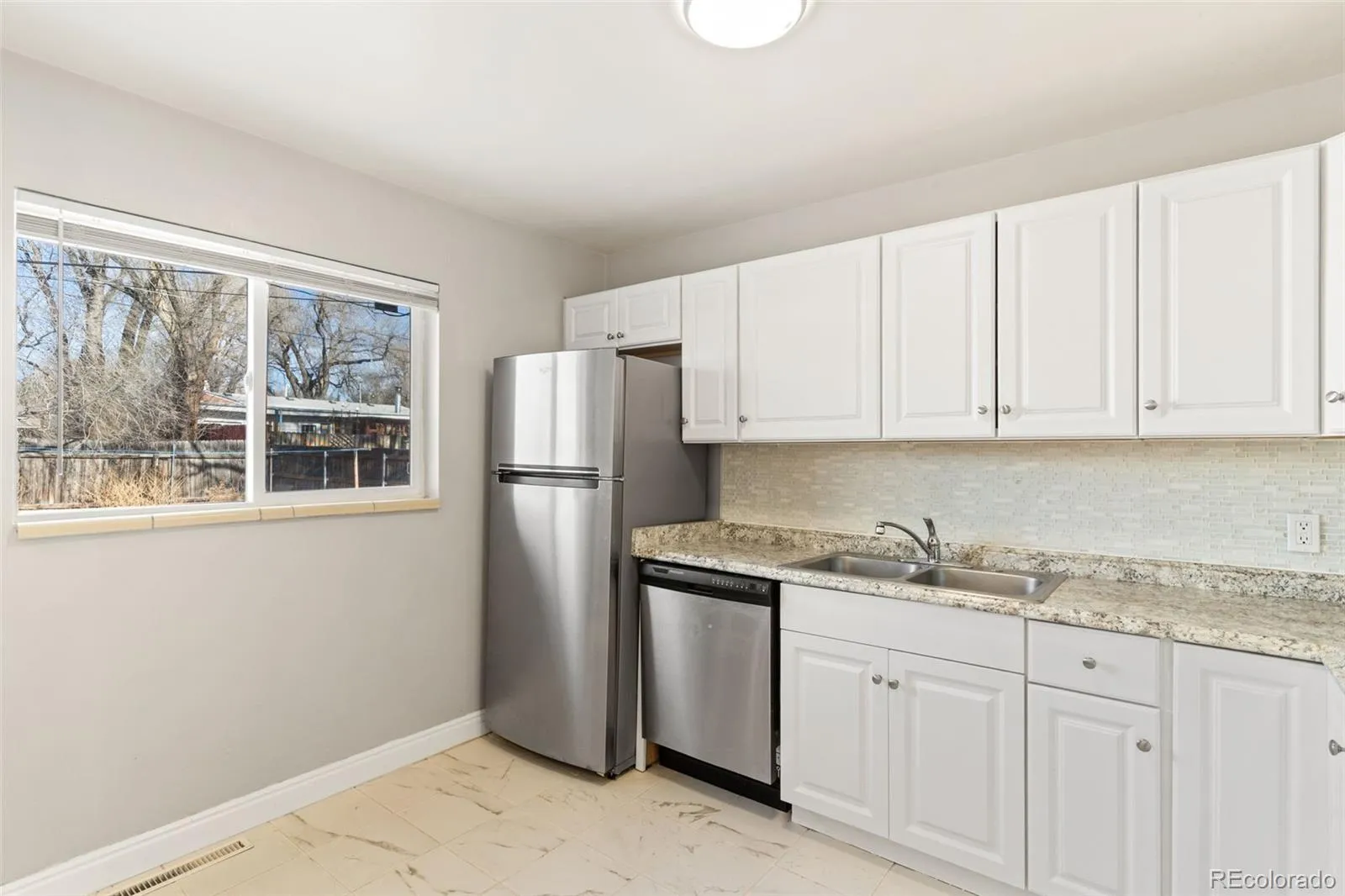 features a light and bright kitchen with stainless steel appliances, an updated bathroom, and vinyl windows and newer