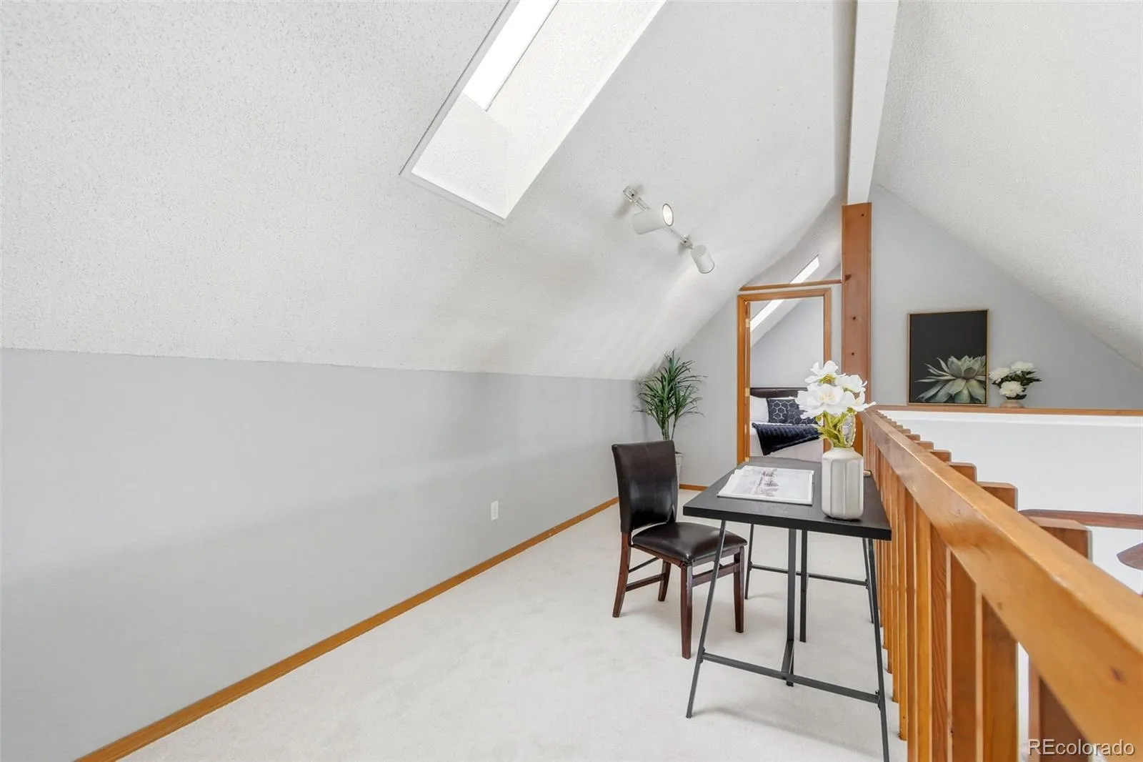 Perched in a penthouse setting across from Cornerstone Park and just steps from Belleview Park, this light-filled residence offers an inviting, open-concept layout designed for both everyday living and long-term value. The main living space is anchored by soaring vaulted ceilings, skylights, fresh interior paint, and a cozy wood-burning fireplace, while south-facing double doors flood the home with natural light and create a seamless connection to the outdoors. The spacious patio, also south-facing, extends your living area and includes additional storage, making it the perfect spot to relax or entertain. The primary suite continues the bright, airy feel with its own set of south-facing double doors to the patio, impressive vaulted ceilings, and a generous walk-in closet. The kitchen is both functional and stylish, featuring newer appliances, ample cabinetry, and a large island with seating that flows effortlessly into the main living area. A versatile loft above offers endless possibilities, ideal for a home office, creative space, or flex area, and is paired with an additional non-conforming bedroom, providing even more adaptability to suit a variety of needs. Additional highlights include new carpet, central A/C installed in 2022, and a dedicated carport parking space. With immediate access to trails, parks, shopping, and dining, this location delivers the best of Littleton living, while the layout and flexibility also make it an attractive option for investors or those seeking a low-maintenance lifestyle with strong rental potential!