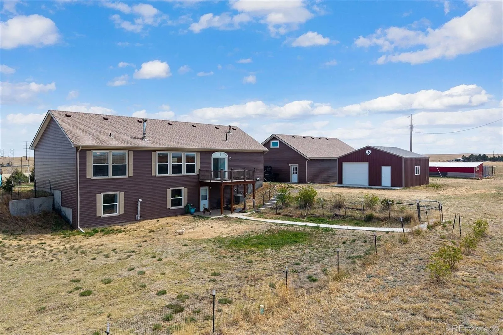 Nearly 40 acres of usable land with sweeping views, fenced pastures, and the infrastructure to support true country living—this is the freedom and flexibility buyers are searching for. The property is fully equipped for agriculture and/or livestock, featuring a barn with 2 stalls, chicken coop, and dedicated housing for goats and sheep. A spacious workshop provides room for projects, hobbies, or business use, while the oversized garage offers three doors, four bays, and extensive storage both along the perimeter and in the rafters. Designed for self-sufficiency, the property includes an owned propane tank, well water, and a septic system—making off-grid or low-dependency living a real possibility. The primary residence offers convenient main-floor living, along with a fully separate walk-out lower level complete with its own kitchen and handicap-accessible entrance. This setup creates two distinct and flexible living spaces—ideal for multi-generational living, rental income, or private guest quarters. Located within the desirable Byers School District and just a short drive to everyday amenities, this property offers the perfect balance of rural independence and practical convenience.