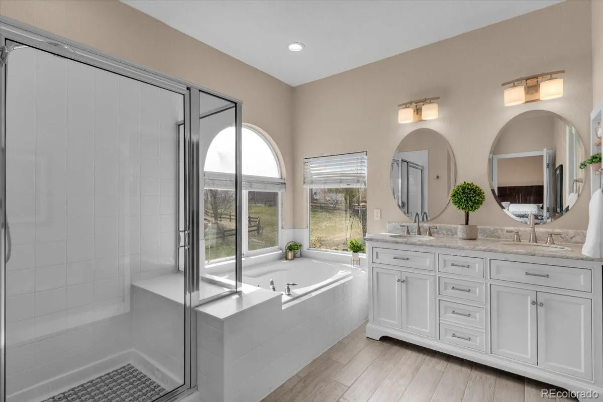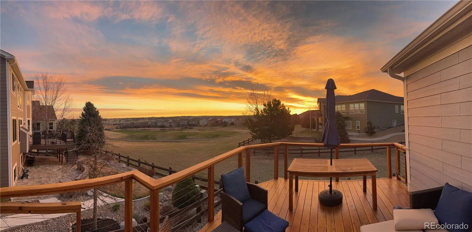 Updated ranch home over 3,000 finished square feet in Canterberry Crossing backing to the 6th Tee at Black Bear Golf Club! 3 CAR GARAGE! FINISHED BASEMENT! REDWOOD DECK! This ranch style home is move in ready and packed full of over $150,000 in updates!! Quiet and private street you have been waiting for! Enjoy your morning sunrise and evening dinner on the deck all year long!!! DRY SAUNA!! This home is a must see!! The reimagined kitchen layout on the main floor allows for open living between the kitchen, dining and living room and deck. Everything you need on the main floor, 3 bedrooms, 2 bathrooms, laundry room, cozy fireplace! Primary suite with vaulted ceilings overlooks the golf course!! Complete with a 5 piece en suite bathroom and walk in closet. The finished basement offers room for all your hobbies and guests! Home theater room, home gym, open rec space with storage cabinets for games and toys, spacious guest room, another bedroom being used as a home office with a HIDDEN HOME BREWERY WITH KEGERATOR!! Simply push the bookcase open and you will find a hidden room! It gets better!!! The basement bathroom has your very own home DRY SAUNA!!! UPGRADES include * baseboards * bathroom vanities * light fixtures * toilets * interior and exterior paint * smart thermostat * whole house humidifier * three-quarter inch solid hickory hardwood flooring * fireplace stone, mantle and accent * electrical sockets and switches * stainless steel kitchen appliances * tile backsplash * finished basement * pre-wired home theater * staircase to basement built with solid oak flooring from the previous entryway * sump pump and radon fan * dry sauna * redwood deck * raised garden bed and shed. RESORT-STYLE AMENITIES INCLUDING SERENE PARKS, TRAILS, COMMUNITY POOL, TENNIS COURTS! UNBEATABLE CONVENIENCE, JUST 25 MIN TO THE DENVER TECH CENTER, 40 MIN TO DENVER INTERNATIONAL AIRPORT, 20 MIN TO PARK MEADOWS MALL AND CENTENNIAL AIRPORT, AND LESS THAN 4 MILES TO THE CHARM OF DOWNTOWN PARKER!