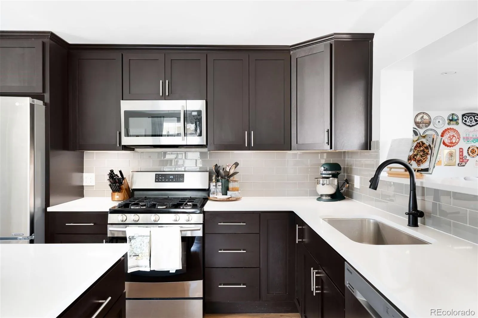 Welcome to 6164 Carr Street, a beautifully updated brick split-level in a convenient Arvada location just minutes from Olde Town. Thoughtfully remodeled and meticulously maintained, this 4-bedroom, 2-bath home blends classic mid-century charm with modern updates. The main level features a bright, open floor plan with hardwood floors, a wood-burning fireplace, and large west-facing windows that bring in abundant natural light. The updated kitchen connects seamlessly to the dining and living areas, creating an easy flow for both everyday living and entertaining. Just off the kitchen is a spacious flex room that functions well as a secondary living room, home gym, or workspace, with direct access to the backyard and patio. Hardwood floors continue upstairs, where you’ll find two generously sized bedrooms with custom closet systems and a full bathroom. The lower level expands your living space with two additional bedrooms and another full bath—ideal for guests or a home office. The functional floor plan and split-level design create separation between spaces while maintaining a cohesive feel throughout. Recent updates enhance both style and livability, making this home truly move-in ready. Outside, the pergola-covered patio extends the living space outdoors, while the large, fully fenced backyard offers ample room for recreation, gardening, or future possibilities. An oversized detached two-car garage, along with a separate storage shed, provides plenty of space for parking, tools, and gear. Located just minutes from Olde Town Arvada’s shops, restaurants, and light rail, with easy access to parks, trails, and major commuter routes, this home offers a seamless balance of space, functionality, and convenience.
