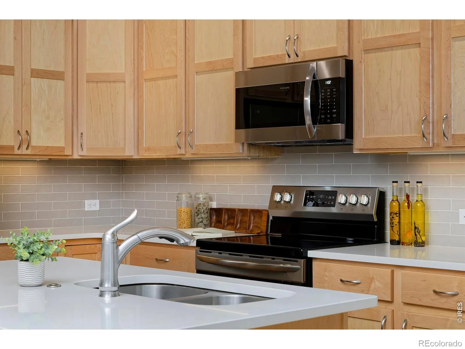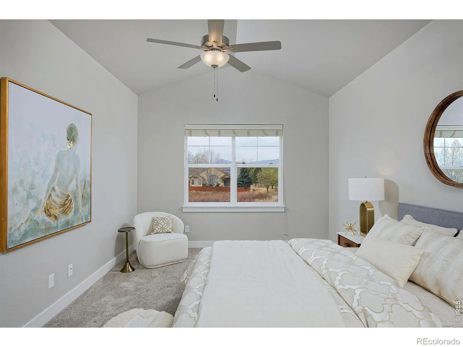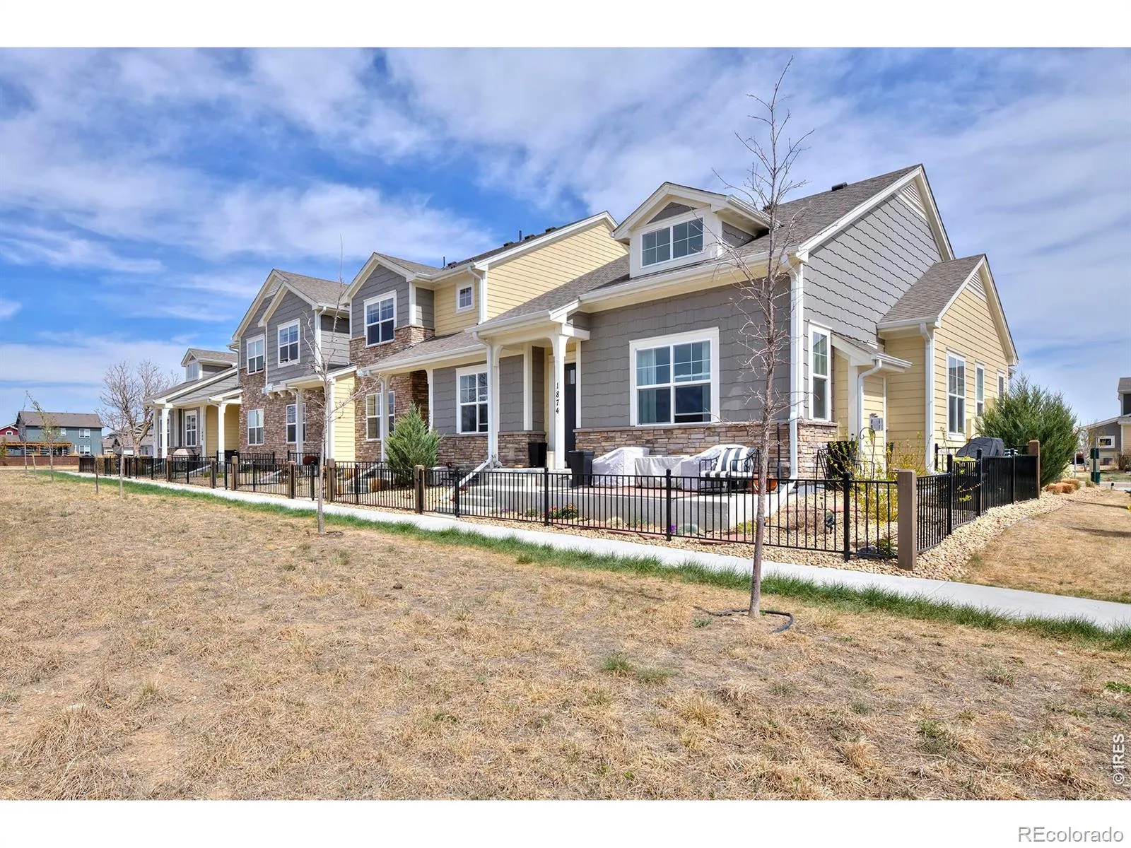 Storybook vibes meet real-life comfort in this like-new townhome bordering a peaceful open space with gorgeous, unobstructed western views. The paved path just outside the front door meanders through neighborhoods, connecting to natural areas and gardens. Mindful design choices like light, warm hardwoods, tall windows, and plush, premium carpet in sleeping areas make this space extra cozy. The sun-filled living area with a gas fireplace and pristine, light hardwood floors opens to the rest of the main level including a kitchen with light cherry cabinetry, stainless steel appliances, and a floating white quartz island with a deep double-basin sink. Upstairs, the primary suite has high, vaulted ceilings, a large bathroom with double sinks, a spacious low-threshold shower, and a massive closet (you’ll find another in the second upstairs bedroom!). The finished, carpeted basement is a warm retreat for guests, with its own bed and bath for that *little* bit of space we all can use. The two-car garage is upgraded with a finished epoxy floor to easily store your outdoor gear without dragging mud or melting snow inside. In a growing pocket of town, restaurants and shops are regularly popping up within a few minutes’ drive, and world-class outdoor areas, like Horsetooth Reservoir, will become your familiar post-work or weekend sanctuaries.