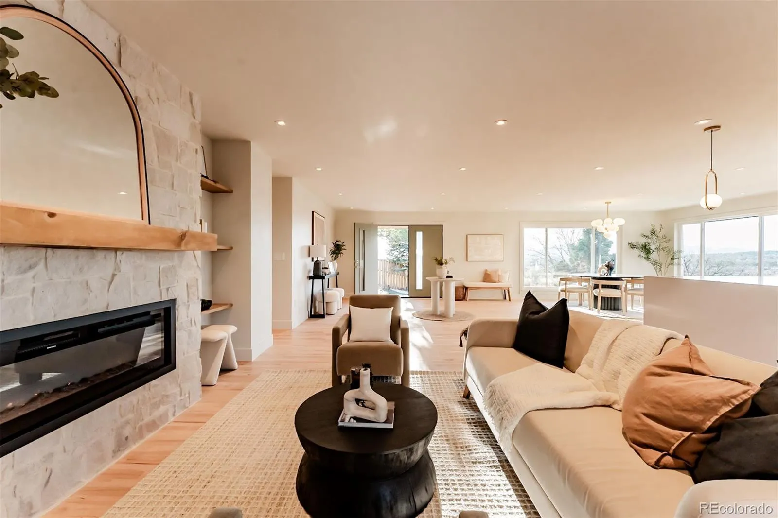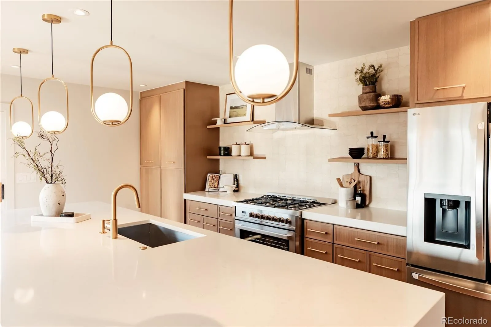 Rare opportunity to own a stunning California Contemporary retreat in Inspiration Point—one of Denver’s highest elevations—offering foothills living with panoramic views of the Denver skyline, Ralston Valley, and the Rockies. Ideally located between NW Denver and Olde Town Arvada, across from Willis Case Golf Course and minutes from Regis University, this home combines luxury, location, and versatility. The open-concept main level features mid-century modern design, expansive windows, original hardwood floors, Level 5 smooth-finish drywall, and seamless flow to an oversized rooftop deck—perfect for entertaining or enjoying Colorado sunsets. The chef’s kitchen boasts high-end finishes, a waterfall island, quartz countertops, full tile backsplash, new stainless steel appliances, wood cabinetry, and a walk-in pantry. Main-level amenities include two primary suites—one with a 5-piece bath—an additional 3/4 bath, a guest half bath, and a main-floor laundry room.