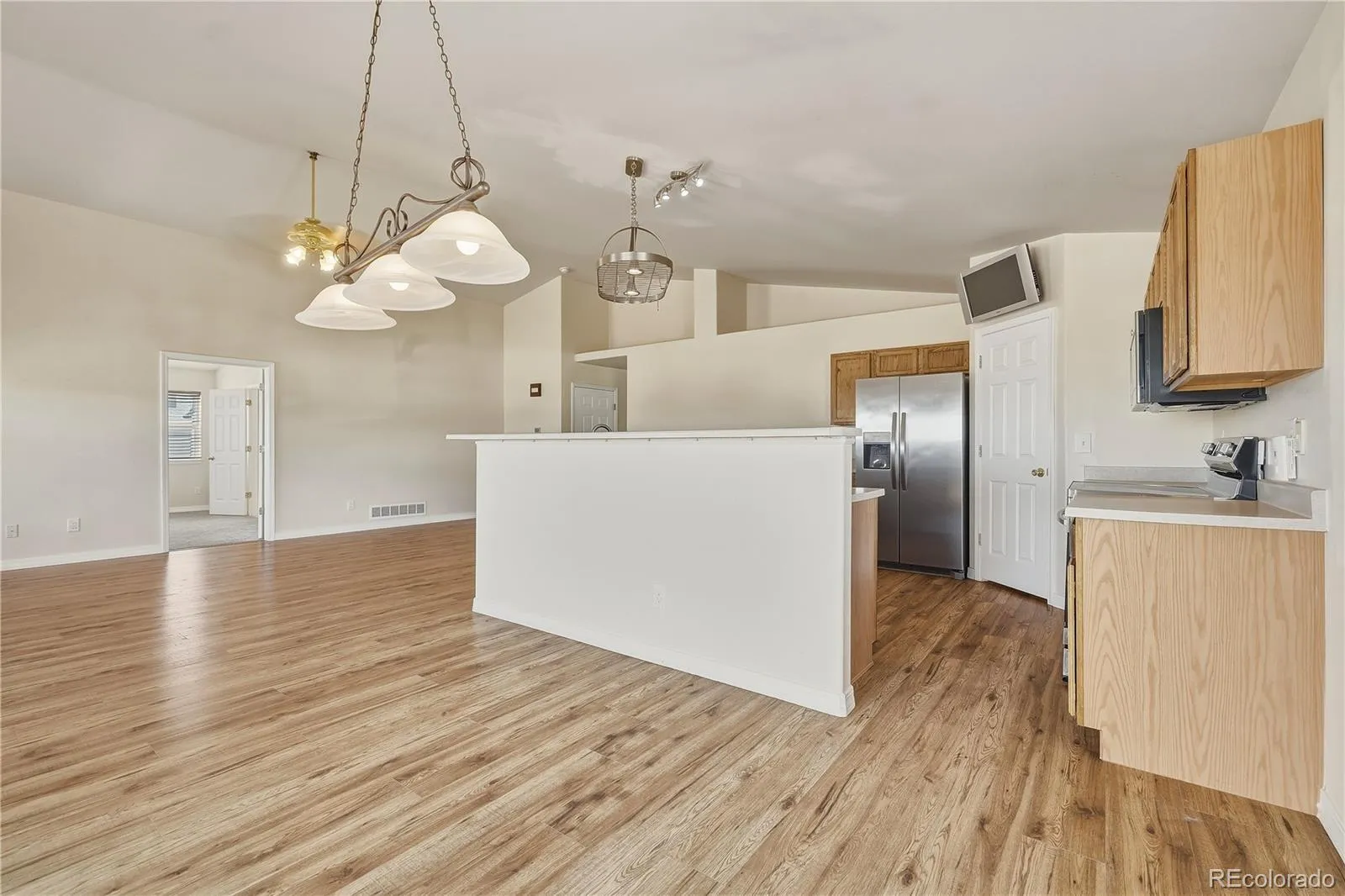 Set on a half-acre fully fenced lot, this ranch-style home delivers the ease of main level living without sacrificing space or comfort. The retaining wall adds extra parking, RV parking is available on the side, and a fire pit makes for perfect Colorado evenings in the backyard. Inside, the sun-drenched great room flows seamlessly into a kitchen designed for entertaining, complete with a casual dining area and a walkout to the deck. The main level features a primary suite with 5-piece bath, two additional bedrooms a full bath, and laundry — everything you need on one level. Head downstairs to the spacious finished basement, where a large bedroom and a combined family room with theater screen and projector create the ultimate hangout space. Additional finished rooms offer flexibility for guests, a home office, or hobby space, while dedicated unfinished storage with shelving keeps everything organized. With 5 bedrooms total, central air conditioning, and an abundance of finished living space, this home is as functional as it is impressive. ENT UPDATES • Newer Roof (2022) • Newer Furnace (2022) • Newer Deck (2024) • New Hardwood Floors (2025) • Brand New Carpet (2026) • Refrigerator (2020) • Washer & Dryer (2020) • Stove (2021) • Dishwasher (2021) Move-in ready and well maintained — don’t miss this outstanding opportunity in Falcon!