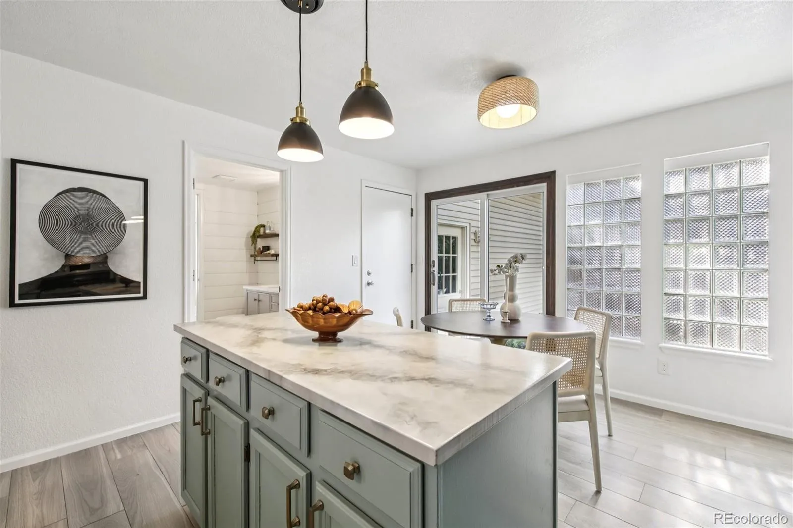 Welcome to 9237 W Nichols Place. This brick dreamboat is the perfect Central Littleton charmer, where timeless character meets thoughtful and elegant upgrades. Set on a low-maintenance lot, this spacious two-story home delivers 2,348 sq ft of comfortable + flexible living with 3 bedrooms and 2 beautifully-updated full size bathrooms. Attention to detail was not spared by the owners with this remodel! Enter beneath vaulted ceilings and be greeted by original stained-glass windows that cast warm, colorful light across the main level. The living room centers on a welcoming wood-burning fireplace and flows seamlessly to a chef-ready kitchen fully remodeled by the owners in 2023 – featuring sage green cabinetry, white marble countertops, sleek finishes, and ample cabinetry + pantry space. The primary bedroom upstairs is a standout, boasting an oversized double walk-in closet, a gorgeously-renovated en-suite bathroom, and an abundance of natural lighting with vaulted ceilings. Thoughtful storage solutions continue throughout the home with double closets fitted with custom organizers, the oversized + attached garage, and the unfinished basement with valuable storage options and functional utility. Recent mechanical and cosmetic investments offer modern convenience and peace of mind: new central AC and furnace (2021), new carpet (2019), upgraded lighting throughout (2024), new garage door and back sliding door (2023), plus upgraded durable vinyl siding. Outside, new landscaping and a sprinkler system (2022) frame a beautifully lush and private fenced-in backyard with a perennial garden and custom patio. With easy access to C-470 and nearby Littleton amenities, this home blends everyday practicality with refined touches in the heart of it all. Not to mention, this is located in one of Littleton’s top rated school districts. Don’t miss this exceptional Littleton opportunity – schedule your showing today.