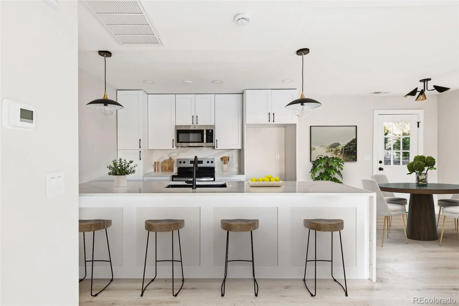 This fully remodeled ranch-style residence artfully blends modern sophistication with timeless comfort in a coveted University Hills location. Boasting stylish updates throughout, this home features an open-concept layout bathed in natural light. The living and dining areas flow seamlessly into a stylish kitchen, complete with all-white cabinetry, stainless steel appliances, sleek countertops and contemporary pendant lighting. The primary suite offers a serene retreat with a ¾ bath featuring a walk-in shower, while the secondary bath showcases modern tile and fixtures. Versatile secondary bedrooms provide flexible space for guests or a home office. Light, neutral wall color throughout is complemented by harmonious flooring. Ideal for both relaxing and entertaining, the large backyard includes a covered patio perfect for outdoor gatherings. Outside, the extended driveway accommodates multiple vehicles, adding both convenience and functionality. Perfectly move-in ready, this home offera an exceptional location just one block from one of Denver’s top-rated public elementary school, Bradley International, steps from the High Line Canal Trail, local amenities, and offers easy access to I-25 and the light rail. This home exemplifies effortless, elevated Denver living.