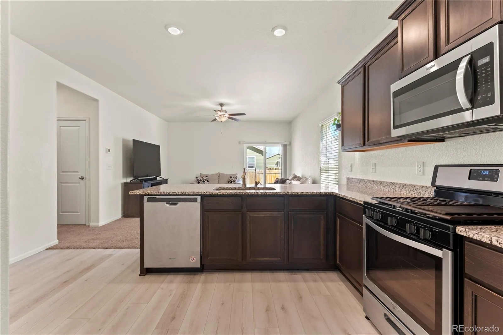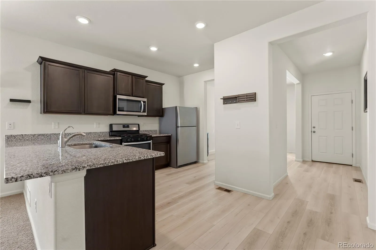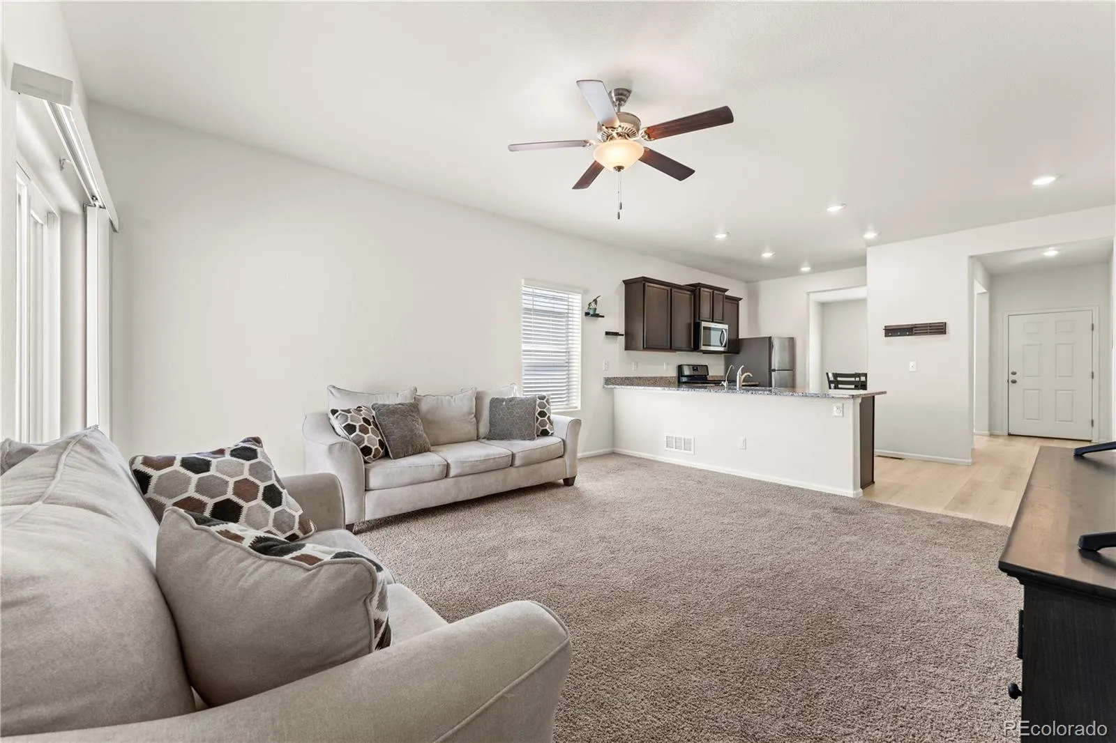 Welcome to this beautifully maintained 3-bedroom, 2-bath home in the growing Evans Place community of Keenesburg. Built in 2021, this home offers a modern open-concept layout perfect for everyday living and entertaining. The chef-inspired kitchen features granite countertops, ample cabinetry, and flows seamlessly into the spacious living and dining areas filled with natural light.