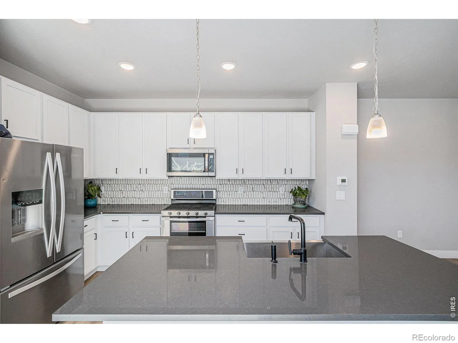 Like-New! Come see the difference at this designer upgraded, paired Home by Wonderland in the highly desired town of Timnath. Rendezvous at Trailside brings together walkability/ bike ability to restaurants and nearby trails, parks, outdoor concerts all summer, and a sense of home, all the while keeping it both low maintenance & luxury! Not to mention…Great Schools + Great Community = Great Investment long term. A substantial upgrade from the track townhomes, you’ll enjoy a quiet & semi-custom home with a PRIVATE YARD for dogs and gardening (hot tub included). Neighborhood Perks include: Clubhouse, Resort Style Pool w/ Slide, Splashpad, Pickle Ball Court & Park. Flowing wide plank LVP floors beckon you into an abundance of natural light. The Chef in your family will love cooking in this kitchen w/ smooth quartz counters, ample 42 inch cabinets w/ soft close hinges, designer tile backsplash, SS Appliances & a freestanding gas stove. Entertaining in the open floor plan is easy as guests flow from the dining area right out to your large patio. Enjoy plenty of private space to watch the sunrise, tinker with your raised garden bed & sip your morning coffee. Upstairs you’ll find the primary suite with a walk-in shower, quartz counters, luxury tile & walk-in closet and the convenience of laundry as well. The vaulted ceiling 2 car garage with rear entry, gives space for storage and 2 vehicles. Find room for a Home Gym, ample storage, and future sweat equity in the additional 752 square foot basement. This home is also ENERGY STAR Certified saving you money on your annual utilities. Easy access To I-25 and Fort Collins, this is a place to call home.