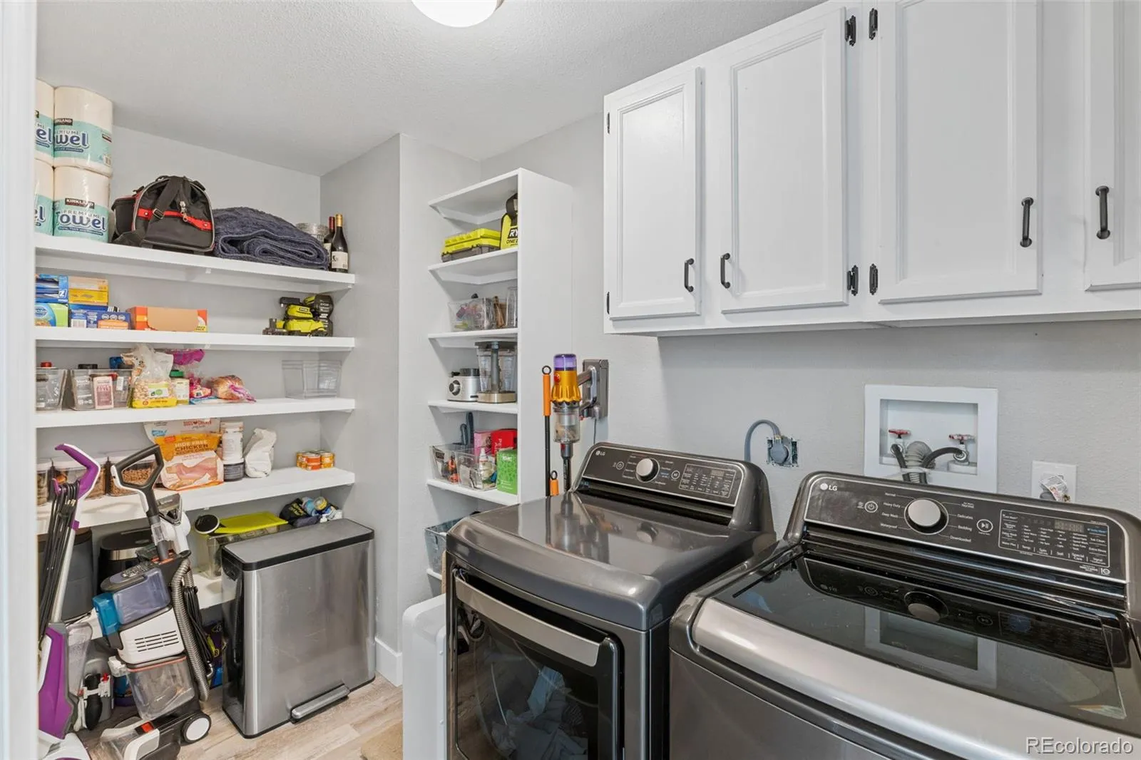 Beautifully updated throughout, this 3 bedroom, 1 bathroom home in Denver’s Athmar Park blends modern comfort with everyday functionality. Fully renovated in 2022, the home features an open floor plan filled with natural light from large windows, showcasing quartz countertops, matching Whirlpool stainless-steel appliances, and Kohler finishes. The kitchen includes a gas range, counter-depth refrigerator, oversized sink, and an expansive walk-in pantry/laundry room with built-in shelving and cabinets and matching LG washer and dryer.