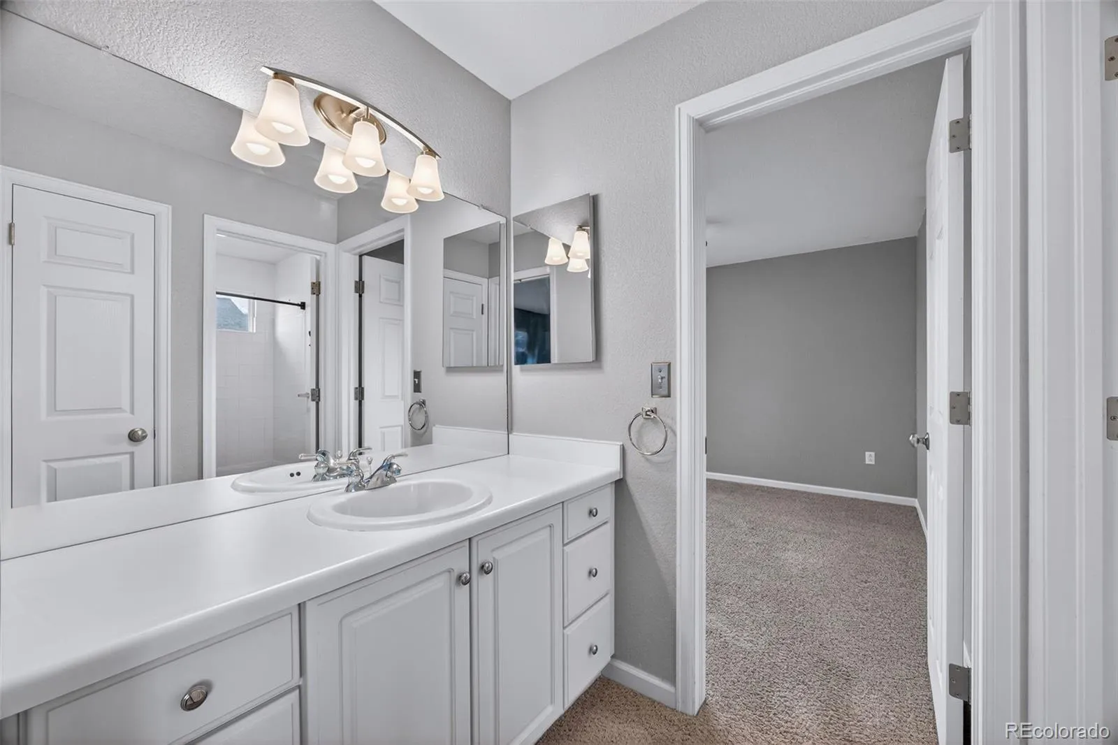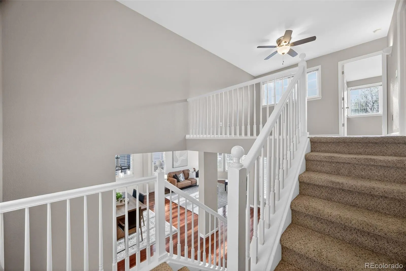 Welcome to this beautiful home in the heart of Highlands Ranch, located in the highly desirable Eastridge neighborhood! This well-maintained 5-bedroom home offers an ideal floor plan with stunning hardwood floors, a 3-car garage, and a walkout basement. The entire exterior, including the fencing and patio, was freshly painted, and a brand NEW roof and gutters were installed in 2024. The home sits on an exceptionally quiet street that dead-ends into a cul-de-sac, offering added privacy, safety, and minimal traffic—perfect for families or anyone seeking a peaceful setting. The main level features formal living and dining areas, a cozy family room, and a convenient main-floor primary suite complete with a 5-piece bath and a spacious walk-in closet. The kitchen is both functional and inviting, offering stainless steel appliances, a large center island, ample cabinetry, and direct access to the backyard deck—perfect for indoor-outdoor living. Upstairs, you’ll find two additional bedrooms connected by a full Jack-and-Jill bathroom, along with a versatile loft space ideal for a home office, playroom, or additional living area. The finished walkout basement expands your living space even further with a large fourth and fifth bedroom—one with a walk-in closet—along with a remodeled bathroom and a generous recreation area that’s perfect for entertaining, or additional flex space. Step outside to enjoy the beautifully landscaped backyard and expansive dried-in deck, creating a private outdoor retreat ideal for relaxing or hosting gatherings. Located in one of Highlands Ranch’s most sought-after communities, residents enjoy access to four state-of-the-art recreation centers featuring pools, fitness facilities, tennis courts, and more. You’re also just minutes from top-rated schools, parks, scenic trails, shopping, dining, and year-round community events. Bonus: Offering buyers a preferred lender-paid 1-0 buydown. Don’t miss the opportunity to make this incredible home yours!