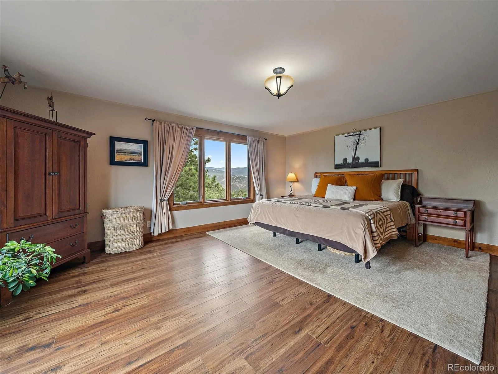 Looking for the rare combination of a close-in Evergreen location and expansive views of Mount Blue Sky, Three Sisters, Evergreen Golf Course, and the surrounding hills and valleys? This stunning Hiwan Hills home has been thoughtfully updated while preserving the warmth and character that make it so memorable from the moment you step inside. The main level has a strong mid-century feel, elevated by quality finishes including knotty alder trim, hand-textured walls, updated flooring, and a dramatic oversized wood front door. Vaulted ceilings and generous windows bring in natural light and frame the views throughout the main living spaces. The great room opens to the dining area and updated kitchen, creating easy flow for daily living and entertaining. The main-level primary suite features beautiful views and an updated 5-piece bath with soaking tub and walk-in shower. A second main-level bedroom currently functions as an office, offering added flexibility. The finished walkout lower level adds three more bedrooms, including one with an ensuite bath and adjoining bonus room that works well for guests, extended stays, office space, workouts, or a private suite setup. A large second living area opens to updated poured concrete patios and beautifully planned landscaping, seamlessly connecting the indoor and outdoor living spaces on both levels and creating multiple places to gather, relax, and enjoy the setting. This fenced area includes several sitting areas, garden areas, and plenty of space for dogs to share in the outdoor enjoyment. Surrounded by rock outcroppings, aspen, and pine, this property embraces Evergreen living while offering convenient access to Evergreen Parkway, Evergreen Lake, trails, grocery, and town amenities.