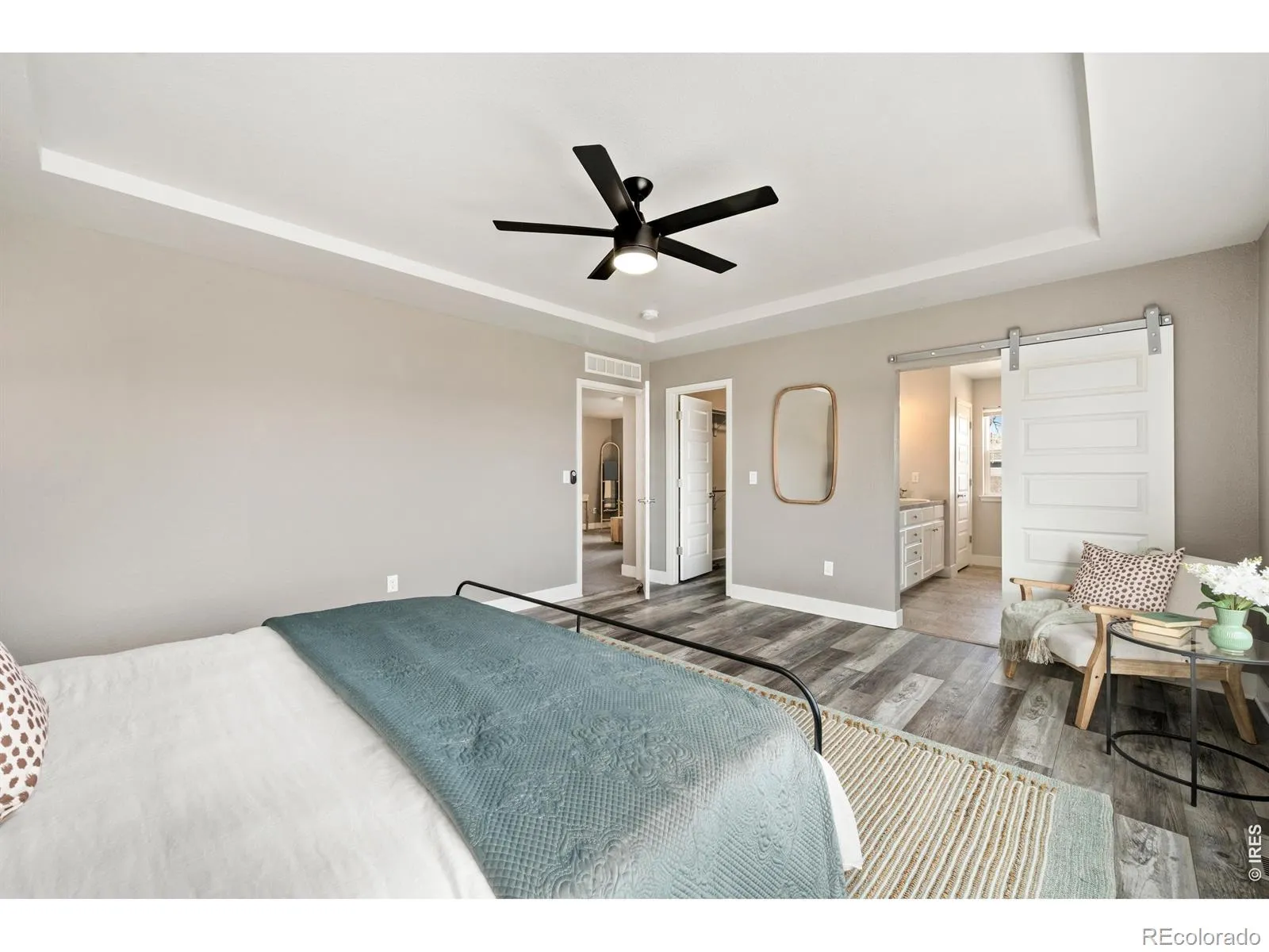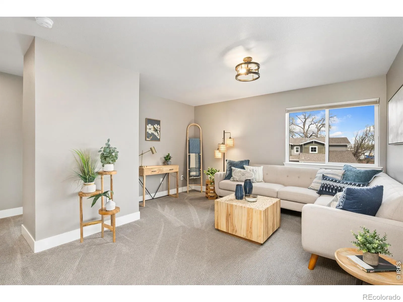 NO Metro District! This gorgeous 3 bedroom home in Timbervine shows like it is brand new – perfectly clean and amazingly maintained. Beautiful pre-finished hardwood floors flow throughout the entire main level. The front room off the entry works great for a sitting area or a home office. A spacious foyer gives you a grand entryway without sacrificing space elsewhere. The living room is open to the kitchen and dining area with large windows onto the covered patio. Kitchen has a gas range and oven with convection option, a built-in microwave, a vented range hood, and an enormous walk-in pantry. Well-designed built-ins are just inside the garage entry. Upstairs is a generous loft, as well as the conveniently located laundry room. The enormous primary bedroom has luxury vinyl planking and a large walk-in closet. The en-suite bathroom has dual sinks and a walk-in shower. Two additional bedrooms and their shared bathroom complete the upper level. An oversized garage has an access door to the backyard, making lawn/yard maintenance easy. This corner lot provides lots of space, but also privacy with the covered patio and well-placed trees and shrubs. Many of the trees are flowering and gorgeous in the spring and throughout the summer. Backing to the greenbelt/path allows off-street strolls through the neighborhood. An owned 4.68kW solar array provides plenty of electricity, allowing the current sellers to enjoy very low utility bills. Between solar, the low HOA, and the absence of a metro district, home ownership here is much less than other neighborhoods. Plus, this quiet area of town provides easy access to both I-25 and Old Town. CSU is also only about 10 minutes away.