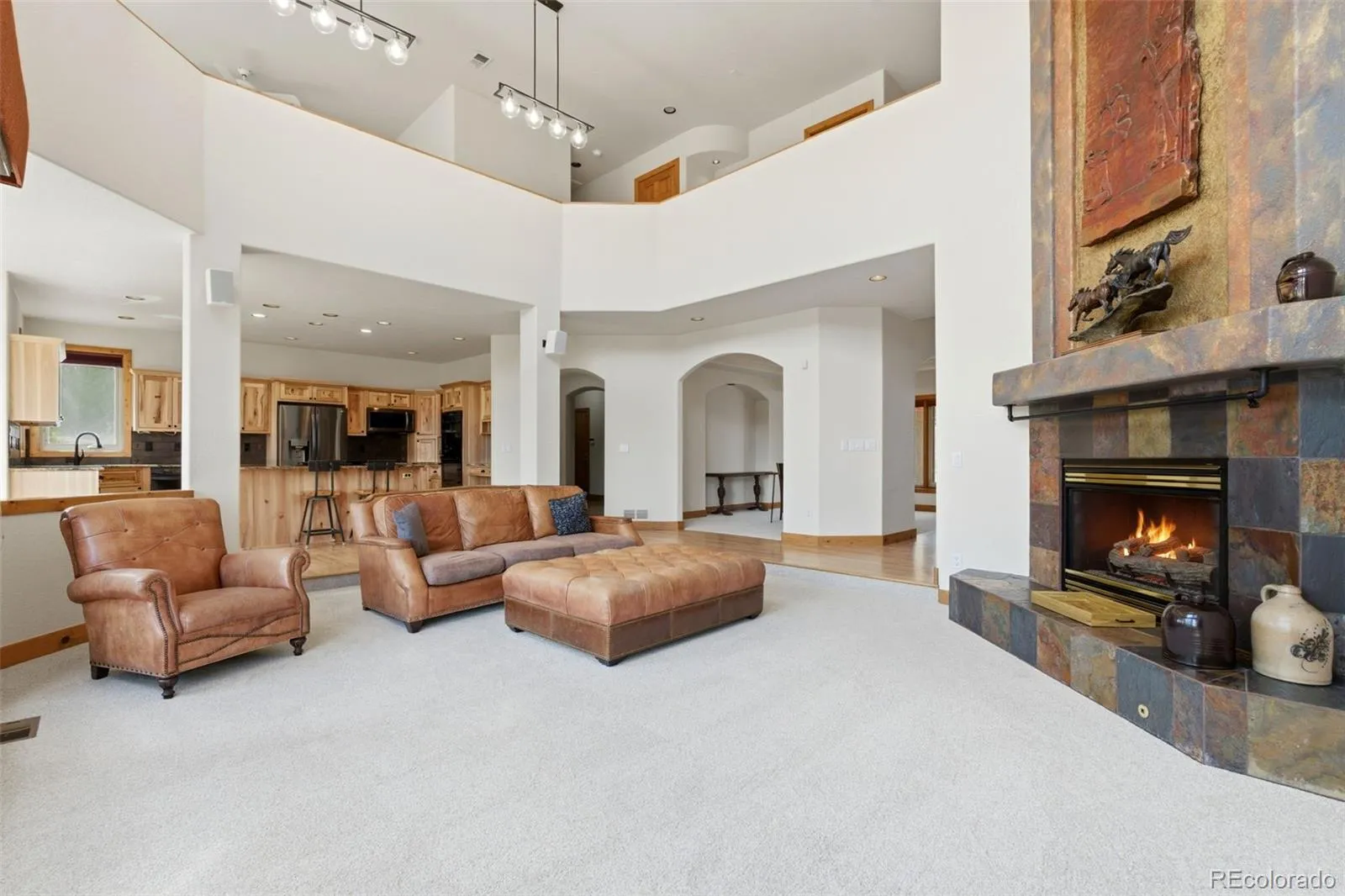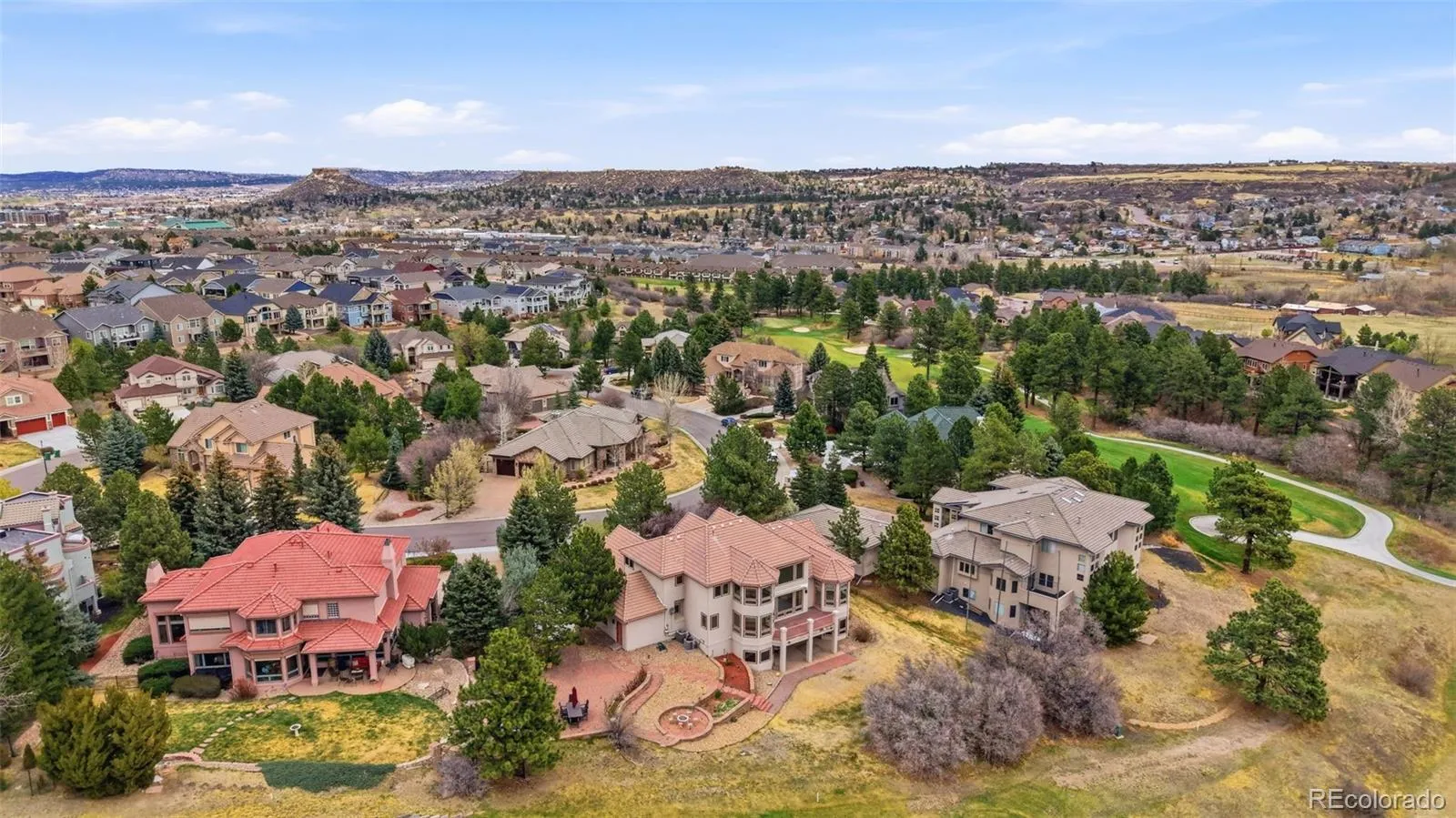 Discover this stunning 6,275 sq. ft. custom Summit Chalet home nestled on a peaceful cul-de-sac on Parade of Homes Street. Sitting on a 16,596 sq. ft. lot, this exceptional property backs to the 12th hole of Plum Creek Golf Course and open space — delivering gorgeous views, total privacy, and spectacular sunsets from your upgraded Trex deck (2010). Lush mature trees and professional landscaping create a park-like atmosphere, while a fully replaced circular driveway (2022) adds striking curb appeal from the moment you arrive. Step inside to find a grand foyer, formal dining room, and a private office with custom built-ins. The gourmet kitchen features stainless steel appliances, granite countertops, and custom cabinetry flowing into a sunny breakfast nook overlooking the golf course. Soaring ceilings, a warm fireplace, and an open-concept layout make the living room perfect for entertaining or relaxing. The main level also includes a spacious primary suite, large laundry room, and half bath. Brand new carpet, fully updated bathrooms, and fresh paint throughout make this home truly move-in ready. Upstairs offers two additional bedrooms plus a big loft-bedroom with Jack & Jill access and an extra closet. The finished walkout basement includes a bedroom, two full baths, a generous family room, and a pool table — included with the sale! Champion Windows (2008) come with a transferable 1-year warranty — a valuable bonus in golf course living. Just a 30-minute walk to downtown Castle Rock’s shops and dining, 7 minutes to the Miller Activity Complex, and easy I-25 access. Luxury, comfort, and convenience — all in one remarkable home. Pictures Coming On 04/08