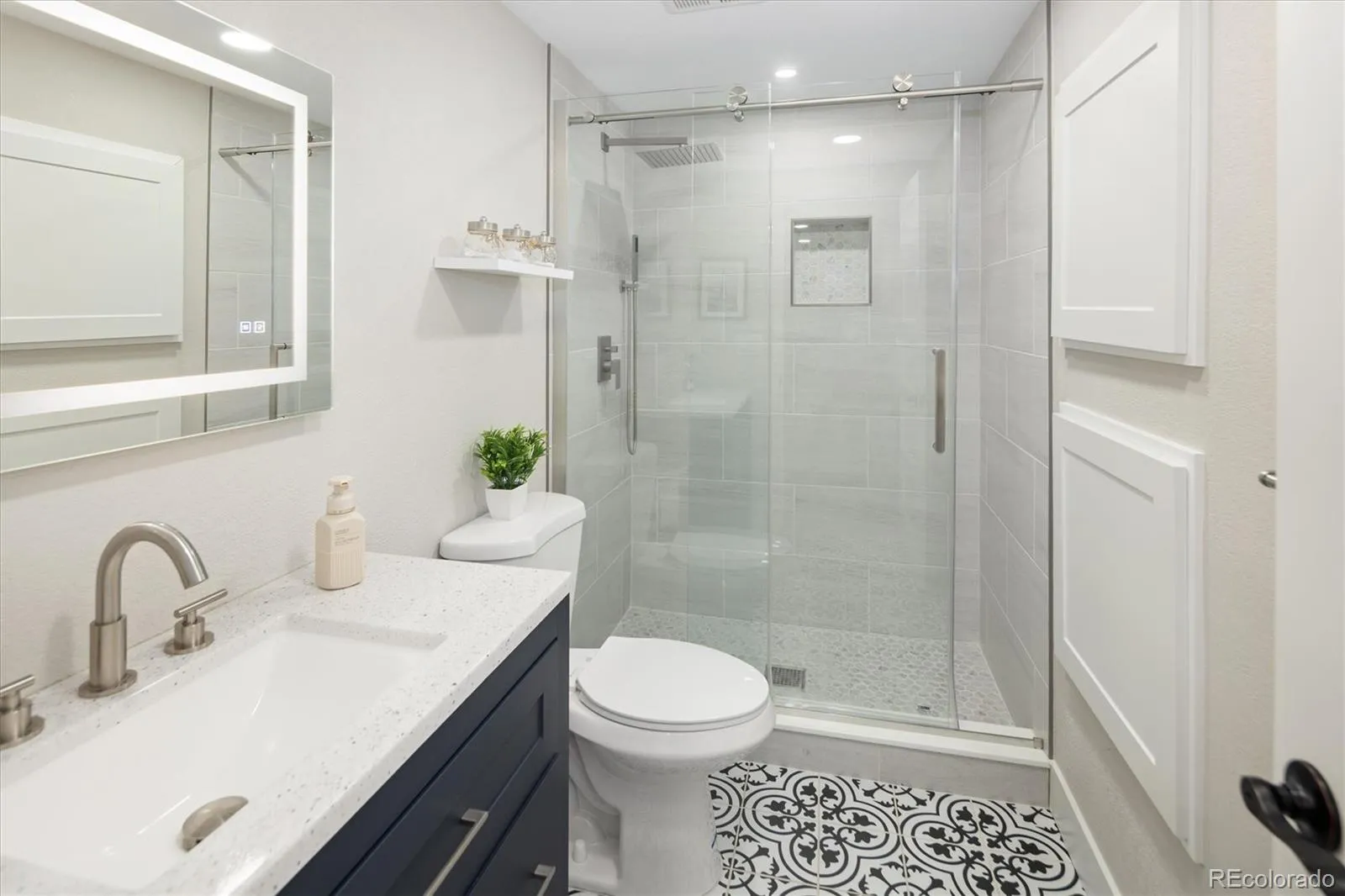 Ideally located in Southeast Denver, this extensively remodeled home offers the perfect blend of modern upgrades, thoughtful design, and unbeatable convenience. Feeding into the highly sought-after Southmoor Elementary neighborhood, this property stands out for buyers looking to combine lifestyle, location, and long-term value. Remodeled in 2024, the home has been completely refreshed with high-quality finishes throughout. Upgrades include new recessed lighting, updated electrical, fresh texture and paint, new baseboards, and new flooring across the entire home. Plantation shutters add a timeless, elevated touch. The main living area features a newly installed fireplace and built-in speaker system, creating a warm and inviting space, while the secondary living area showcases a refreshed fireplace. The layout flows seamlessly for both everyday living and entertaining. The primary suite has been thoughtfully upgraded with wood flooring, a custom built-in closet system, and a spa-like bathroom complete with heated floors, an illuminated mirror, built-in speakers, a new toilet, and a newly added enclosed toilet room. Guest bedrooms also feature wood flooring and custom closet systems. Bathrooms throughout the home have been updated with new vanities, illuminated mirrors, and modern fixtures. The newly finished basement expands the living space with new flooring, a dedicated laundry room, a full bathroom, and an added closet, ideal for guests or a home office. Additional highlights include an upgraded garage with new concrete flooring, fresh paint, built-in shelving, LED lighting, and extra outlets. Smart home features such as a Nest system and Vivint security provide added comfort and peace of mind. With its prime Southeast Denver location and extensive updates, this home is truly move-in ready.