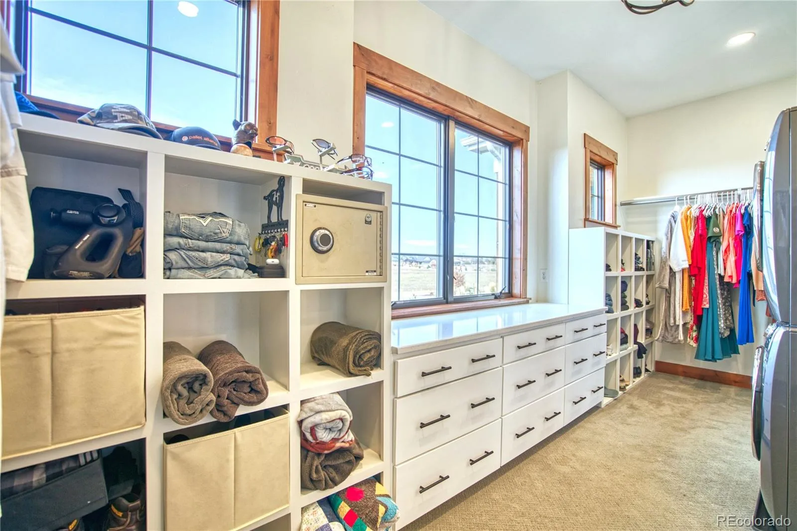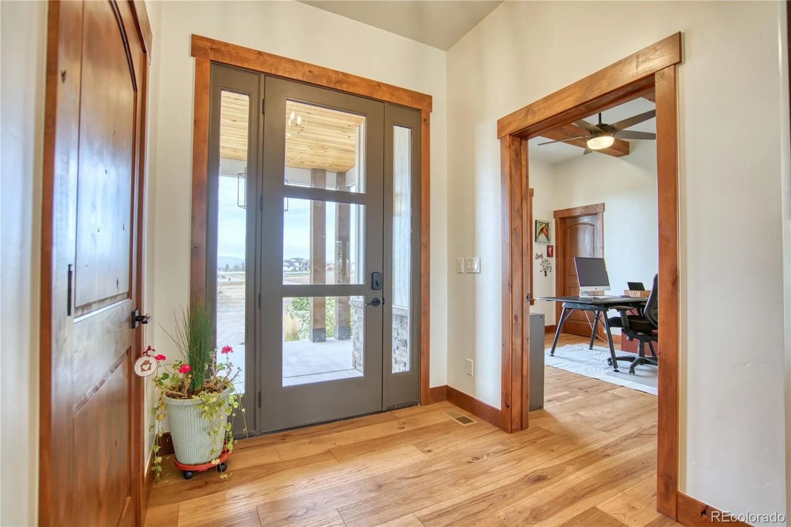 Enjoy the perfect blend of comfort and scenery at this beautiful home with unobstructed mountain views. Built in 2023, this exceptional custom home offers over 5,900 total square feet, including 4,871 square feet of beautifully finished living space. Complementing the main home is a versatile 40’x80′ (3,200 SF) outbuilding that includes a 1,000-square-foot accessory dwelling unit (ADU) and a 2,200-square-foot heated shop.The open-concept design of the main home, features four bedrooms, three bathrooms, and an oversized, fully finished three-car garage. The primary suite opens to the patio and includes a spa-inspired bath with in-floor heating and a custom walk-in closet with built-ins and laundry. The gourmet kitchen showcases Thermador appliances, a pot filler, sizable pantry, custom wine storage, and a large island perfect for entertaining. Additional highlights include an office with mountain views, two bedrooms with a Jack-and-Jill bath, and a second laundry with half bath. Above the garage, a finished 600-square-foot bonus room with a mini-split is ideal for a gym, guest suite, or media room. The 60% finished basement offers a wet bar and a160-square-foot vault. The adjoining shop features two 14-foot doors, in-floor heating, upgraded insulation, a high-efficiency furnace, half bath, and UV lighting for cleaner air. Built in 2021, the ADU features a full kitchen, living and dining areas, one bedroom, one bath, laundry, in-floor heating, and high-efficiency A/C. A fenced patio offers outdoor privacy, while the upper level provides an additional 1,000 square feet and a flexible room perfect for an office or studio. Set on 2.96 acres, the property offers a fenced yard, open pasture, raised garden beds, multi-zone sprinkler and drip systems, and over 100 trees and nearby detention pond protects your stunning Front Range views. Outdoor living shines on the covered patio with an outdoor kitchen, fireplace, and hookups for TV, speakers, and a future firepit.