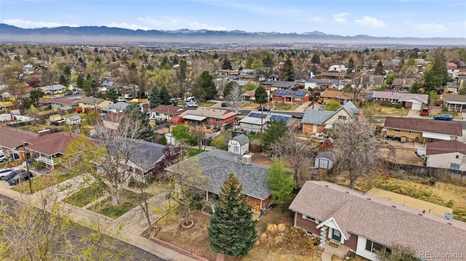 Nice ranch style, brick home built in 1959 with 5 bedrooms, 2 bathrooms and a partially finished walkout basement. This home features 2,400 square feet and a large fully fenced backyard with a covered deck. The yard also includes 2 storage sheds and mature trees. North side bedroom has sliding glass door. The kitchen is bright and open with ample cabinet and countertop space along with stainless steel appliances. The owners will be taking the refrigerator on the main level but are including the refrigerator in the basement. This home also offers a swamp cooler for the warmer Colorado days. Check out this older spacious home in a great neighborhood.