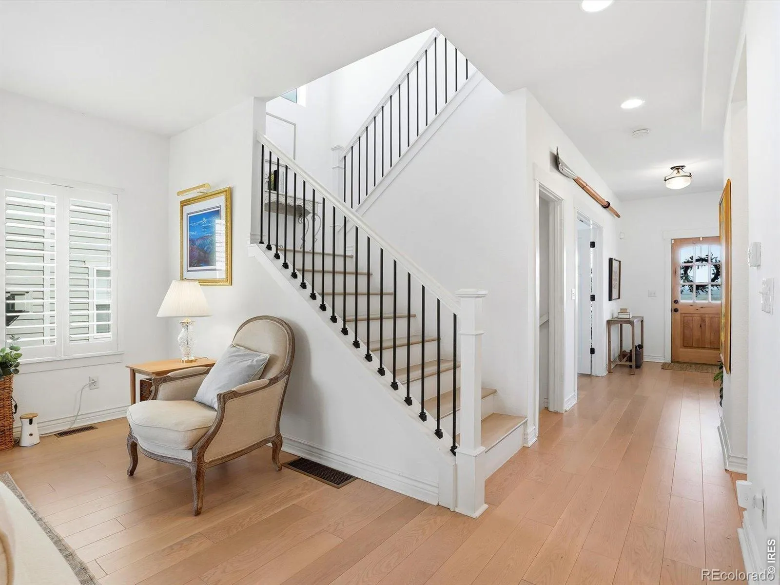 This beautifully updated home feels like a private retreat, adjacent to farmland with stunning mountain views and unforgettable sunsets. Thoughtfully maintained and upgraded throughout, the home offers a perfect blend of comfort, style, and functionality. The main level features a spacious and open layout ideal for both everyday living and entertaining. A large formal dining area flows into a bright, inviting living space, complemented by a well-appointed kitchen with a large island and breakfast nook. French doors lead to the expanded back patio, where the seller has created a private outdoor oasis with a pergola, new fencing, and mature landscaping. Natural light fills the home, highlighting the white oak hardwood floors found throughout the main and upper levels. A generously sized office provides a perfect work-from-home space. Upstairs, the primary suite is conveniently located near the laundry room, along with two additional spacious bedrooms. The finished basement offers a large rec room ideal for movies or recreation, a guest bedroom with a full bath, and abundant storage space. Additional upgrades include new paint, new flooring, updated appliances, a new front door, and a new sprinkler system. The oversized 3-car tandem garage features updated flooring. Ideally located with easy access to Hwy 119 and I-25, and just minutes from shopping, dining, and everyday conveniences. The south-facing front patio is the perfect place to enjoy morning coffee or evening sunsets. A truly exceptional home in a fantastic location.