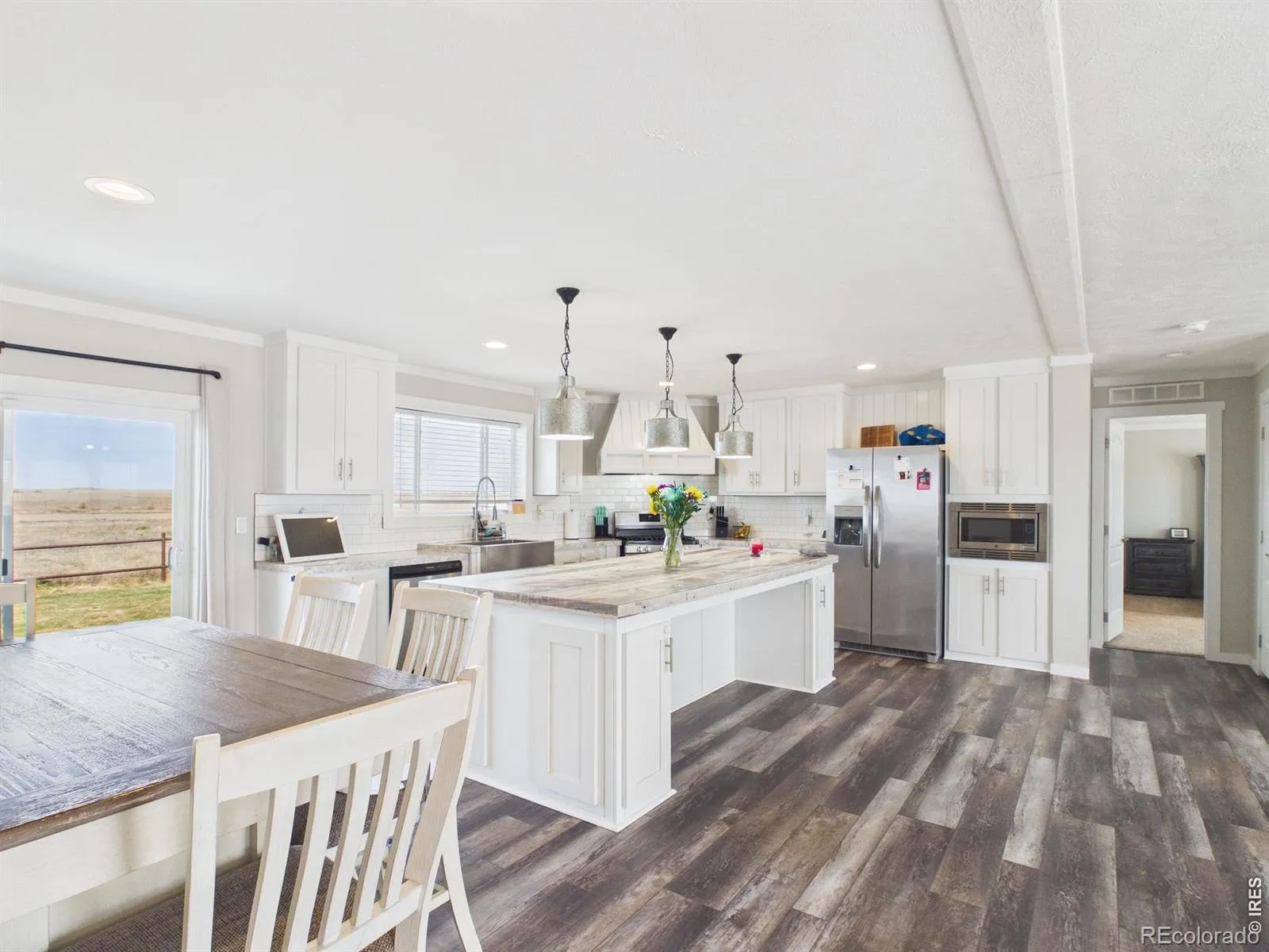 Welcome to this well maintained 4-bed, 2-bath country home on 35.72 acres, perfectly set up for animals and outdoor living. The property features fully fenced metal corrals, a pasture suitable for horses or a few cows, and dedicated corral pens with shelters for goats, sheep, or other small livestock. A sand riding area is already established (unfenced), and the yard is fully fenced with sod! Inside, the open-concept living room, kitchen, and dining area create an inviting space for everyday life and entertaining. The spacious primary suite includes a stunning master bathroom you’ll want to see in person; the second bath is conveniently located near the laundry and back door for easy access. Durable vinyl flooring runs throughout the home for low-maintenance living.A 1,220 sq ft insulated and heated shop provides excellent workspace or storage. Meticulously cared for and thoughtfully upgraded, this property is a rare slice of rural heaven – don’t miss your chance to call it home.