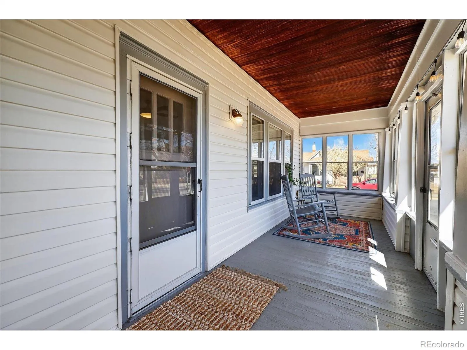 Corner lot charm, sun-filled spaces, and timeless character-updated without losing an ounce of soul. The sun porch welcomes morning light and features an original beadboard ceiling, ideal for slow mornings or summer evenings. Inside, refinished hardwood floors, painted historic trim, and a charming Craftsman front door create warmth and personality throughout. With over 1,130 finished sqft. on the main level, the layout flows effortlessly: three bedrooms (or flex spaces), spacious living and dining areas, and a functional kitchen with granite counters and island seating. The primary bedroom is tucked back for privacy and features a cozy seating area. Thoughtful updates include bedroom carpet, updated lighting and fans, A/C, hardware, and a permitted second bath with classic hex tile. A side mudroom adds everyday convenience, and the basement provides laundry, storage, or flexible space for a gym, hobby room, or more. Outside, a spacious level yard with mature trees, irrigation, a firepit zone with string lights, create a perfect setting for gatherings, a detached two-car garage with 240 – park your RV! Walk to schools, Koshio Park (park renovation coming soon!), nearby to grocery, and the remodeled Fort Lupton Recreation Center!