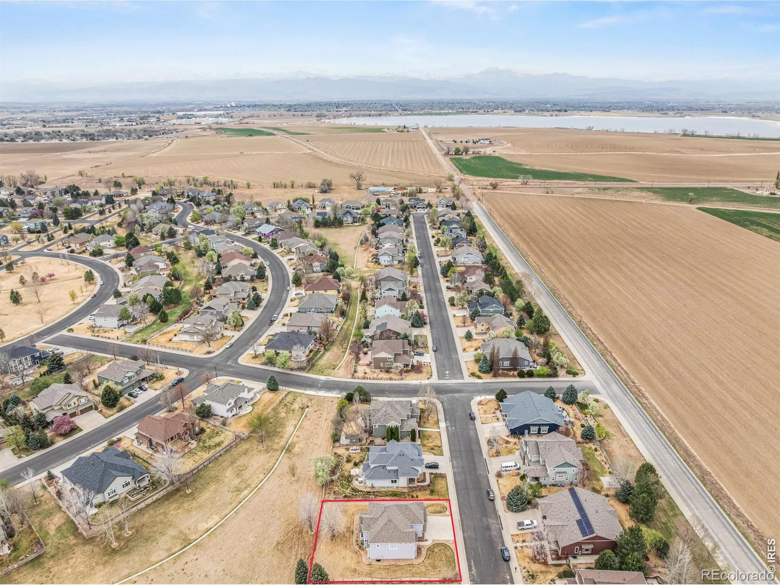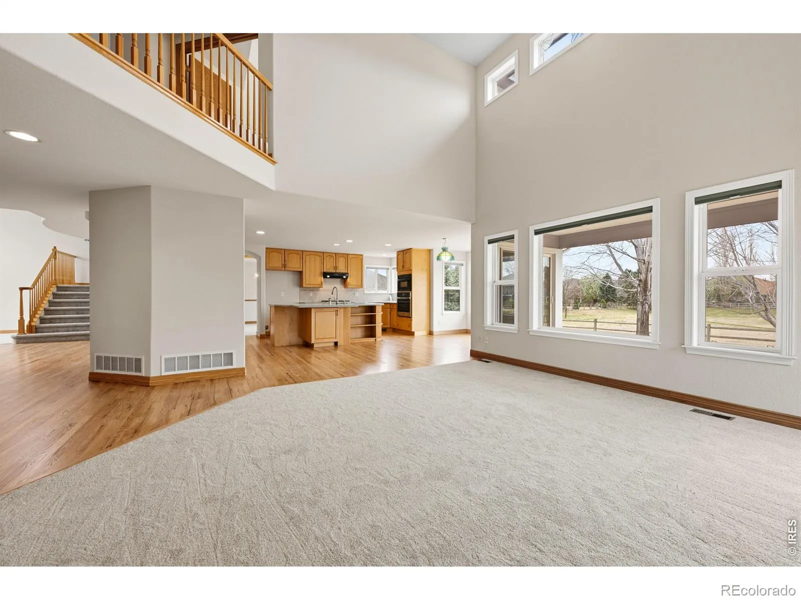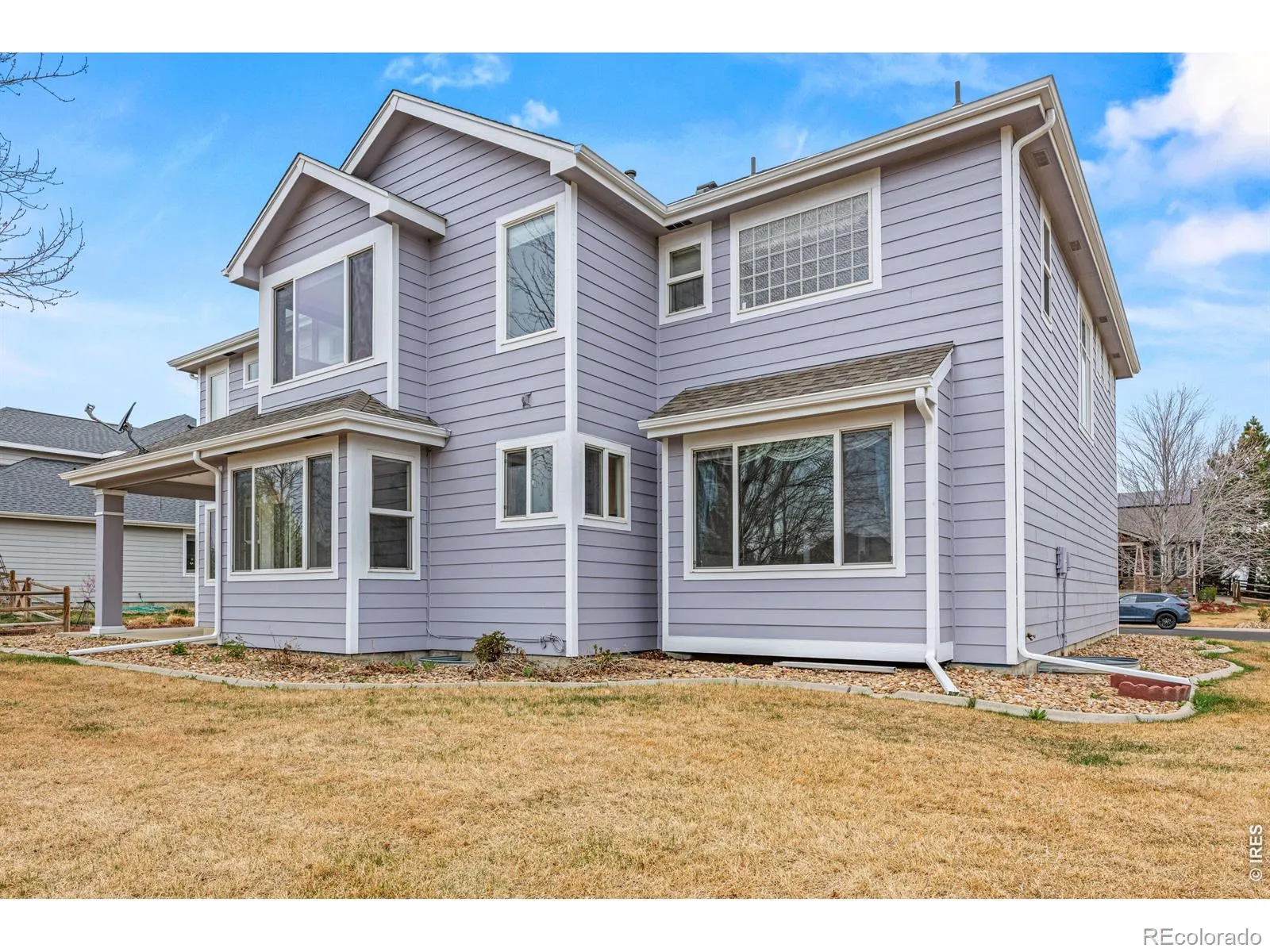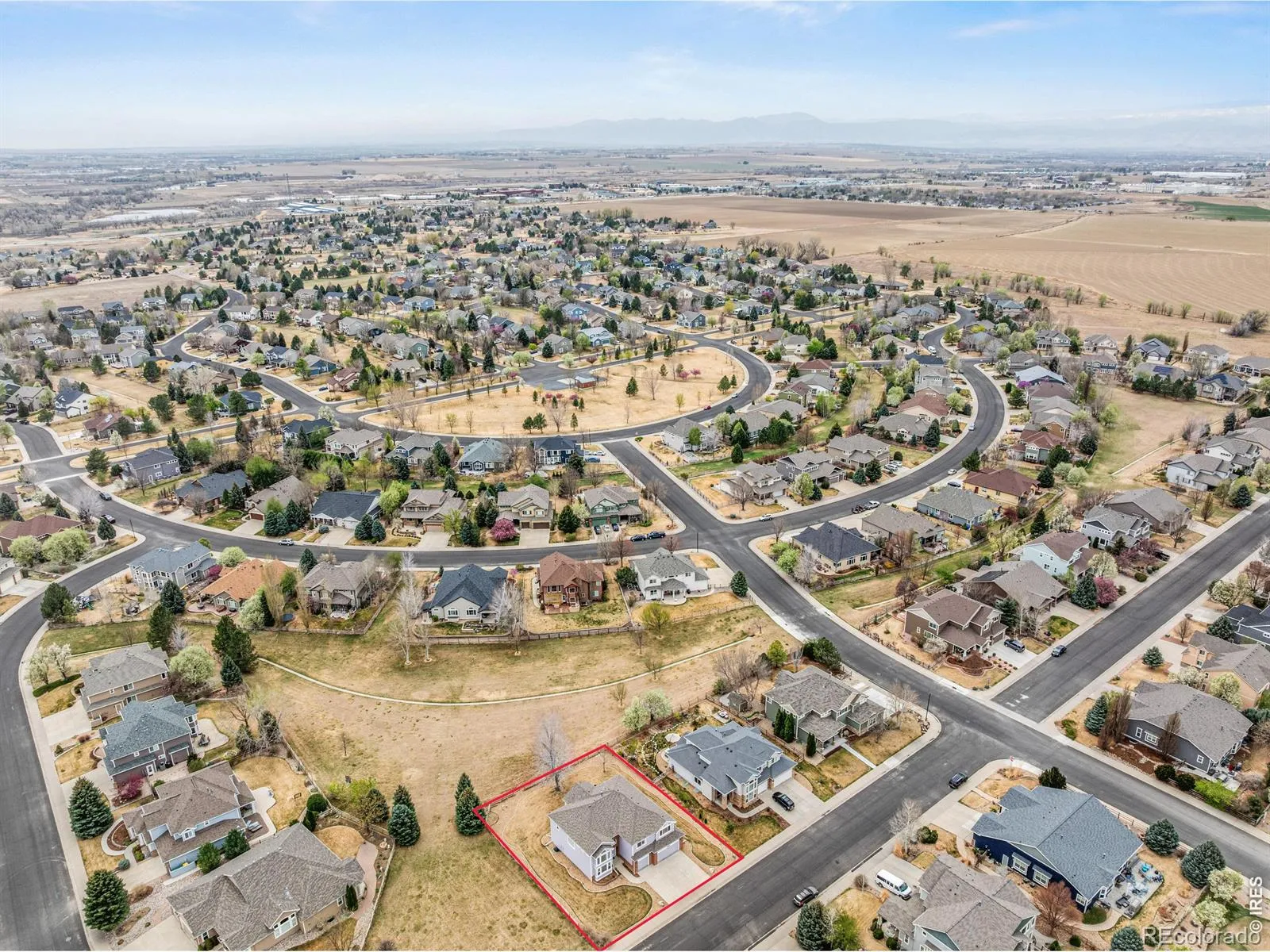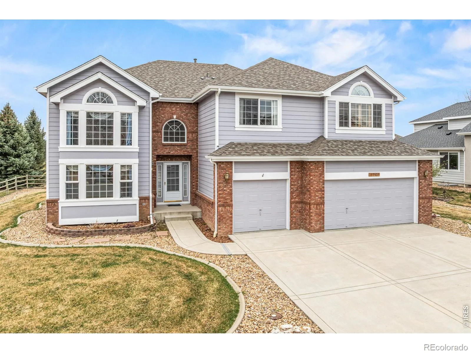 Nestled in the highly desirable, retreat-like community of The Elms at Meadow Vale, this beautifully maintained home is sure to impress. Lovingly cared for, it features newly refinished hardwood floors and brand-new carpet throughout. From the moment you step inside, the front great room welcomes you with soaring ceilings and an open, airy feel. The dining room, living room, kitchen, and breakfast nook all overlook the backyard and the open green space, creating a peaceful connection to the outdoors. A wall of windows and dramatic ceilings in the back living room fill the space with natural light, while the cozy fireplace makes it the perfect place to unwind. The kitchen offers abundant cabinetry, a large island, and a pantry, providing both beauty and functionality. Upstairs, the spacious primary suite features a garden tub and separate shower for a true retreat experience. You’ll also find an additional bedroom with an en-suite bath, plus two more bedrooms connected by a full bath. A charming loft/reading nook completes the upper level and offers the perfect place to end your day.The unfinished basement provides plenty of storage potential and includes a cedar closet for your treasured belongings. Don’t miss the additional highlights such as a main-floor office that can serve as a fifth bedroom, a mudroom/laundry room, and a 3-car garage. Outside, you’ll love the extra-large corner lot that is surrounded with the community space. As an added bonus, oil and mineral rights transfer with the property. Landscape water for the common space and this home’s lawn comes from water rights owned by the HOA. A low annual fee of $180 maintains the system, and the irrigation water is free and does not come from the household taps or water bill.