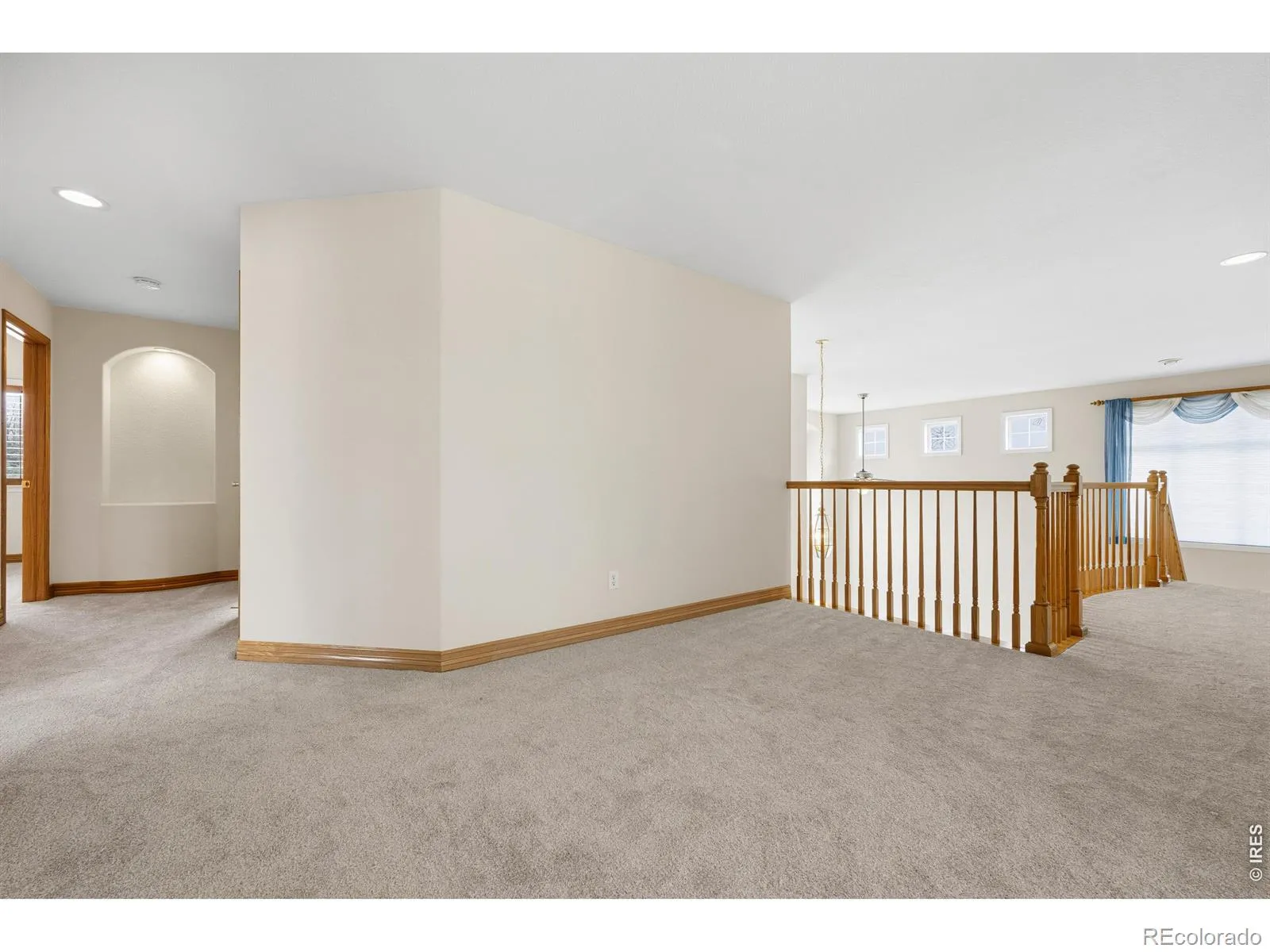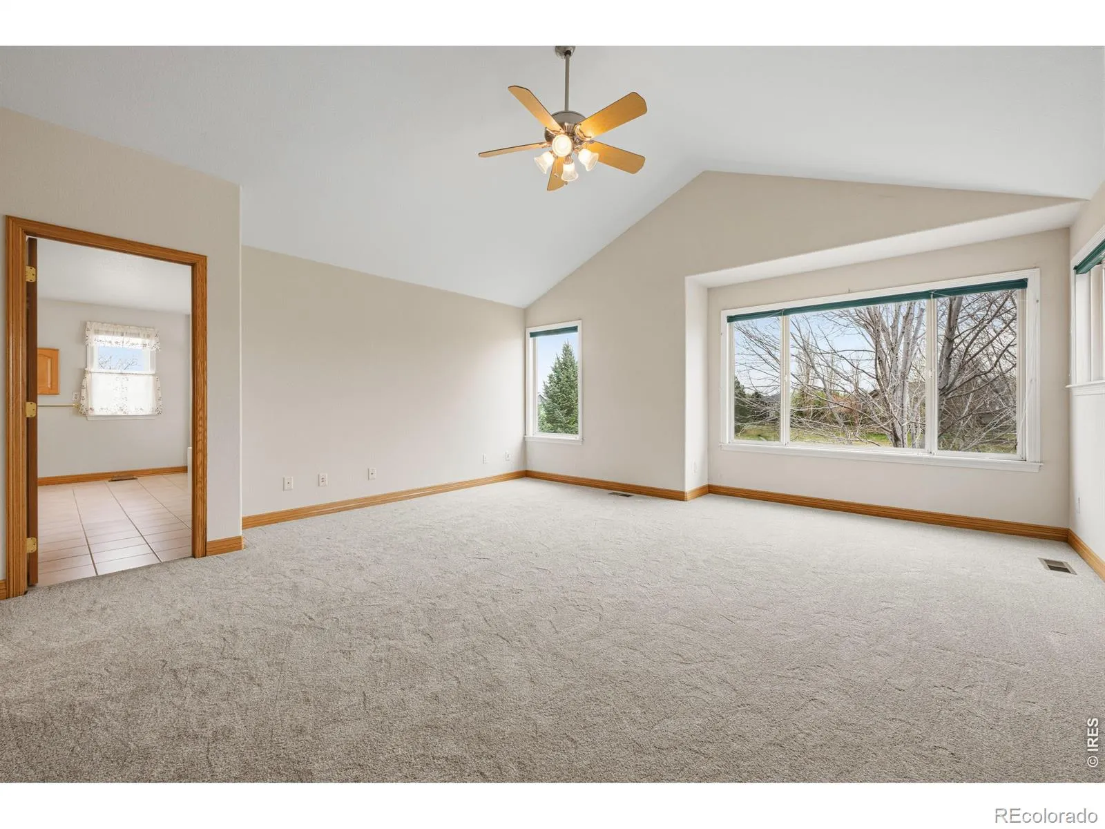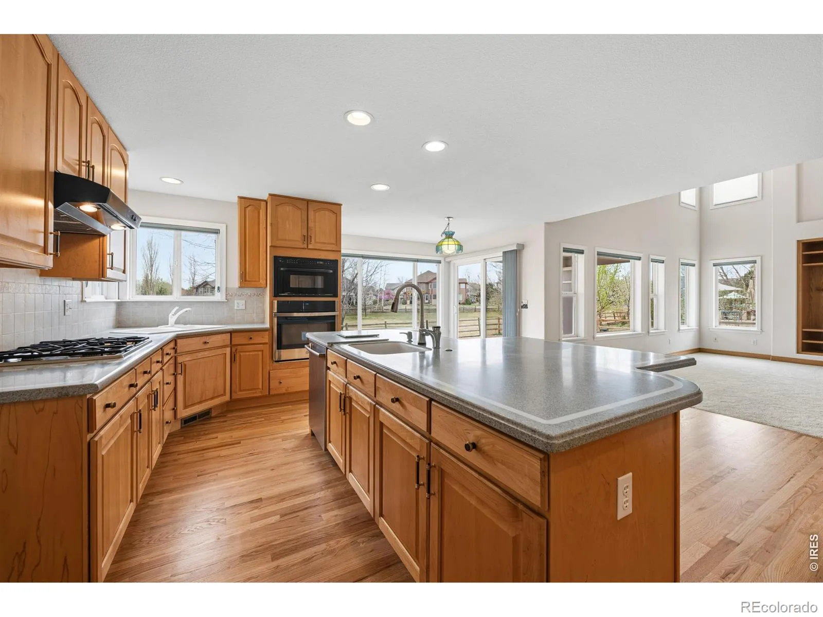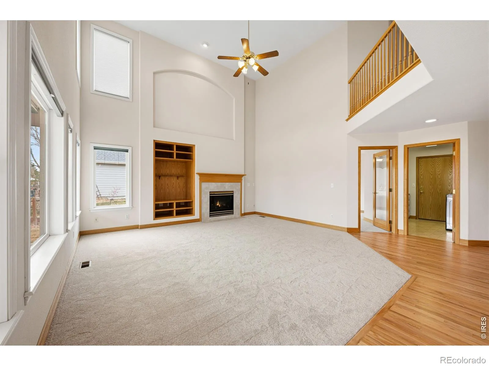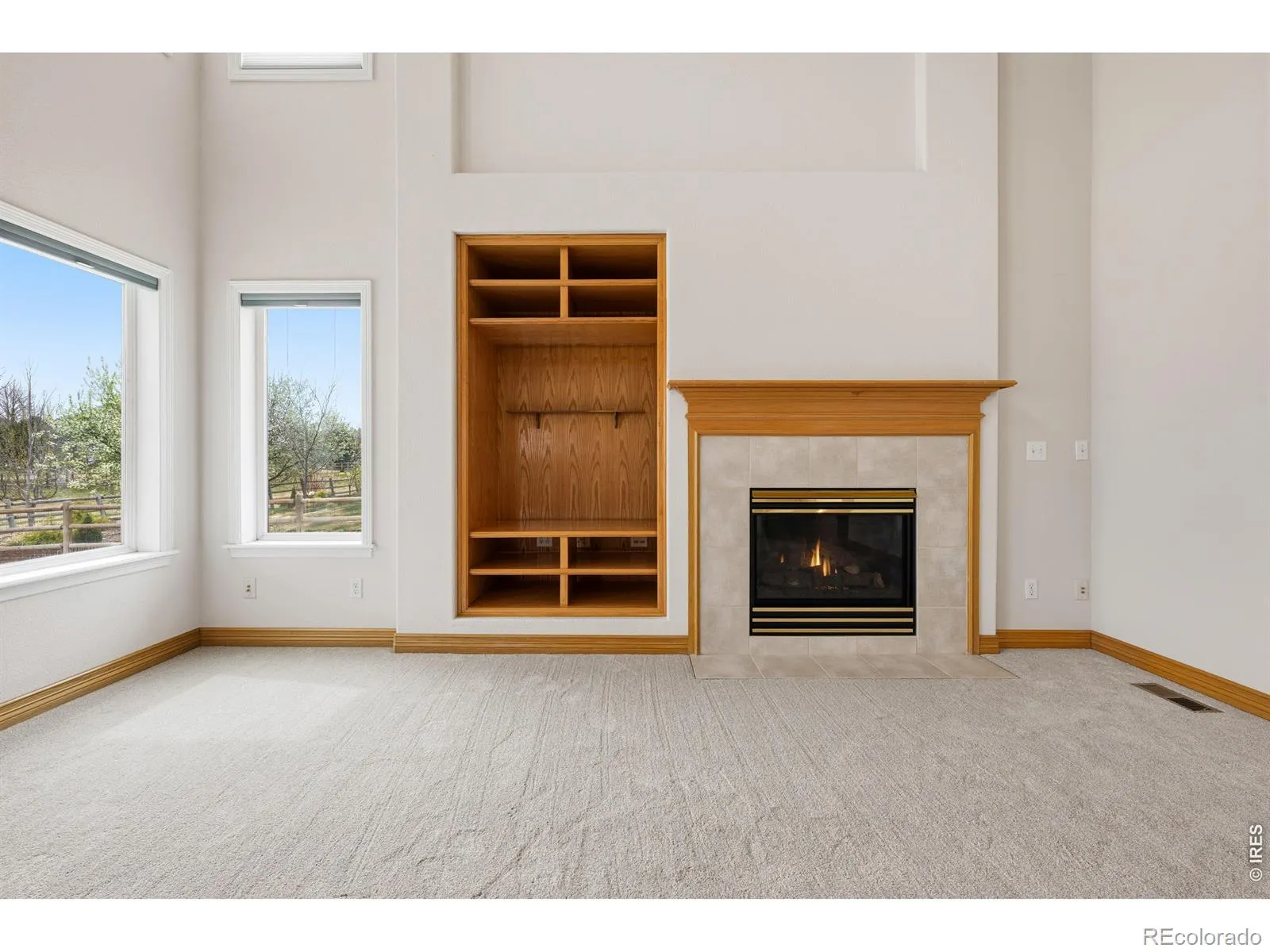 Nestled in the highly desirable, retreat-like community of The Elms at Meadow Vale, this beautifully maintained home is sure to impress. Lovingly cared for, it features newly refinished hardwood floors and brand-new carpet throughout. From the moment you step inside, the front great room welcomes you with soaring ceilings and an open, airy feel. The dining room, living room, kitchen, and breakfast nook all overlook the backyard and the open green space, creating a peaceful connection to the outdoors. A wall of windows and dramatic ceilings in the back living room fill the space with natural light, while the cozy fireplace makes it the perfect place to unwind. The kitchen offers abundant cabinetry, a large island, and a pantry, providing both beauty and functionality. Upstairs, the spacious primary suite features a garden tub and separate shower for a true retreat experience. You’ll also find an additional bedroom with an en-suite bath, plus two more bedrooms connected by a full bath. A charming loft/reading nook completes the upper level and offers the perfect place to end your day.The unfinished basement provides plenty of storage potential and includes a cedar closet for your treasured belongings. Don’t miss the additional highlights such as a main-floor office that can serve as a fifth bedroom, a mudroom/laundry room, and a 3-car garage. Outside, you’ll love the extra-large corner lot that is surrounded with the community space. As an added bonus, oil and mineral rights transfer with the property. Landscape water for the common space and this home’s lawn comes from water rights owned by the HOA. A low annual fee of $180 maintains the system, and the irrigation water is free and does not come from the household taps or water bill.