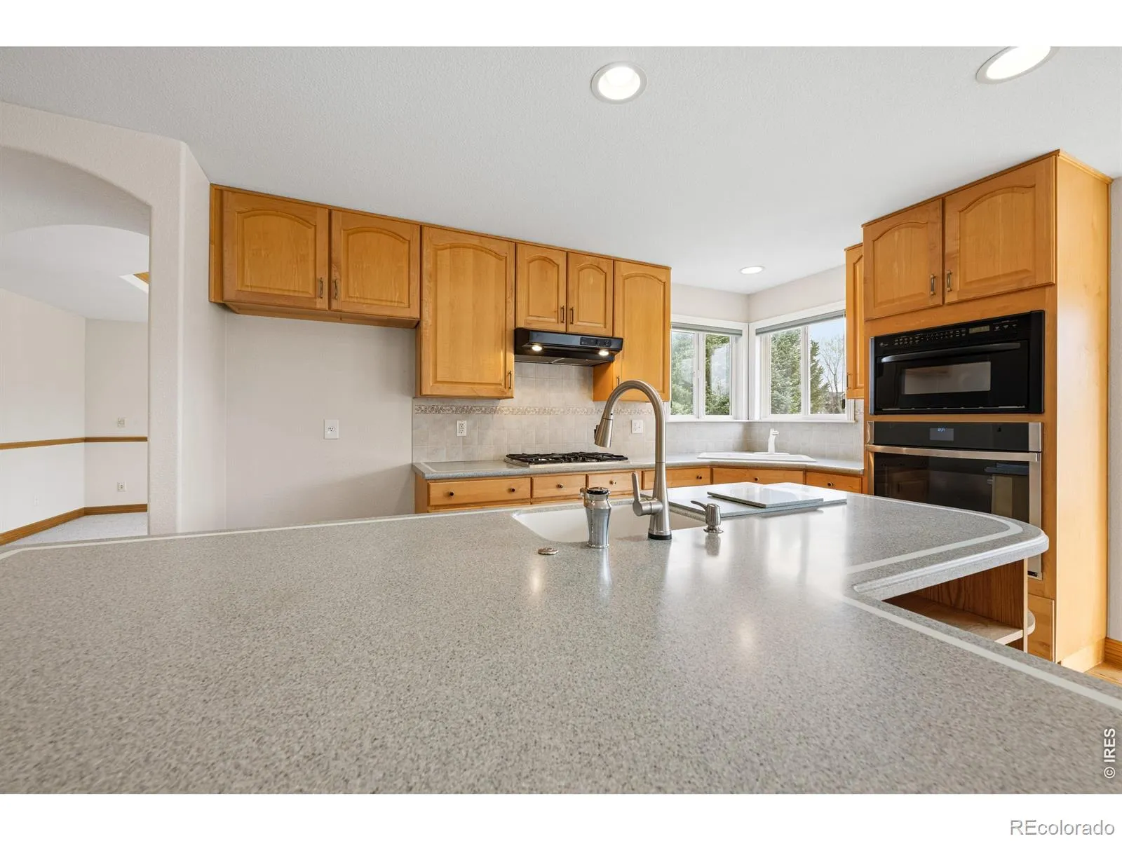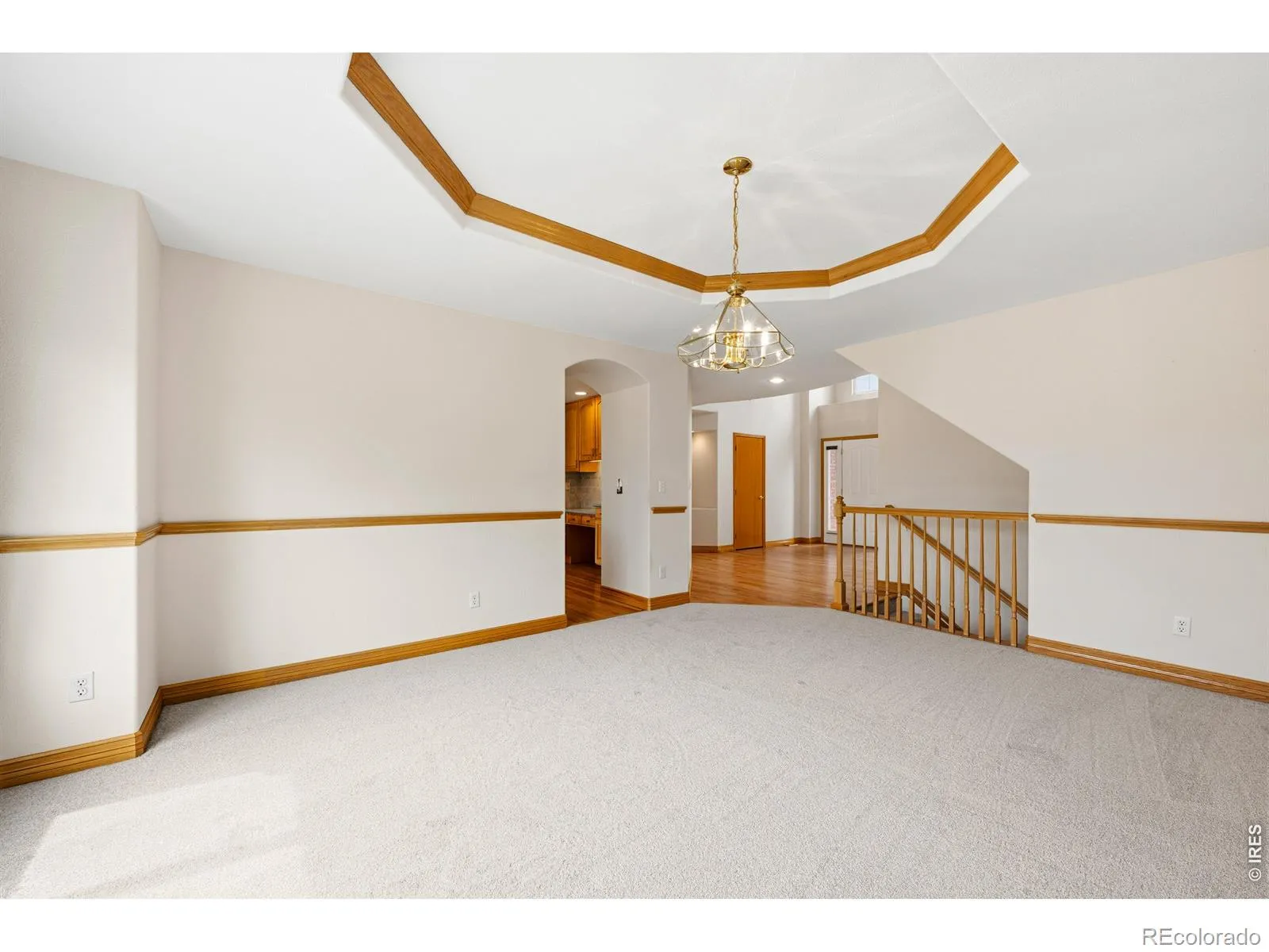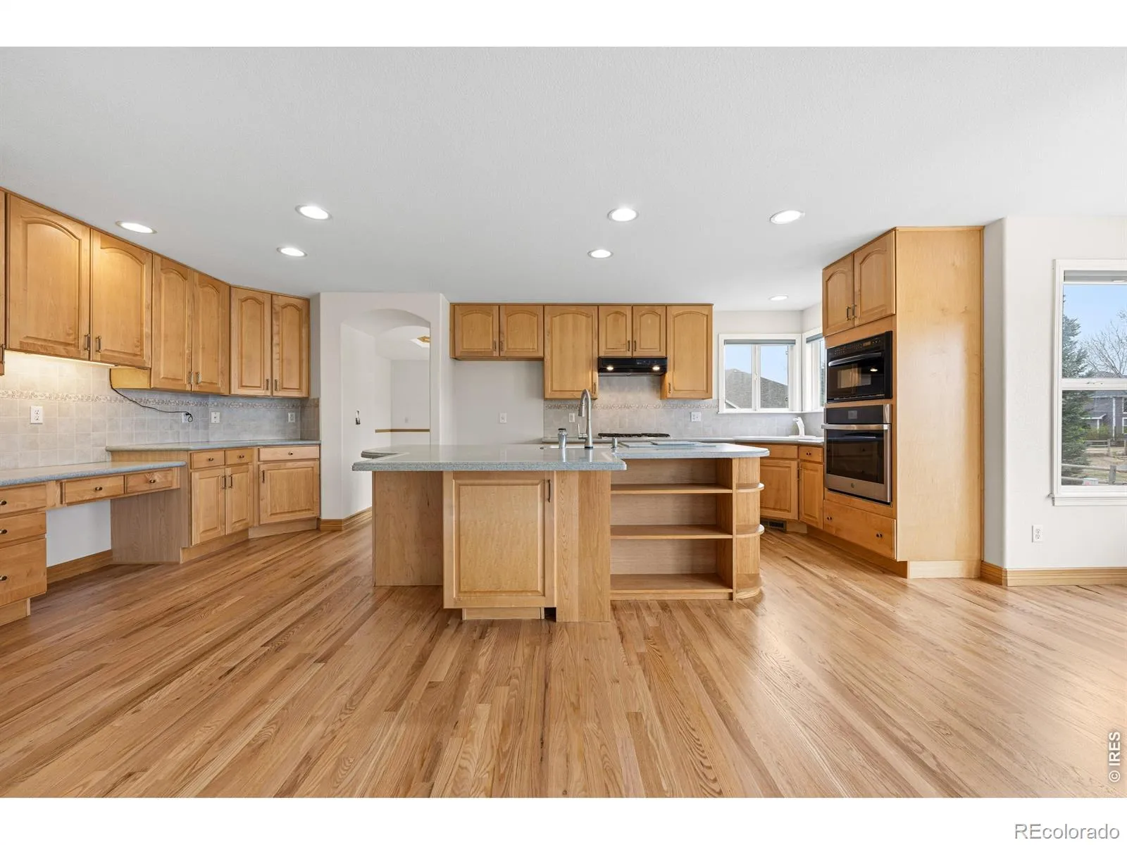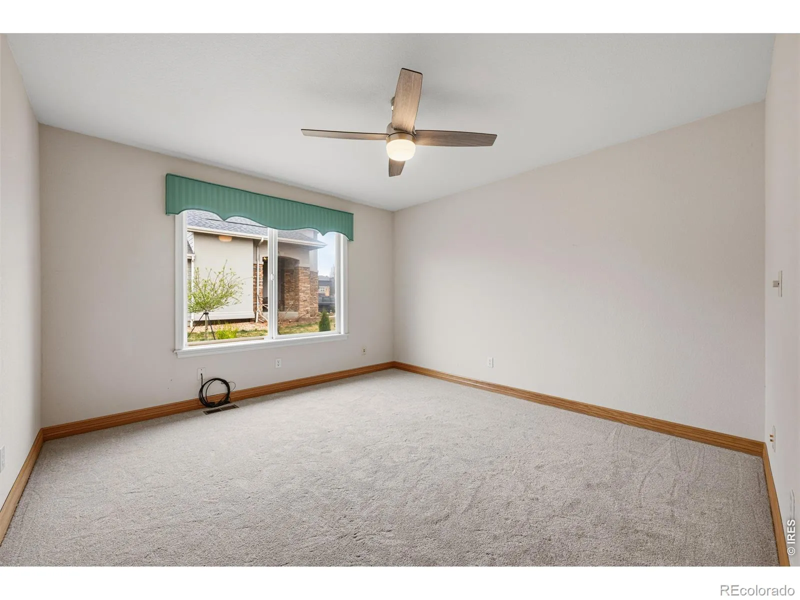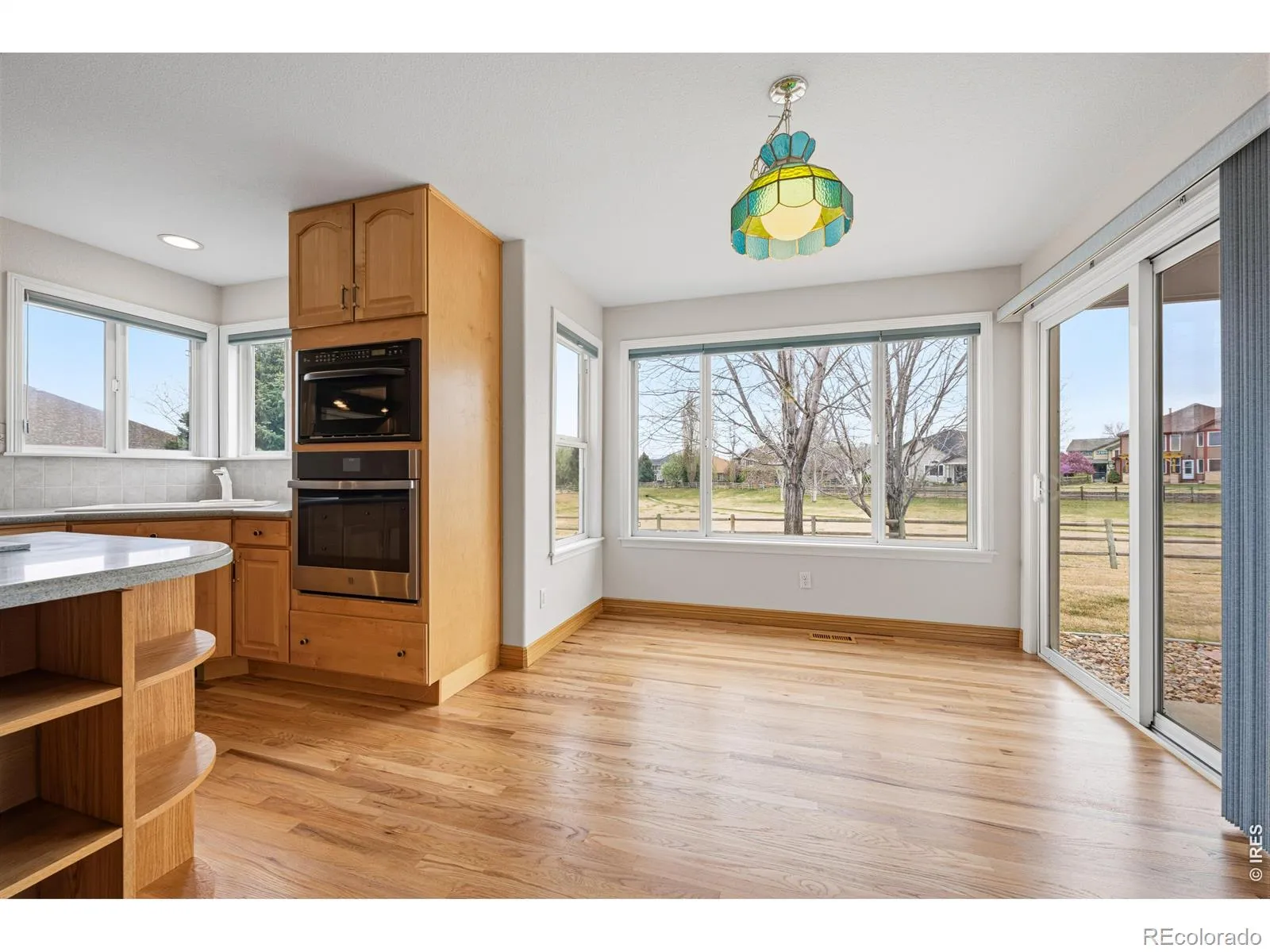 Nestled in the highly desirable, retreat-like community of The Elms at Meadow Vale, this beautifully maintained home is sure to impress. Lovingly cared for, it features newly refinished hardwood floors and brand-new carpet throughout. From the moment you step inside, the front great room welcomes you with soaring ceilings and an open, airy feel. The dining room, living room, kitchen, and breakfast nook all overlook the backyard and the open green space, creating a peaceful connection to the outdoors. A wall of windows and dramatic ceilings in the back living room fill the space with natural light, while the cozy fireplace makes it the perfect place to unwind. The kitchen offers abundant cabinetry, a large island, and a pantry, providing both beauty and functionality. Upstairs, the spacious primary suite features a garden tub and separate shower for a true retreat experience. You’ll also find an additional bedroom with an en-suite bath, plus two more bedrooms connected by a full bath. A charming loft/reading nook completes the upper level and offers the perfect place to end your day.The unfinished basement provides plenty of storage potential and includes a cedar closet for your treasured belongings. Don’t miss the additional highlights such as a main-floor office that can serve as a fifth bedroom, a mudroom/laundry room, and a 3-car garage. Outside, you’ll love the extra-large corner lot that is surrounded with the community space. As an added bonus, oil and mineral rights transfer with the property. Landscape water for the common space and this home’s lawn comes from water rights owned by the HOA. A low annual fee of $180 maintains the system, and the irrigation water is free and does not come from the household taps or water bill.