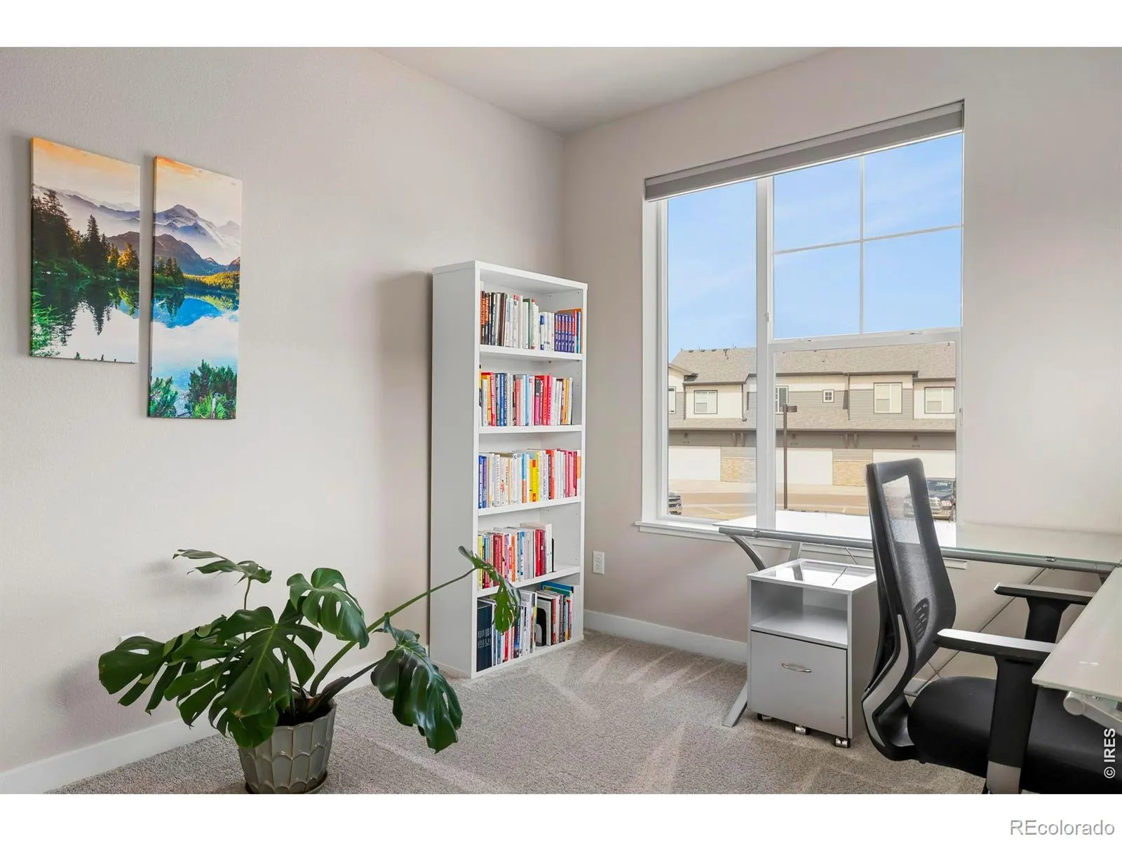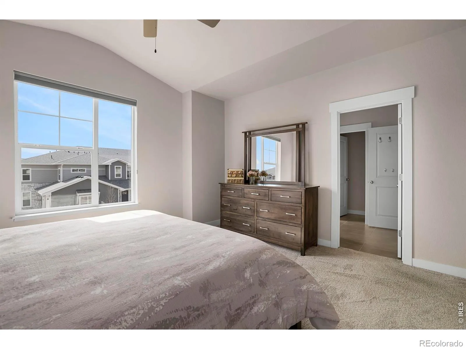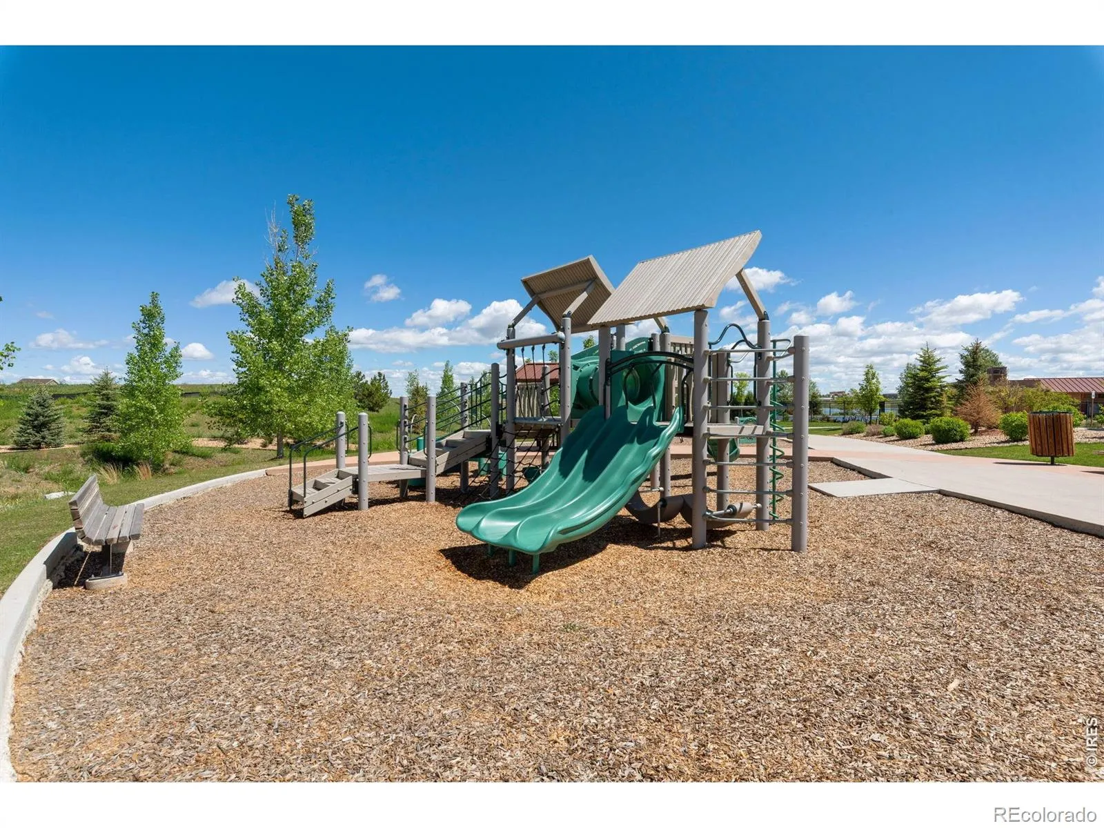 Beautifully appointed end-unit townhome-style condo in an exceptional location within the coveted Lakes at Centerra community. Built in 2021 and lightly lived in, this thoughtfully designed residence features 3 bedrooms, 2.5 bathrooms, and a versatile office nook, complemented by quality craftsmanship and designer finishes throughout. A desirable south-facing orientation and additional end-unit windows fill the home with natural light, enhancing its bright and inviting feel. The interior showcases high ceilings, quartz countertops, solid core doors, and tile flooring in the bathrooms and laundry. The kitchen is thoughtfully finished with a full subway tile backsplash, painted cabinetry, and stainless steel appliances. The spacious primary suite offers a comfortable retreat with a well-appointed ensuite featuring dual sinks, a glass-enclosed shower with built-in seating, a private water closet, and a walk-in closet. Additional highlights include abundant storage with hallway closets and an expansive upstairs laundry room. Enjoy the covered front porch with an enclosed fence-ideal for added privacy and effortless outdoor living. The attached 2-car garage features an 8′ door, providing flexibility for larger vehicles. The HOA supports a low-maintenance lifestyle with lawn care, landscaping, snow removal, and high-speed fiber internet included. Exceptional community amenities, including a clubhouse, pool, community garden, High Plains Environmental Center, playground at Frank Farm Park, and miles of scenic trails surrounding Houts Reservoir and Equalizer Lake.Ideally located just moments from I-25 and Highway 34, offering effortless access to Centerra-home to the best shopping and dining Loveland has to offer-as well as the Medical Center of the Rockies and the new Avenue South Centerra development. Additional features include a high-efficiency furnace, tankless water heater, active radon mitigation system, and included washer and dryer.