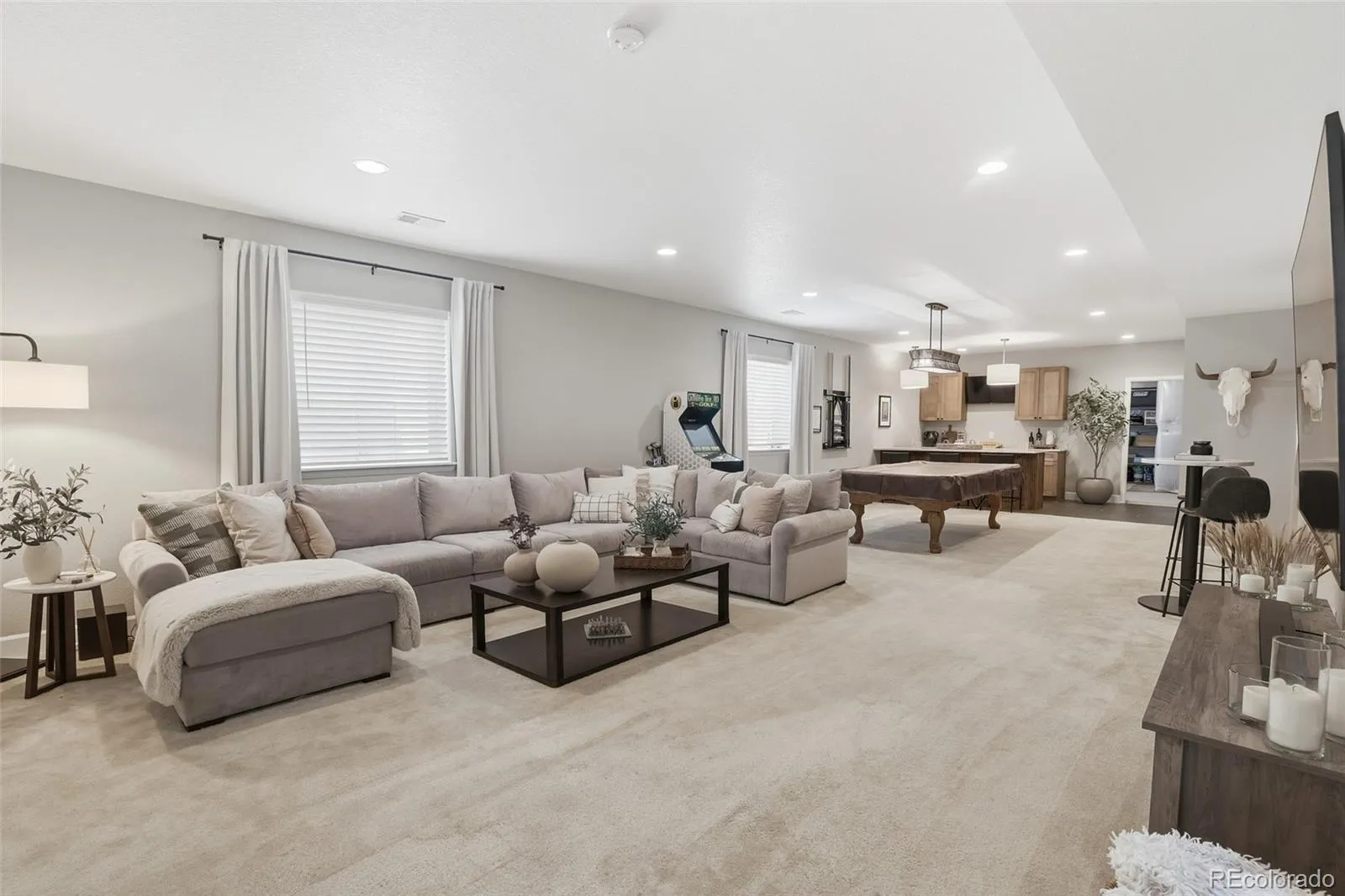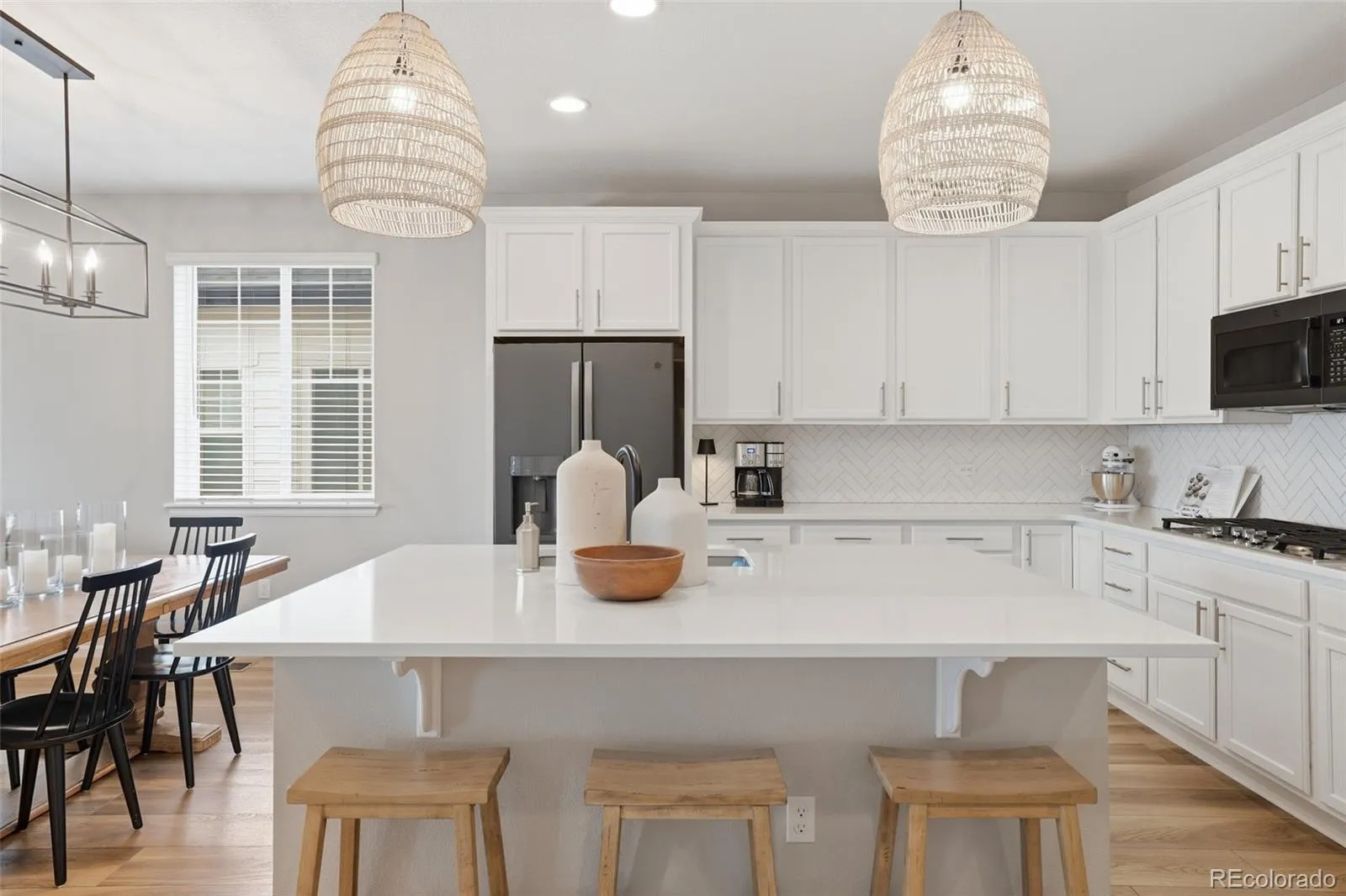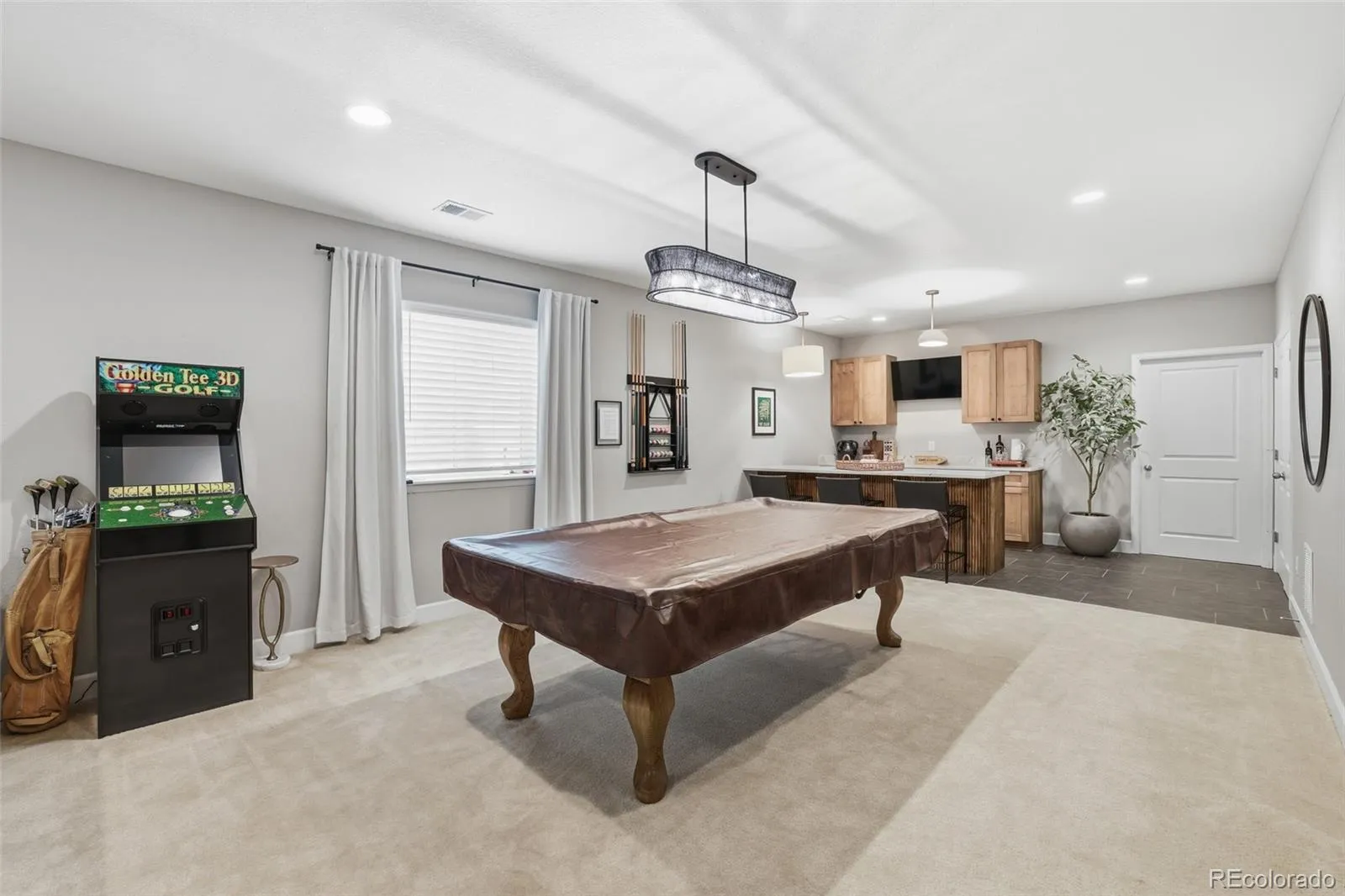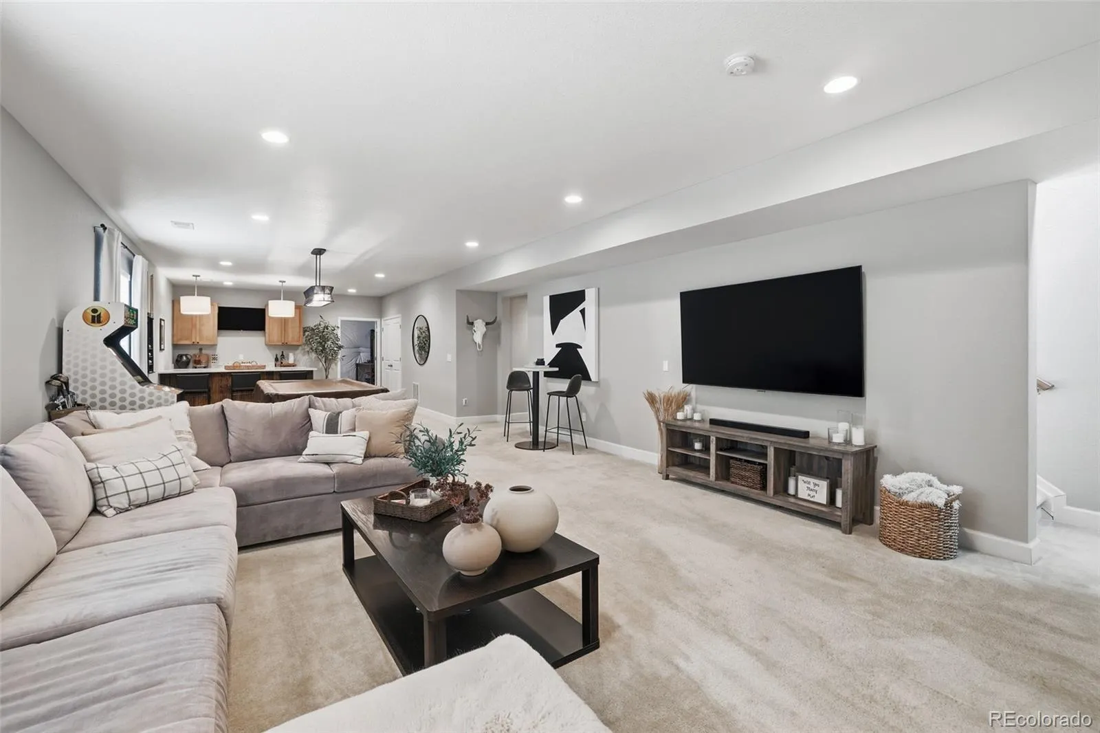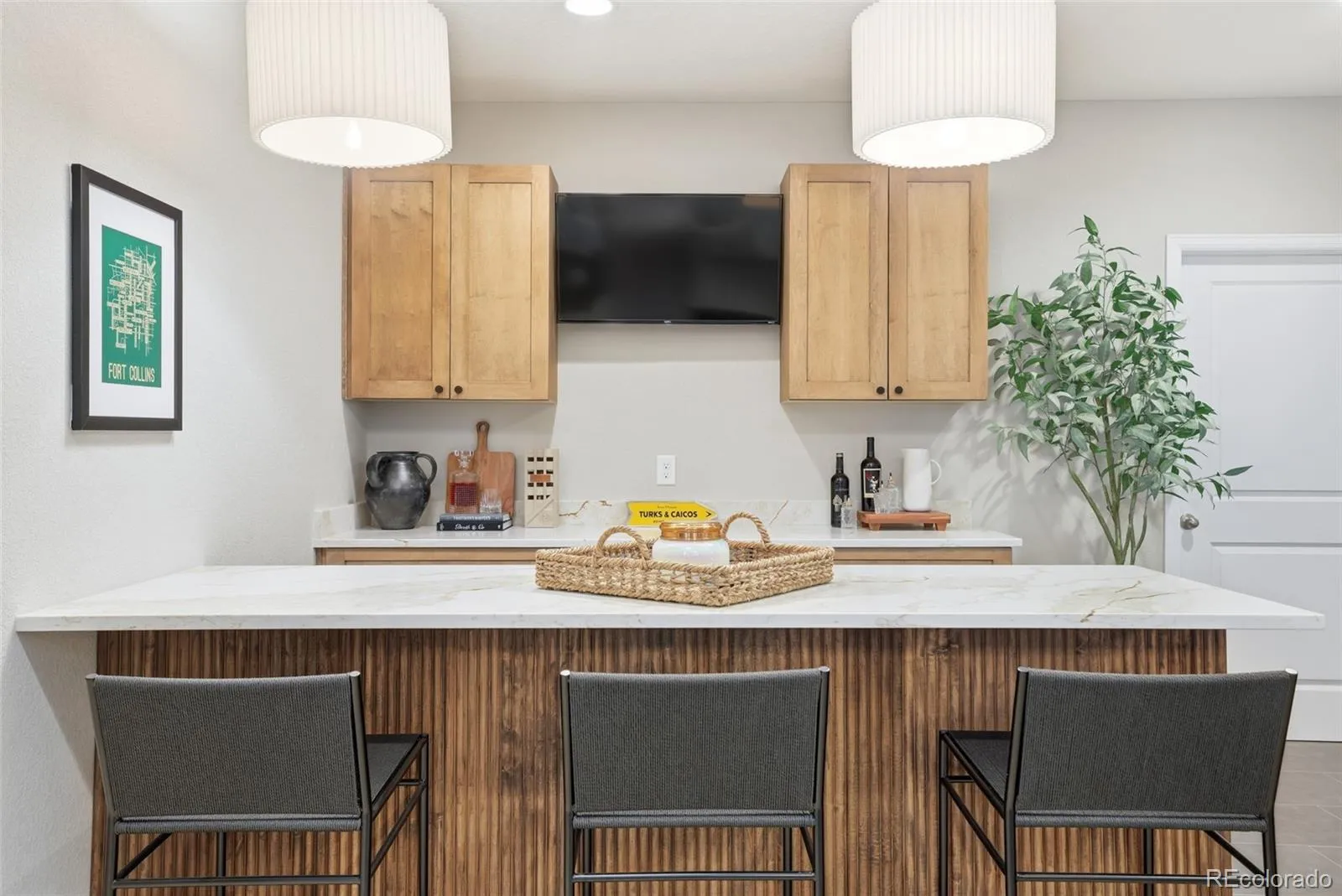 The main level features an open, light filled design that connects the kitchen, dining, and living spaces seamlessly. Downstairs, the finished basement becomes a true extension of the home, anchored by a custom bar with custom cabinetry and striking fluted paneling, creating a space that feels both elevated and inviting.