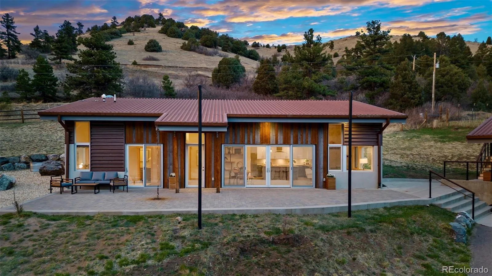 Welcome to 9362 Jennings Rd! Surrounded 360° by mountain views this home is nestled on nearly 9 acres and built with ultimate sustainability and GREEN ENERGY in mind. Designed by Barrett Studio Architects in Boulder, and built in 2018, this property represents a perfect blend of rich craftsmanship, raw and rustic materials, and modern detailing. This is a COLORADO RANCH HOUSE, responsive to the barn and animals, mountains, big sky, intense wind, and rugged dryness…a home for living dreams! Imagine a home that can produce enough renewable energy to meet its own annual energy consumption, and more, giving back to the electrical grid. All this is possible by combination of passive solar design (concrete floors and a heavily glazed south-facing wall), high performance building technology, and renewable energy systems (ERV for heating and cooling). 5.2 kW full south facing ground mount ACTIVE SOLAR system produces enough to eliminate the energy bill completely. Seller’s annual cost towards heating is roughly $200 for bags of wood pellets. Triple pane windows limit heat loss and condensation in the winter, while the low sun floods the space and provides PASSIVE SOLAR heating, absorbed by the concrete floor’s thermal mass. In the summer, the roof overhang shades most of the south-facing glass, while the home’s narrow profile, and ERV renewable energy system provide cross ventilation cooling. Seamless transition from landscape to architecture is complimented by both indoors and outdoor open spaces with views and literal connection to nature. The BARN has equipment and hay storage, shelter for 3 HORSES and a fenced corral, round pen and pasture. The detached garage boasts ample cabinets and storage plus 260 sf finished/heated office or bonus space. Highly resistant to wind, hail, fire, and snow STEEL ROOFING will last generations! Truly one-of-a-kind HOME! VIDEO TOUR: https://www.youtube.com/watch?v=2BXiDTKnc-4