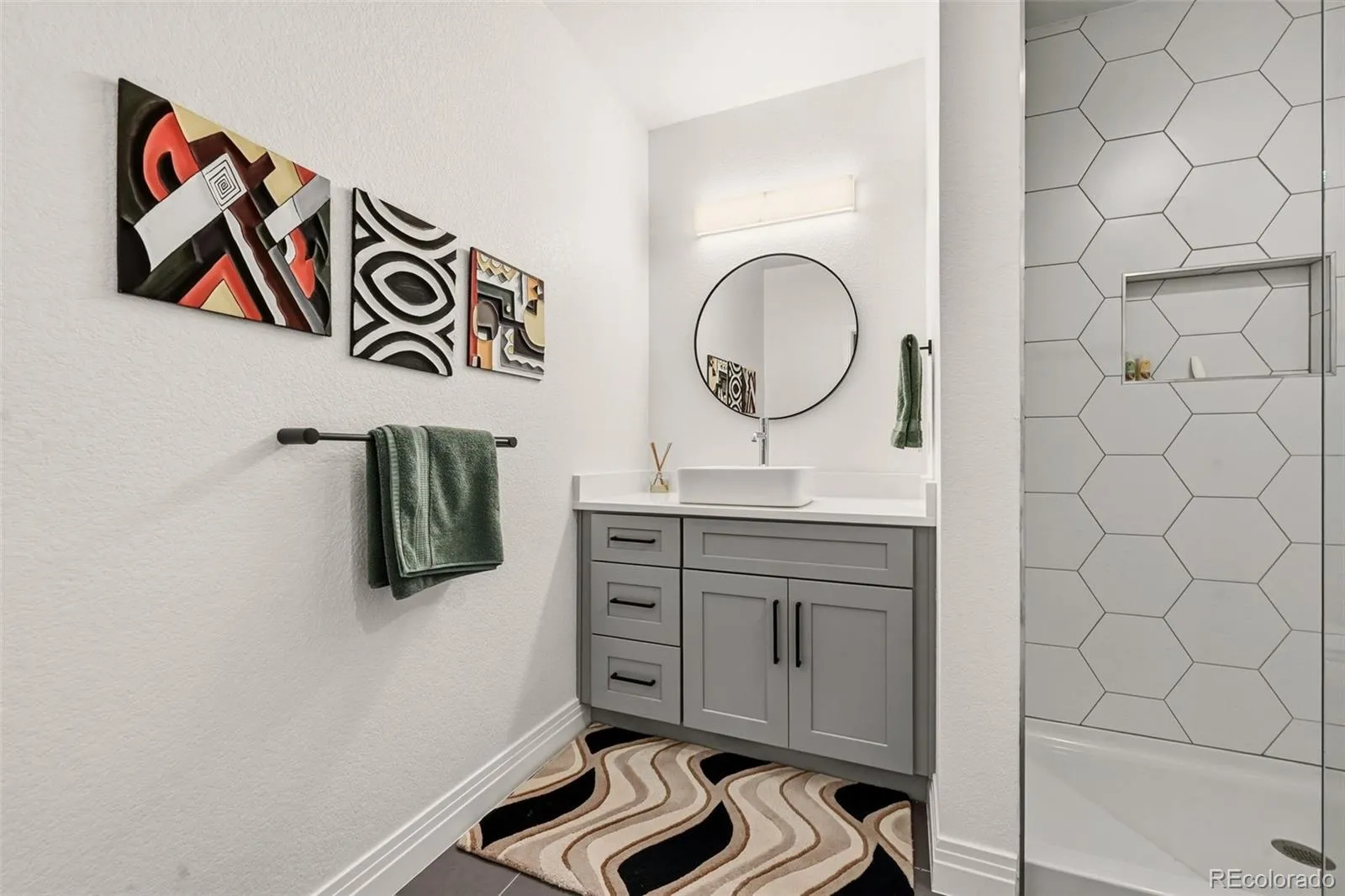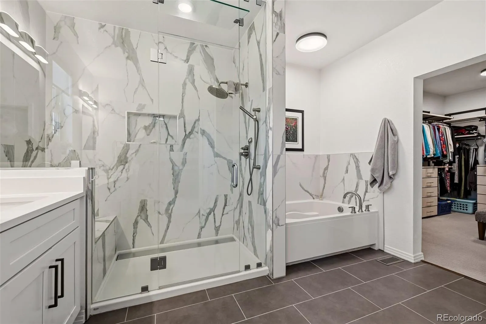 All bathrooms have been thoughtfully remodeled with modern tile, custom vanities, and designer shower doors. Additional highlights include a finished two-car garage with epoxy flooring and EV charging.