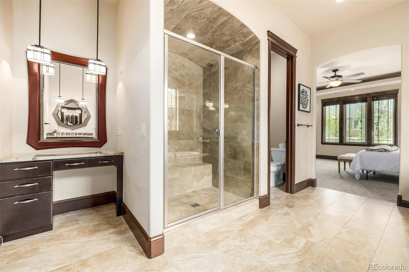 Set beneath a warm facade, where stucco + stone harmonize, this 2016 home introduces itself with balance and intention. Arched doorways, art niches, and refined millwork create a cohesive and timeless aesthetic. Wide plank flooring anchors the main floor, while an array of picture windows illuminates a living room defined by a iconic fireplace, tray ceiling, and statement chandelier. The space feels open yet centered, designed for both gathering and retreat. The kitchen is a true centerpiece, expansive and beautifully composed. Rich cabinetry, elevated finishes, and thoughtful lighting frame a workspace both functional and refined. A walk-in pantry and a superb butler’s pantry offer exceptional utility, ideal for entertaining and preparation alike. The adjoining dining room hosts its own statement light and picture window, creating a setting equally suited for gatherings or quiet meals. An additional casual dining area offers direct access to the yard. The main floor enjoys a dedicated office, enriched by classic wood paneling. The primary suite is a study in calm luxury, where soft textures, expansive proportions, and a tray ceiling create a sense of quiet retreat. The 5-piece bath offers a refined experience, complemented by a large walk-in closet. Below, a fully realized secondary living space expands the home’s versatility. With private access from the garage, this level lives as its own residence, complete with full kitchen, dining space, and tranquil living room. Additional bedrooms are well proportioned with ample storage, supported by multiple baths. Whether envisioned for multigenerational living or guests, the design offers rare adaptability. The garage, outfitted for EV charging, easily accommodates 4+ vehicles. Outdoors, a covered patio creates a sense of seclusion, opening to a thoughtfully landscaped yard. Warm and composed, this home offers a rare combination of elegance and adaptability, where each space has been shaped with intention.