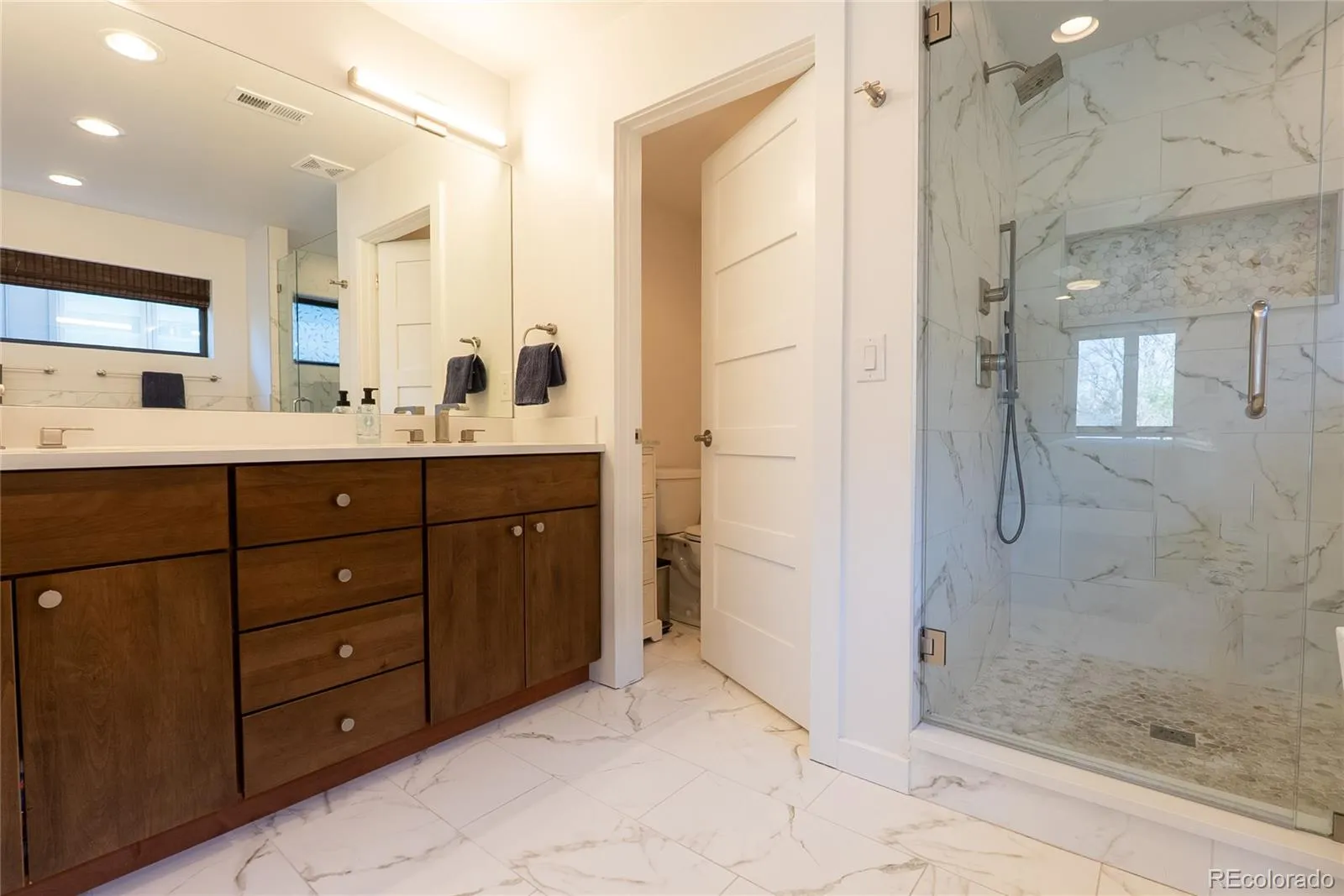 Experience the perfect blend of modern luxury and urban living in this stunning contemporary single-family home located in the heart of Denver’s highly desirable Platt Park neighborhood. Just steps from South Pearl Street’s shops, dining, and farmer’s market, this residence offers over 4,000 square feet of elegant living space designed for comfort, entertainment, and style. The open-concept floor plan showcases a spacious great room with a sleek 42” gas fireplace, connected to a private outdoor patio through custom multi-slide glass doors creating the ideal flow for indoor/outdoor entertaining. The gourmet kitchen is a chef’s dream, featuring Sub-Zero and Wolf appliances, quartz countertops, a large island with breakfast bar, and ample storage. Finishes throughout include 5” white oak hardwood floors, butcher block floating stairs, and wrought iron railings. A stylish main-floor office or study with a seamless glass door provides the perfect work-from-home setup. Upstairs, the luxurious primary suite includes a private rooftop terrace, a spa-inspired bathroom, and a generous walk-in closet. Two additional bedrooms, a full bathroom, and a beautifully appointed laundry room complete this level. The top floor loft adds flexible living space with a wet bar, half bath, and access to a rooftop deck with breathtaking city and mountain views ideal for sunset gatherings or relaxing evenings. The fully finished basement offers even more versatility with a guest bedroom and bath, as well as space for a home gym, playroom, or second home office. This exceptional Platt Park modern home combines Denver lifestyle convenience with high-end craftsmanship, energy-efficient design, and smart home features throughout. A rare find in one of Denver’s most walkable neighborhoods.
