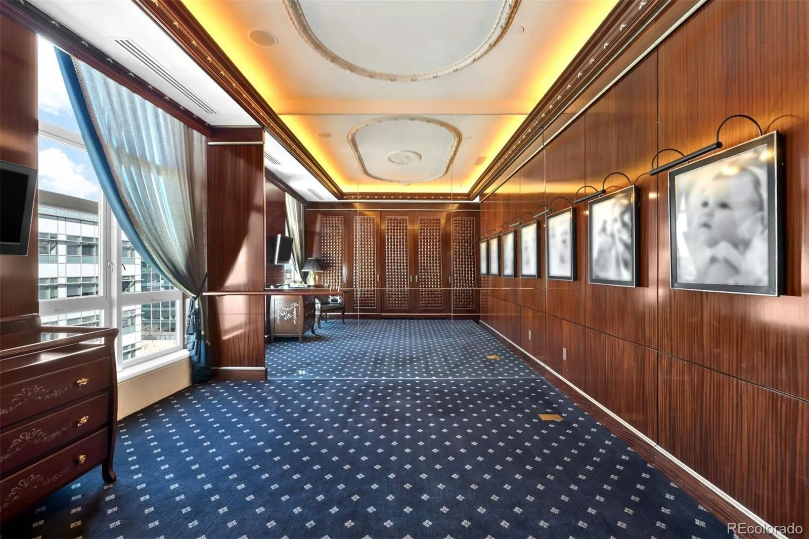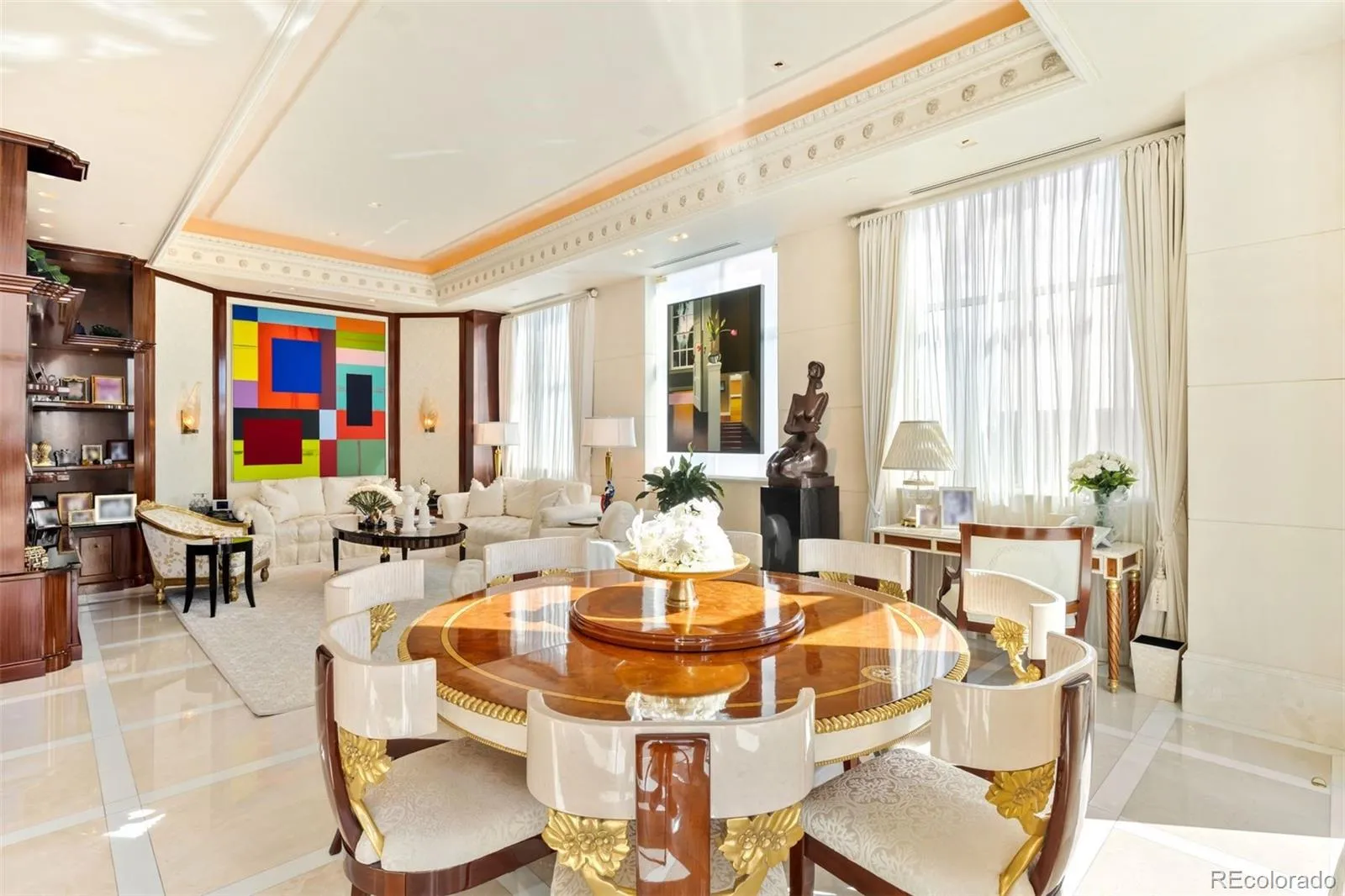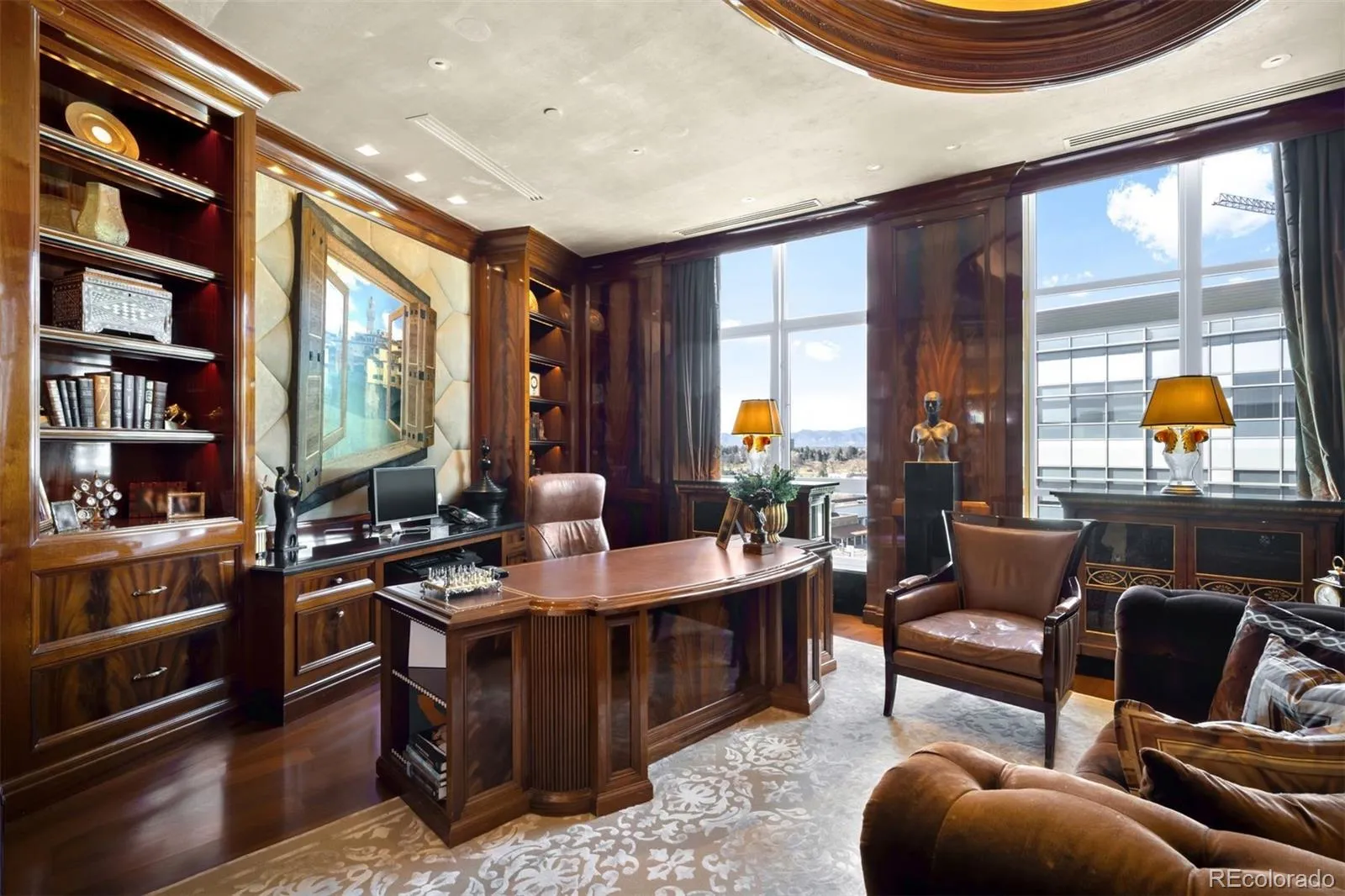 Expertly envisioned and curated, this extraordinary penthouse is a masterclass in design, craftsmanship, and timeless European elegance. Rich mahogany walls, bespoke millwork, and 10-foot doors create a striking sense of arrival, while tailored materials and soft ambient lighting establish an atmosphere that is both grand and intimately refined. Perched in the heart of Cherry Creek, the residence pairs a sophisticated European aesthetic with a floor plan designed for elevated entertaining and effortless daily living. Expansive living spaces unfold beneath soaring ceilings and walls of glass, capturing natural light and framing breathtaking mountain views over the iconic Denver Country Club golf course. A formal dining room graciously accommodates 30+ guests, complemented by a richly appointed mahogany study and two beautifully finished en-suite guest rooms. The primary suite is a private sanctuary, featuring an expansive bedroom, dual custom closets designed to impress the most discerning buyer, and an elegant, spa-inspired bath that evokes a five-star retreat. A remarkable 1,230 square foot terrace extends the living experience outdoors, offering an extraordinary setting for elegant gatherings or quiet evenings immersed in panoramic city lights and Colorado sunsets. Spanning over 7,100 finished square feet, the residence also includes four dedicated parking spaces. At NorthCreek, residents enjoy a level of privacy, security, and service reserved for the world’s finest addresses, with dedicated concierge, valet, and porter services. All just moments from the acclaimed dining, luxury boutiques, and renowned galleries of Cherry Creek North.